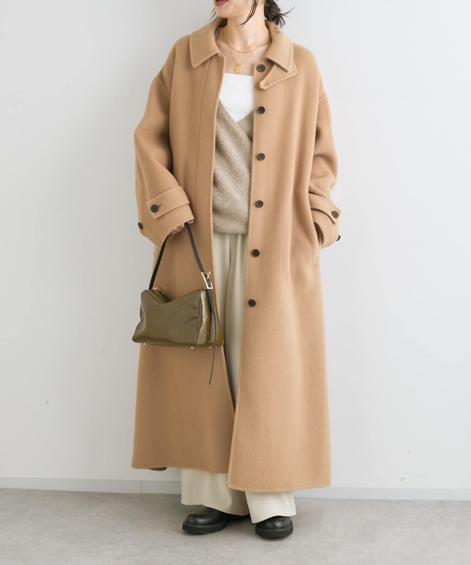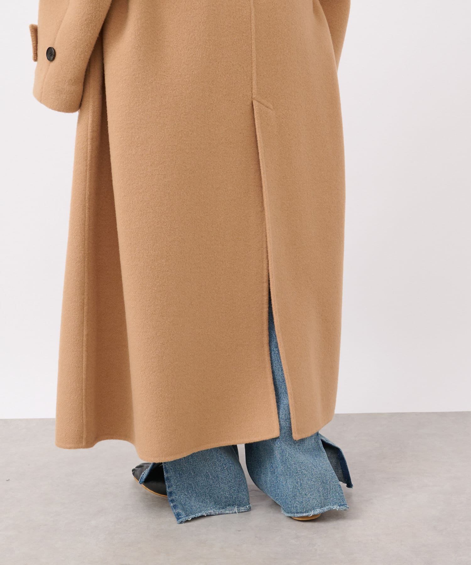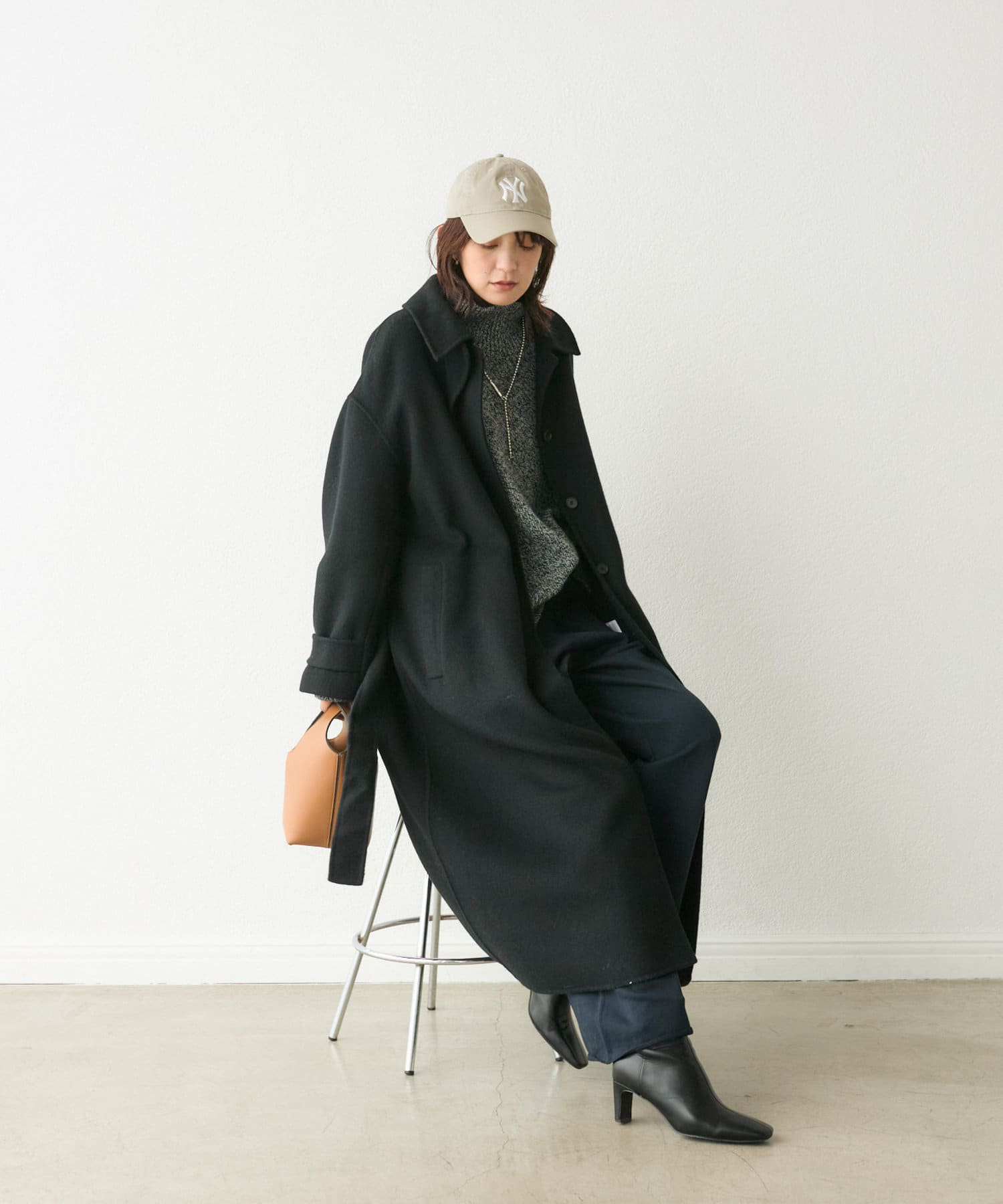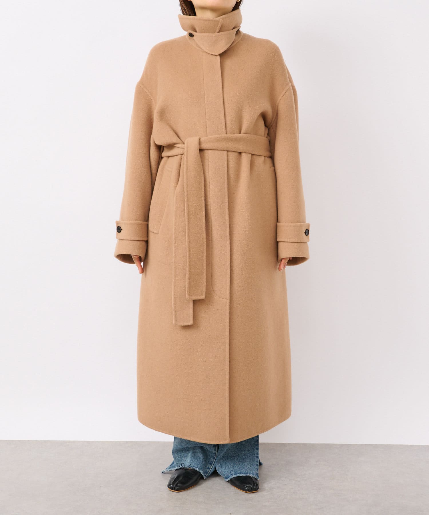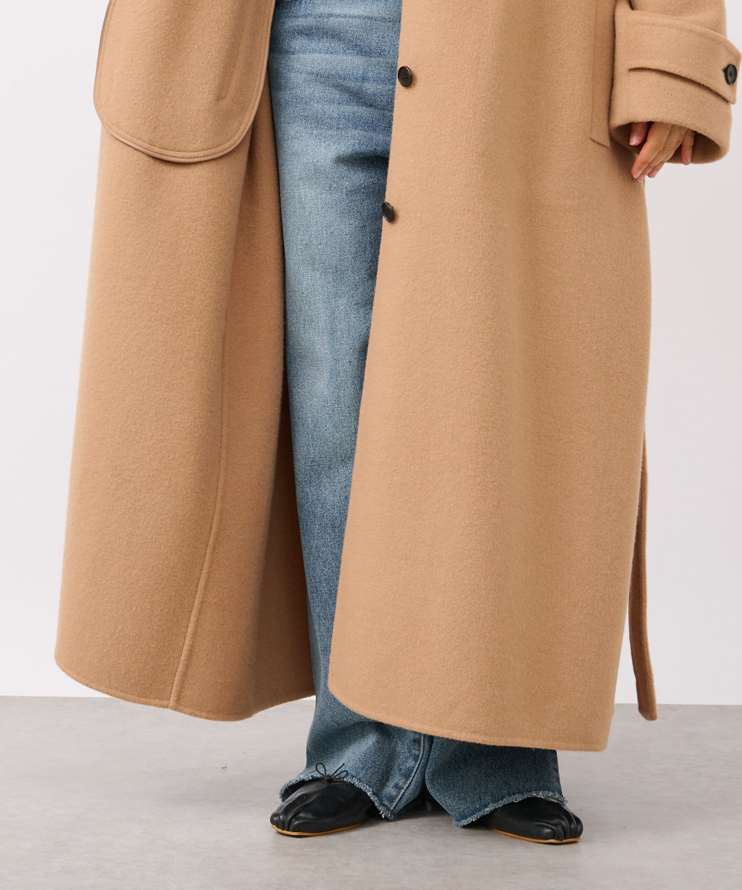 SUPER100という高品質なウール原料を使用したビーバー素材のステンカラーコート。