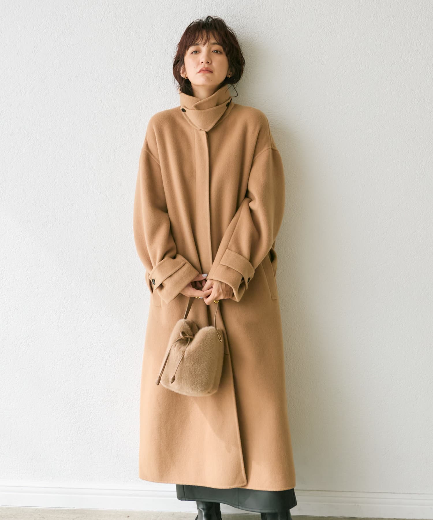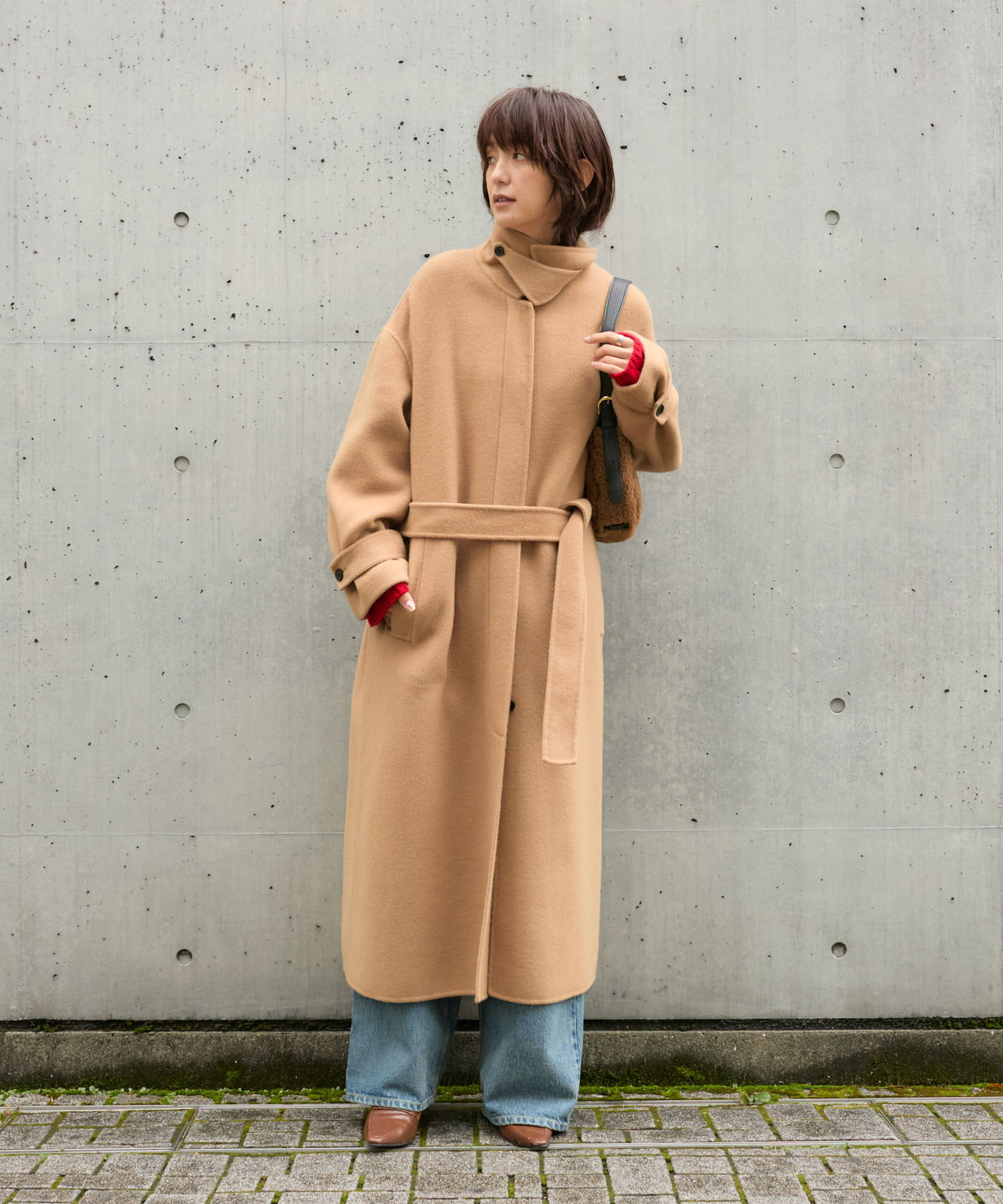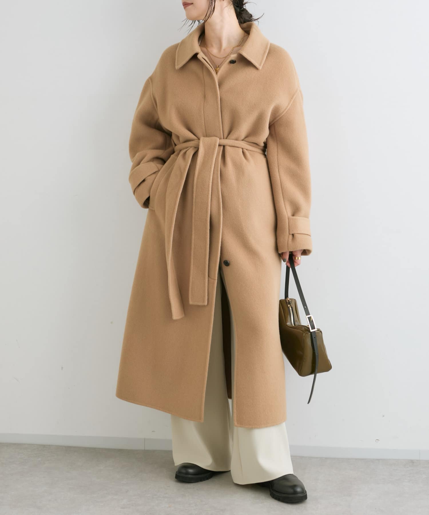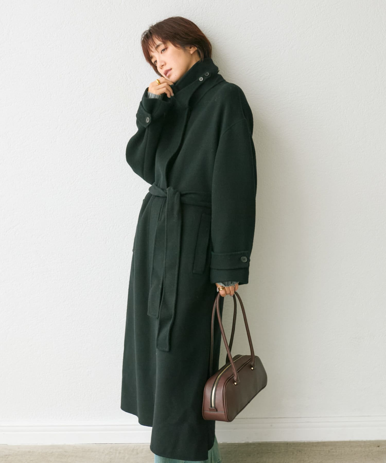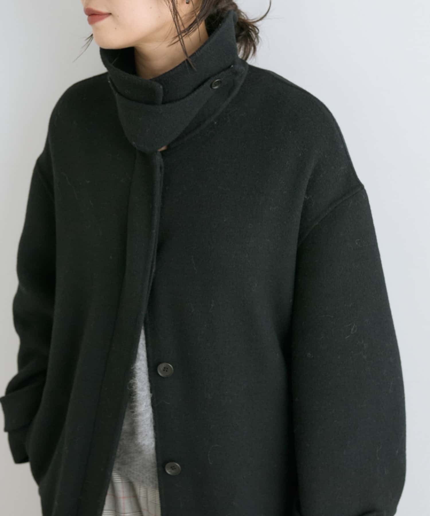 SUPER100という高品質なウール原料を使用したビーバー素材のステンカラーコート。