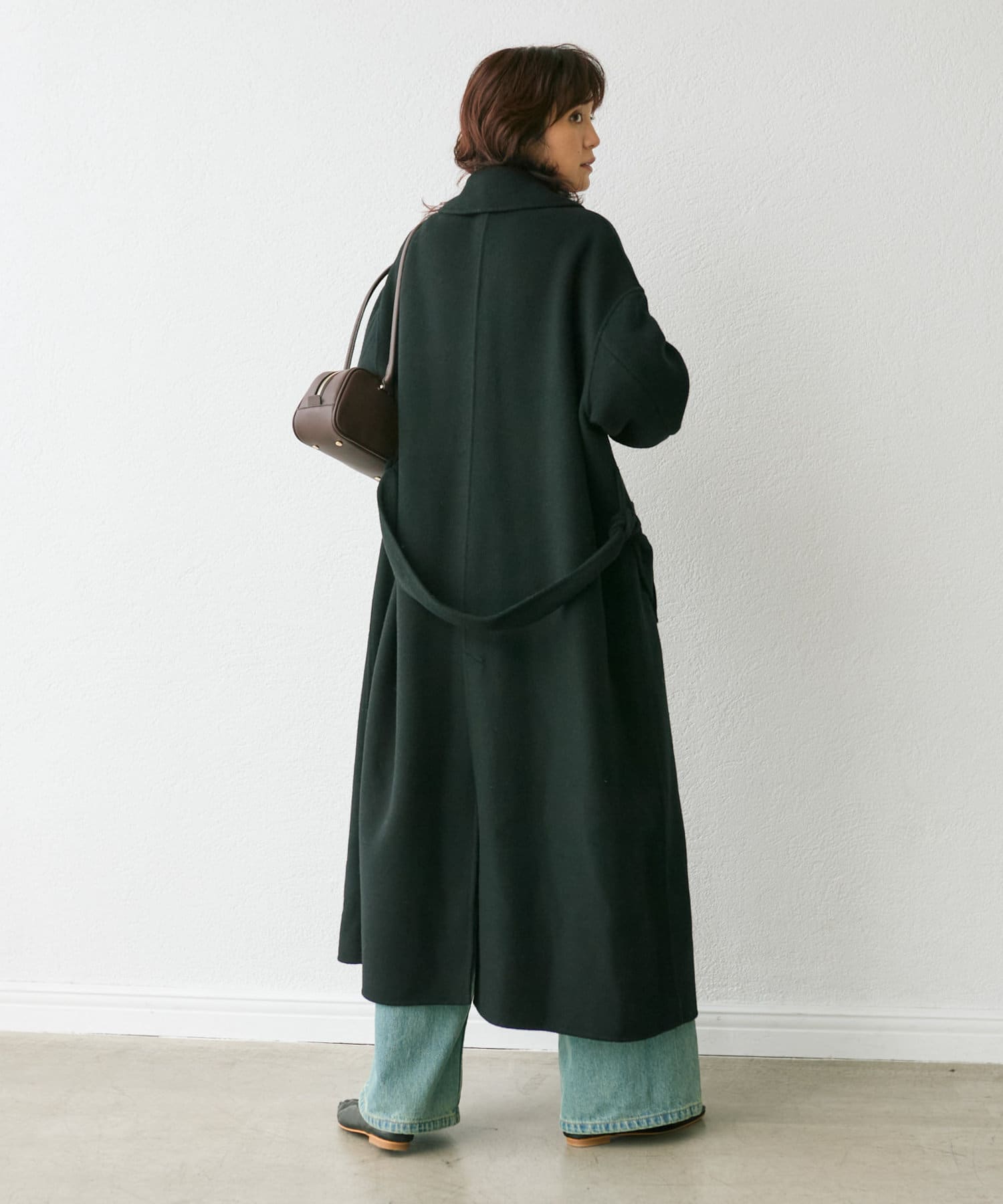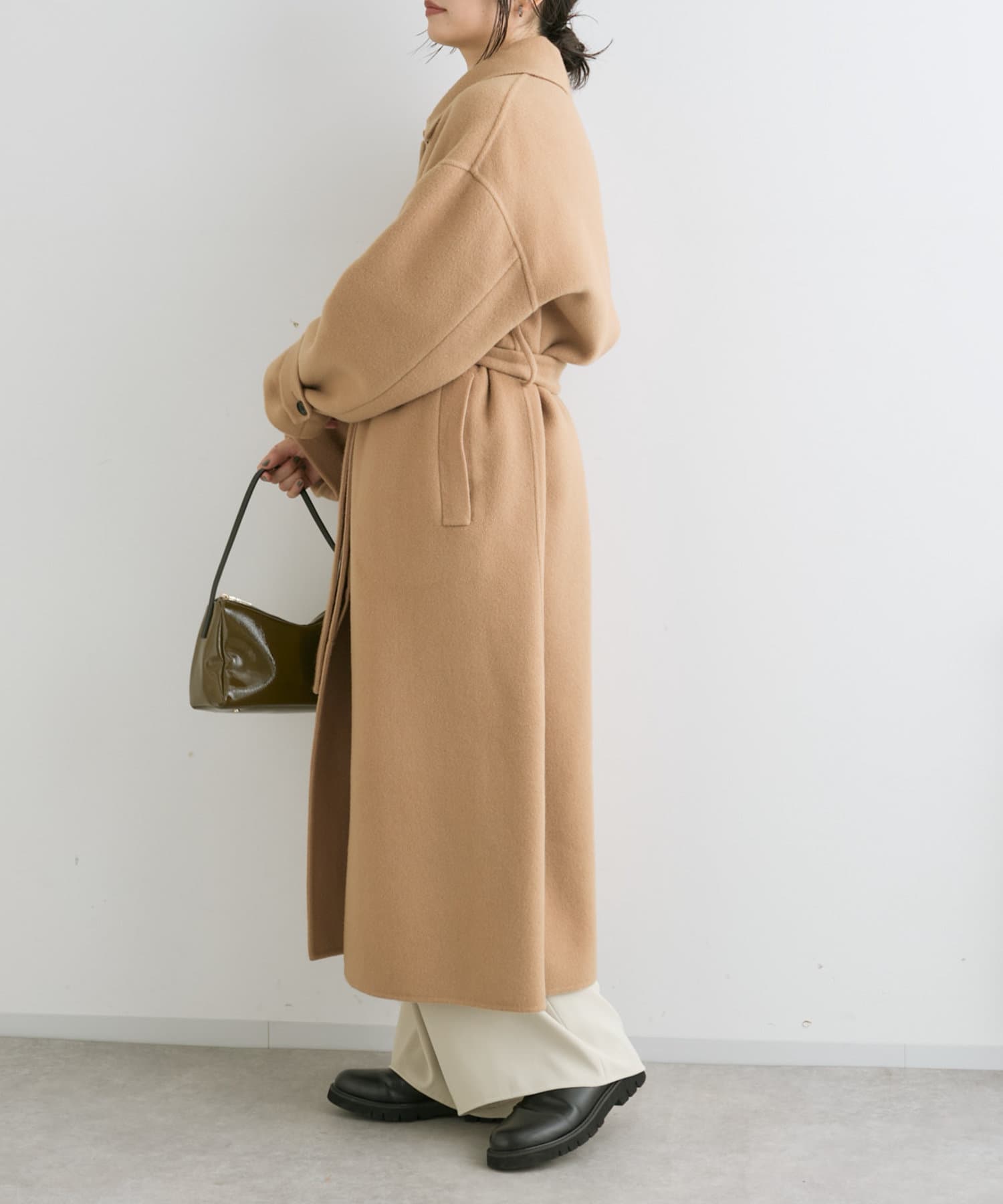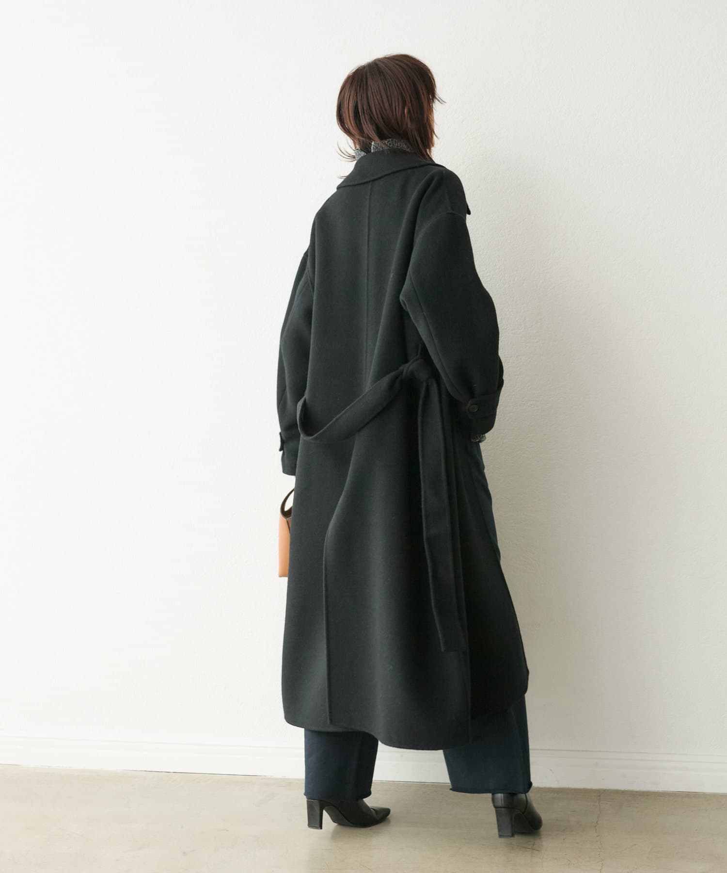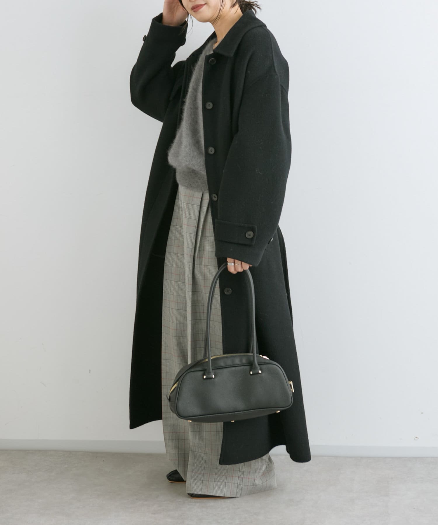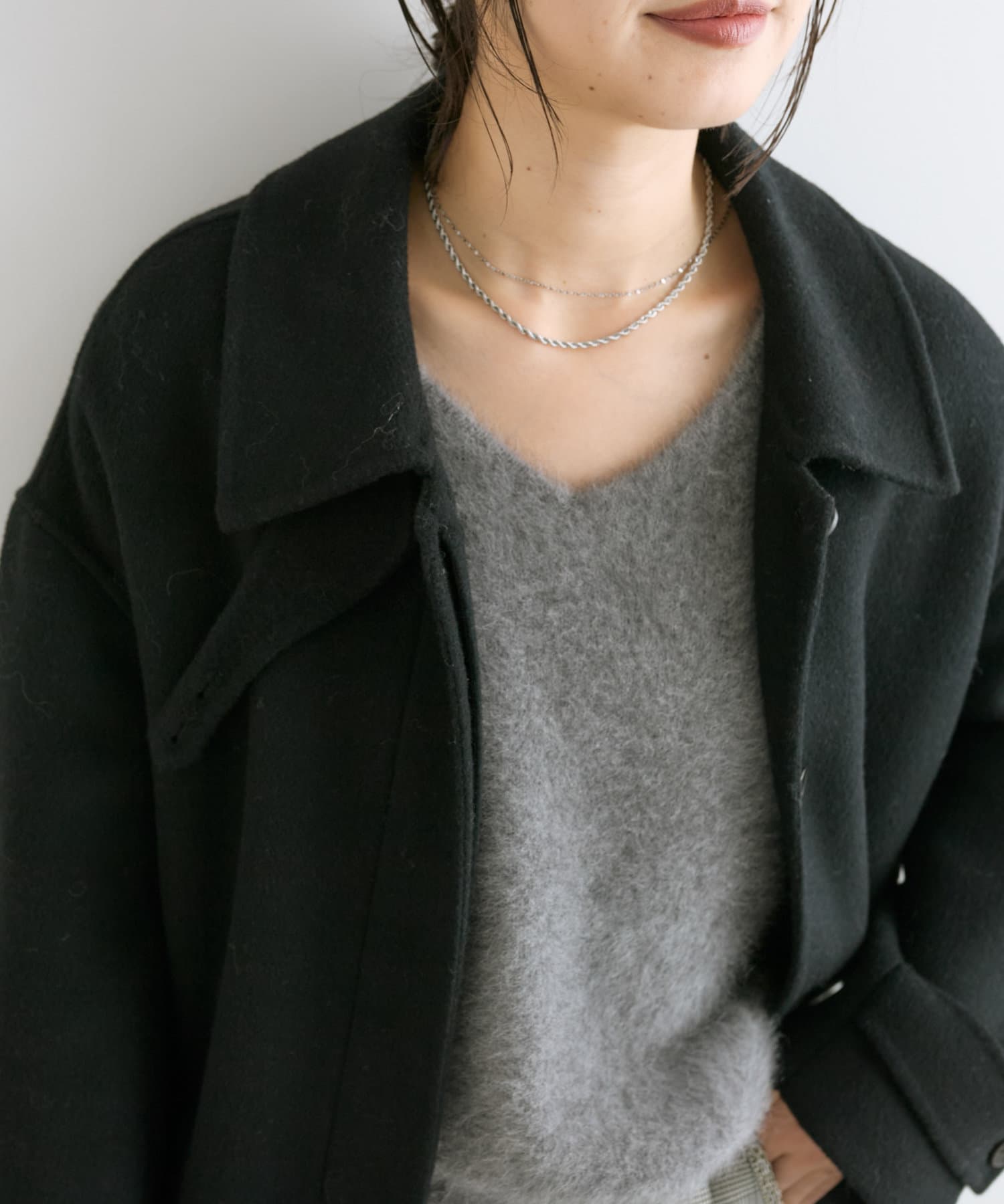 SUPER100という高品質なウール原料を使用したビーバー素材のステンカラーコート。