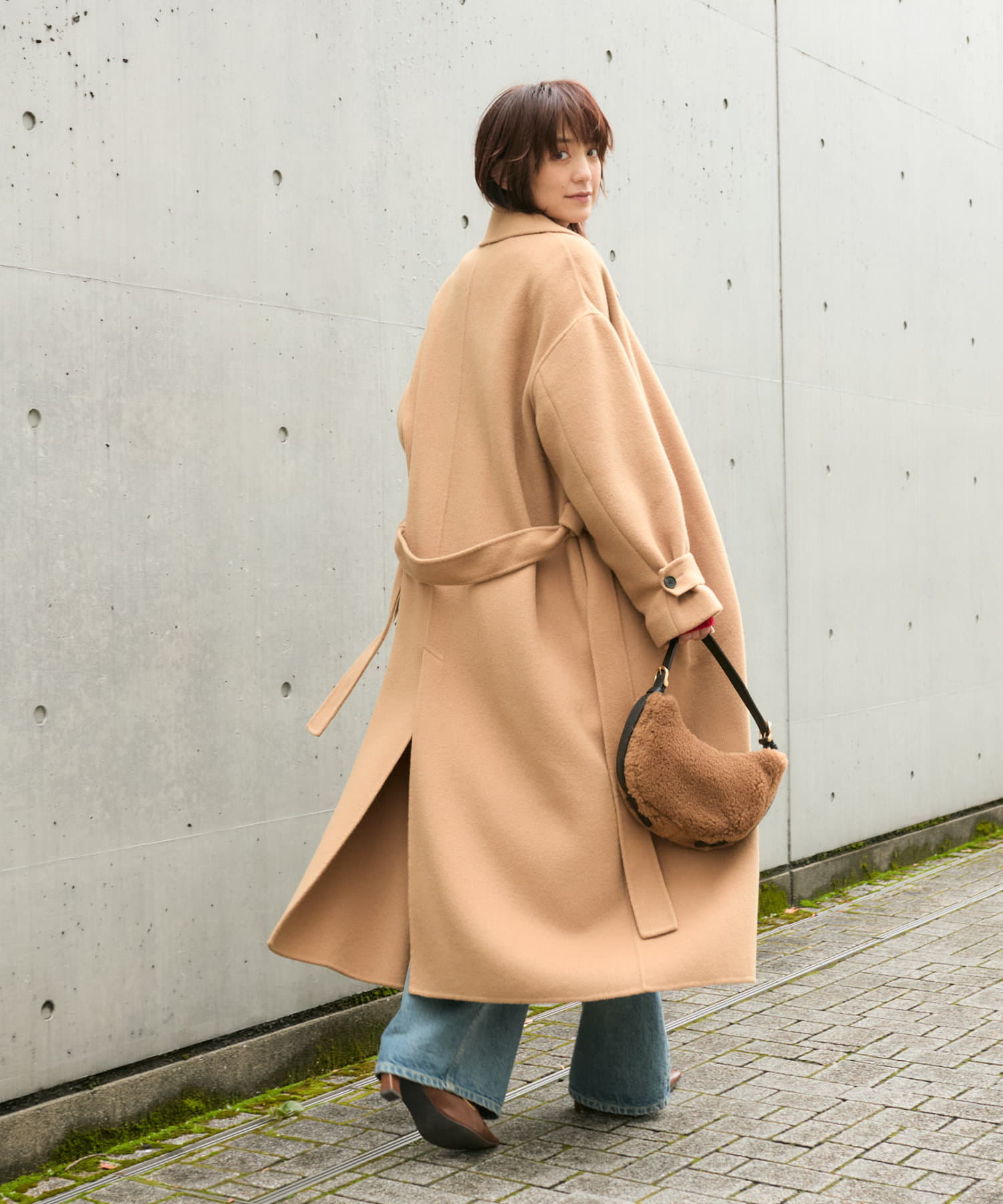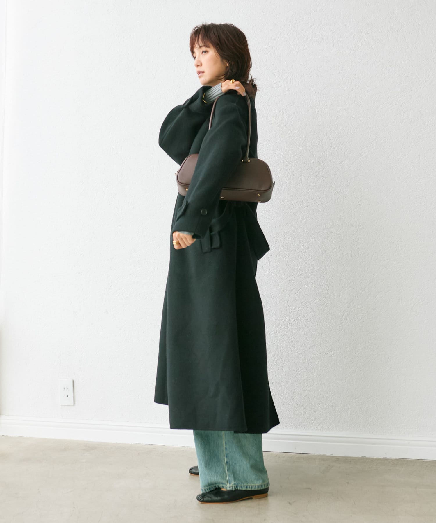 肩回りがコンパクトに見えながら、袖は立体的なフォルムをだしており、着るだけでこなれて見えるようなシルエット。