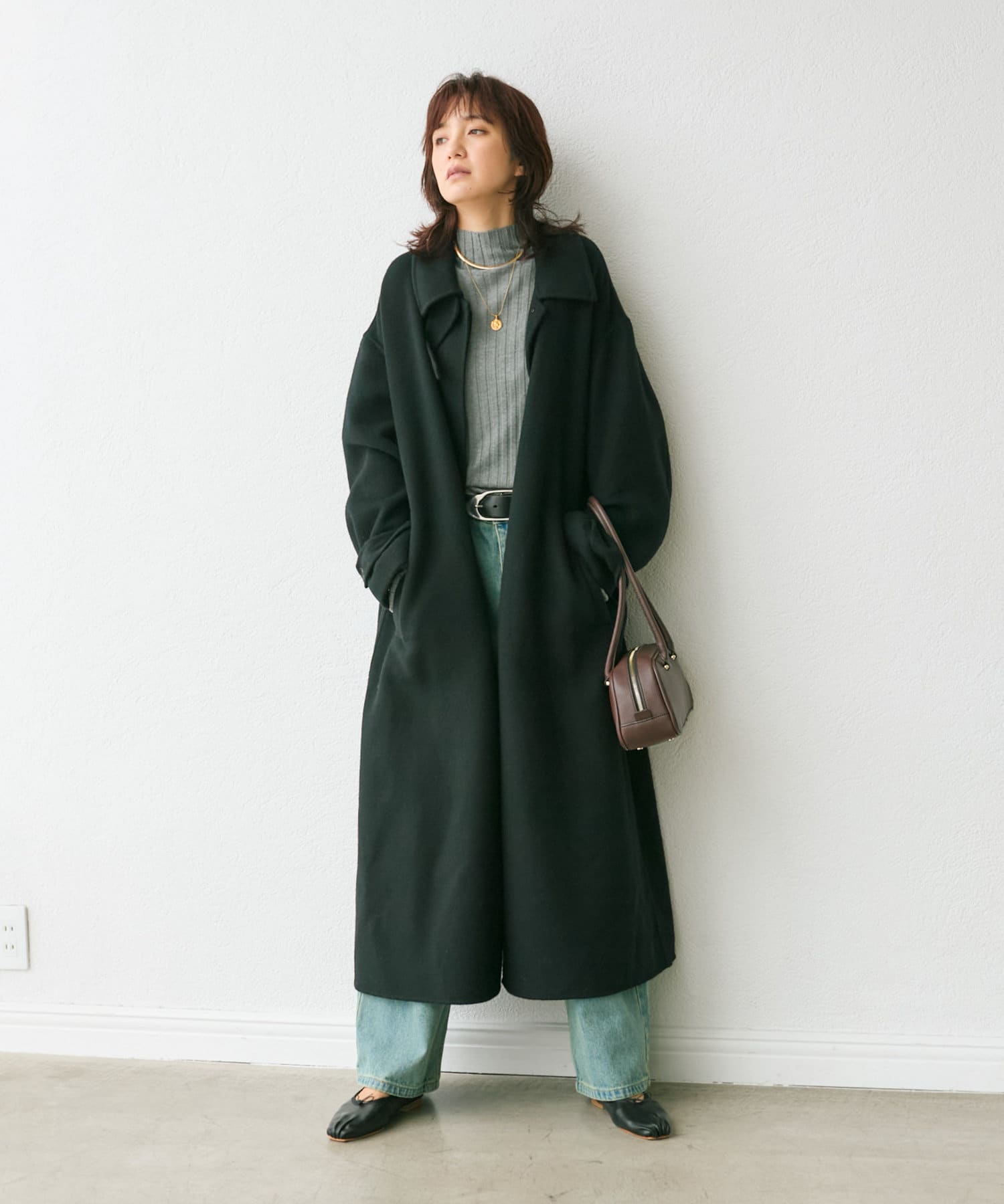 ロング丈ですが、ふっくらとしながらも軽さのある素材なので、重さを感じない着心地です。