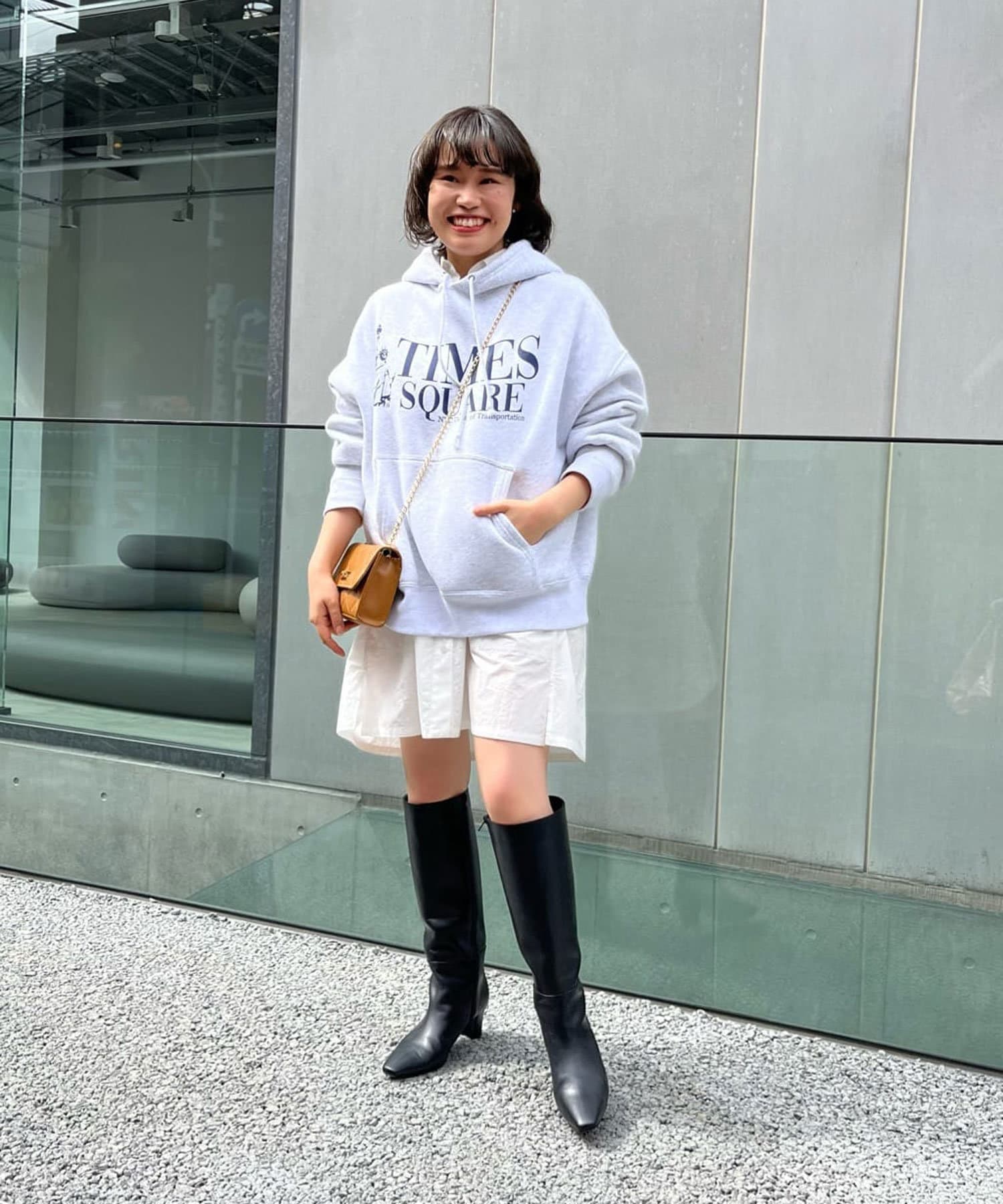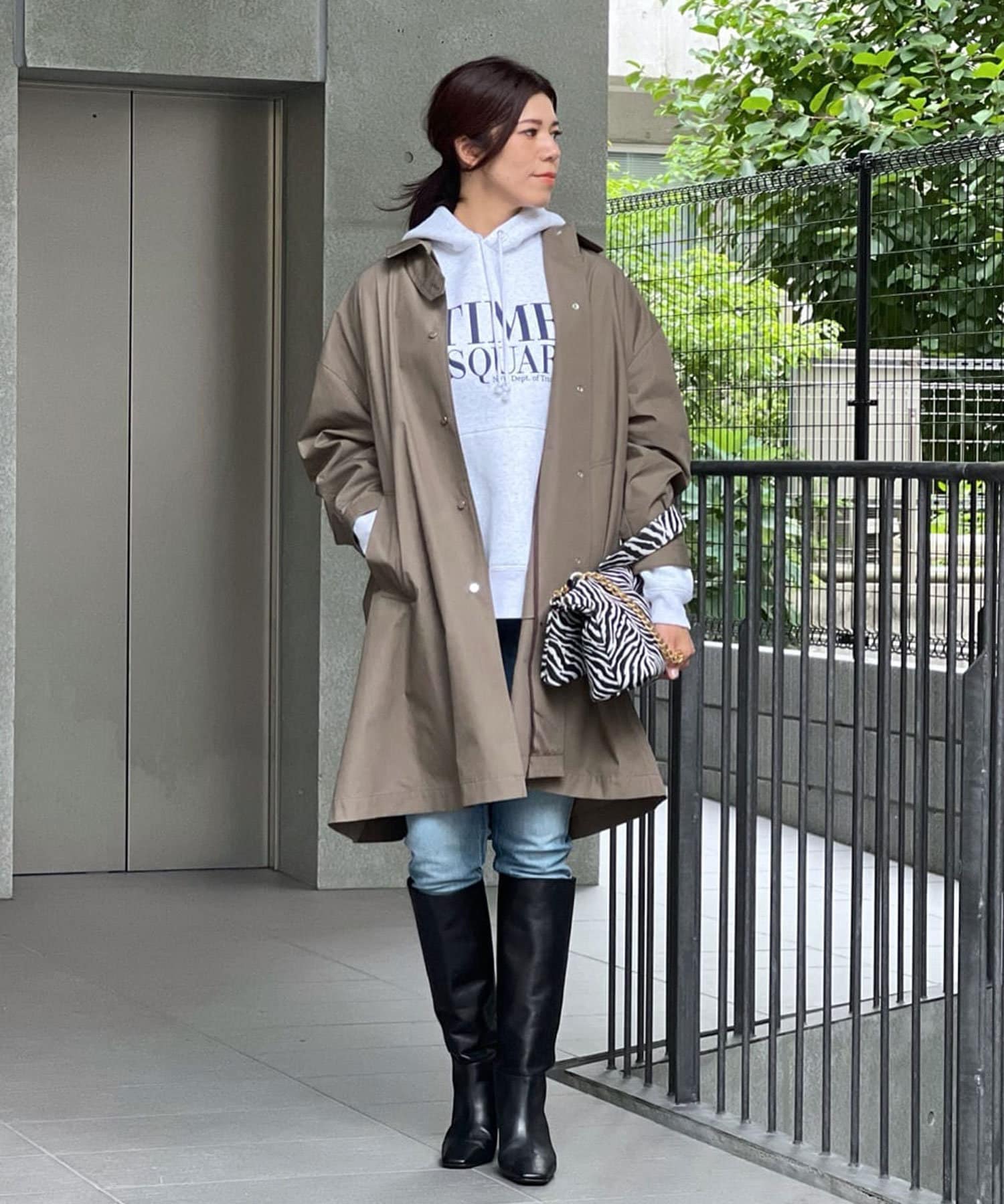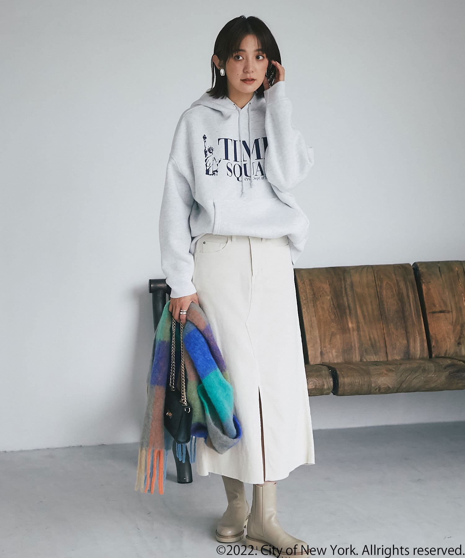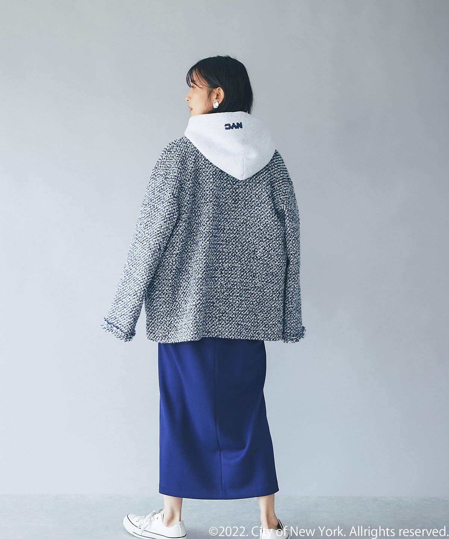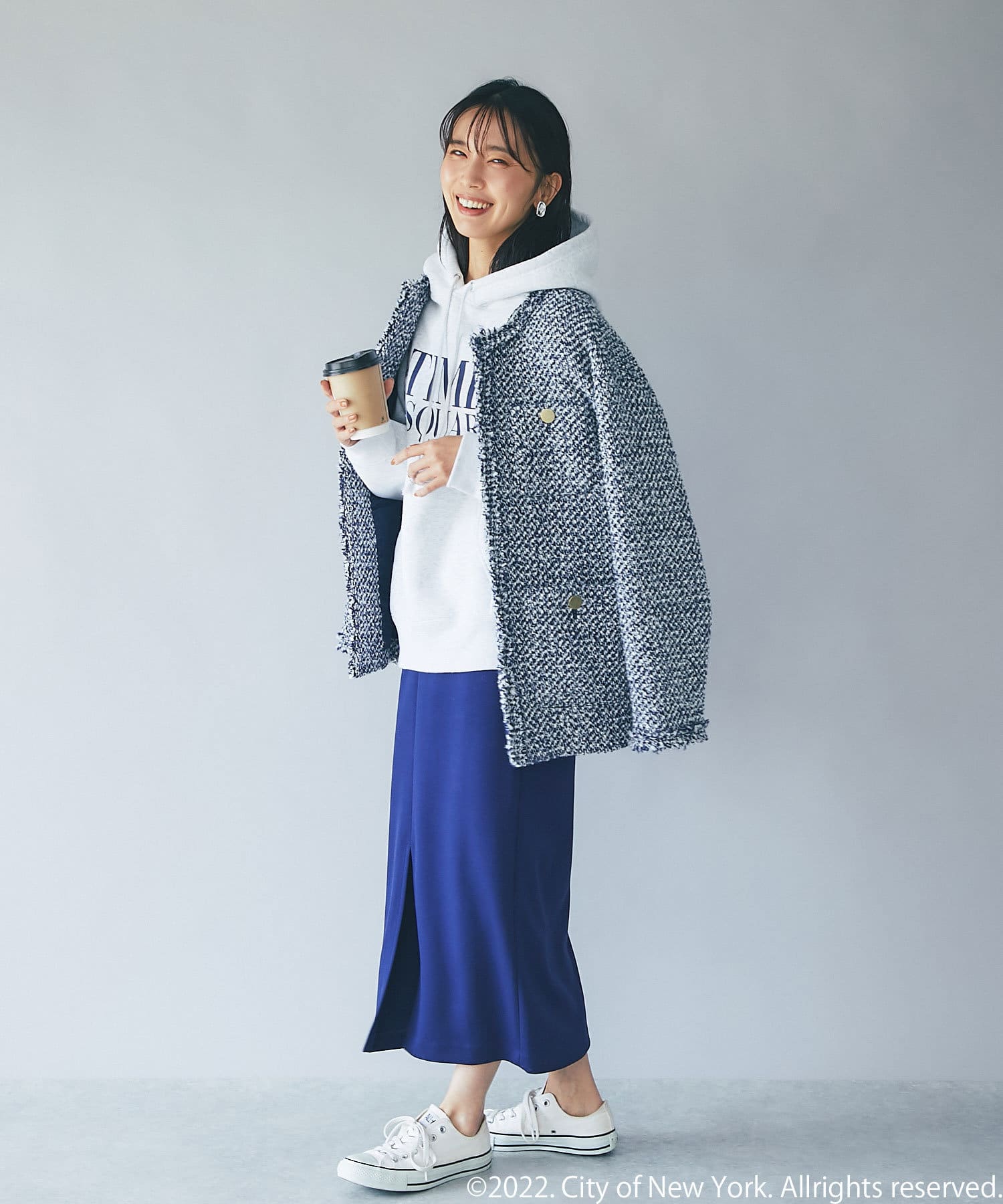 ⇒タイトスカートなどのシャープなアイテムを合わせて頂くと、メリハリがつき、よりタウンユースな着こなしが叶います。