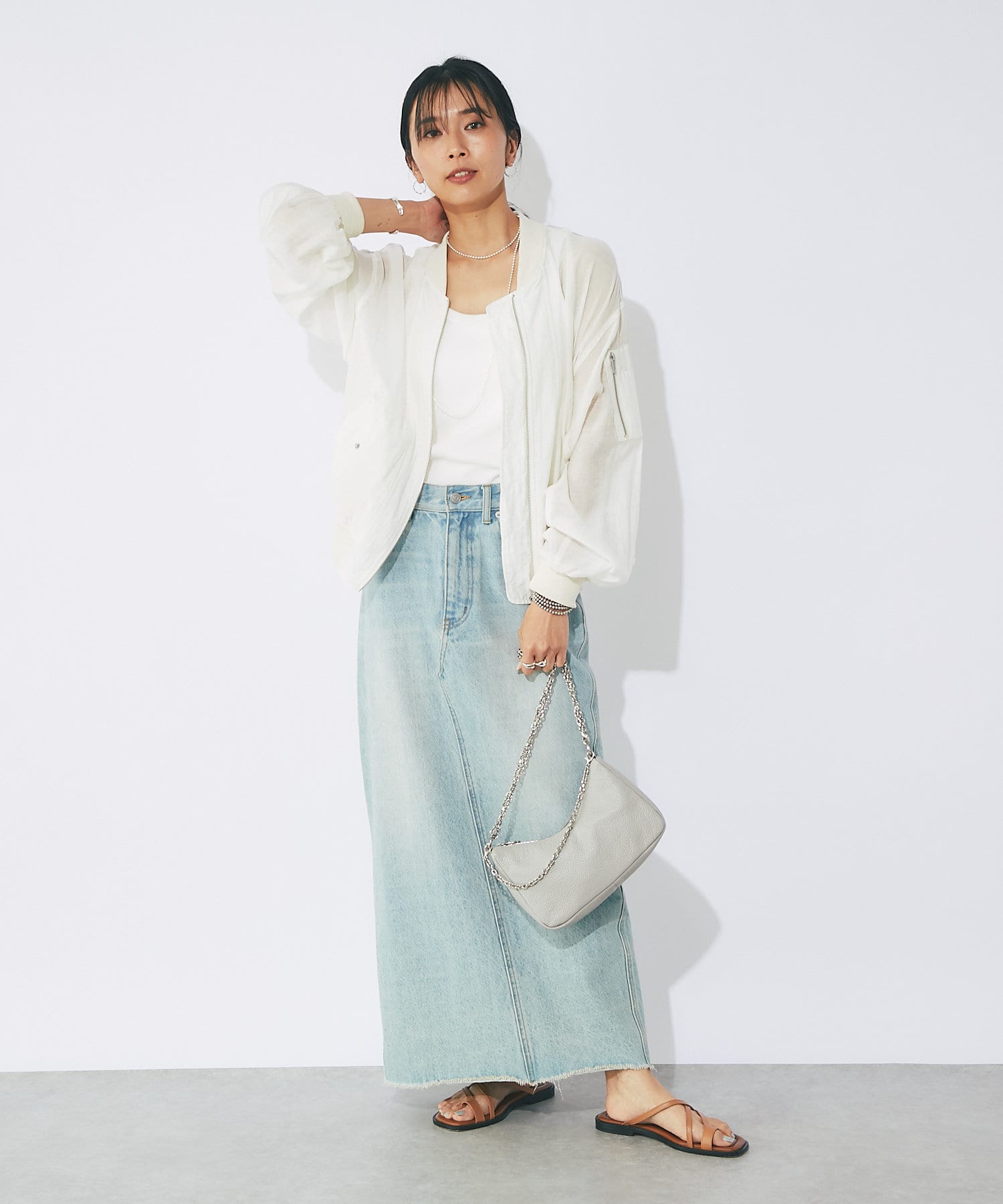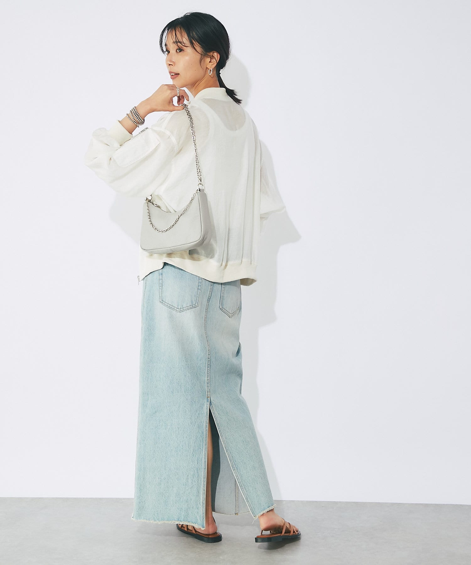 ライトなサックスブルーのカラーは、ニットやスウェットなど、重くなりがちな秋冬のコーディネートも鮮度をグッと上げてくれる一着。
