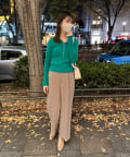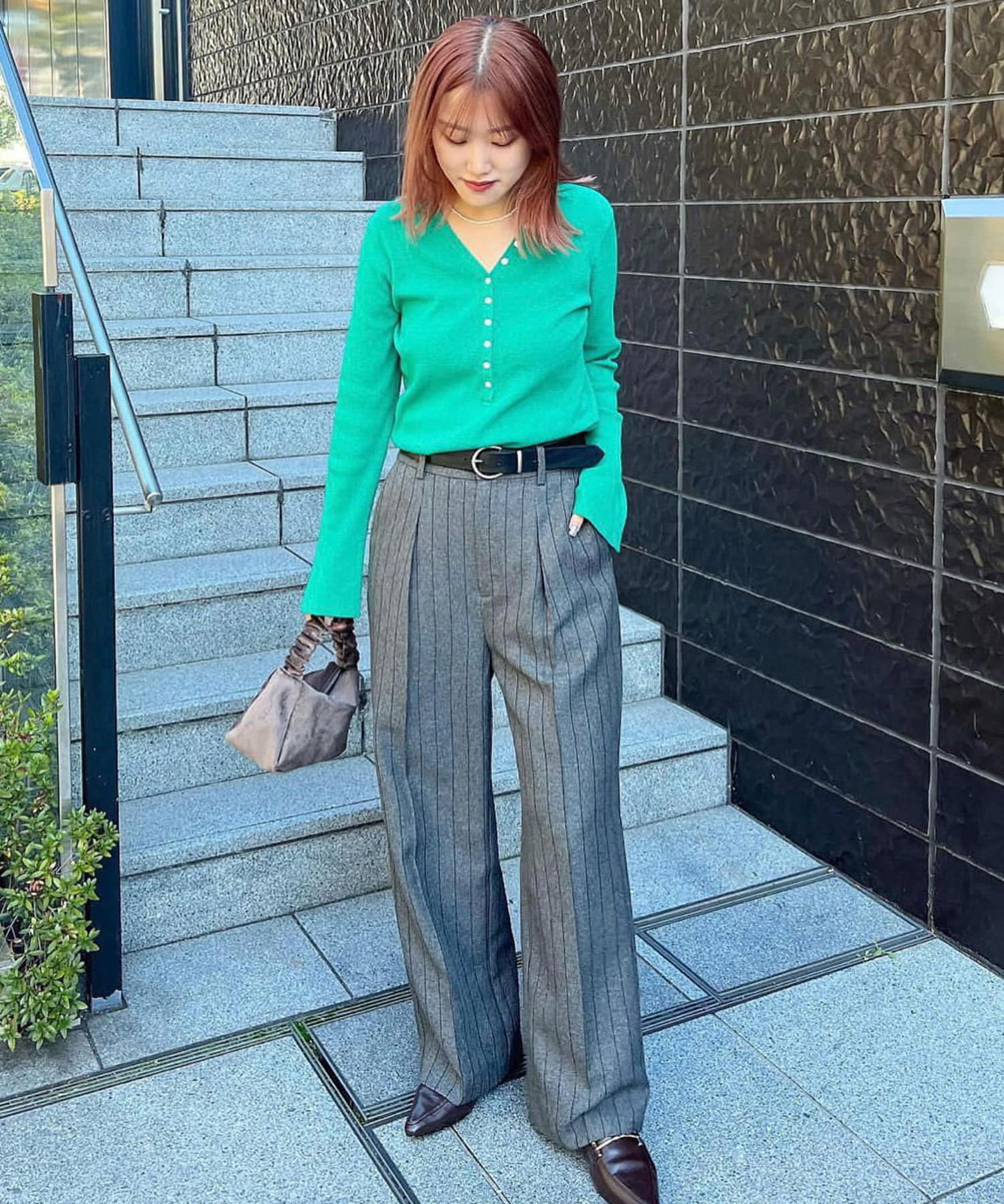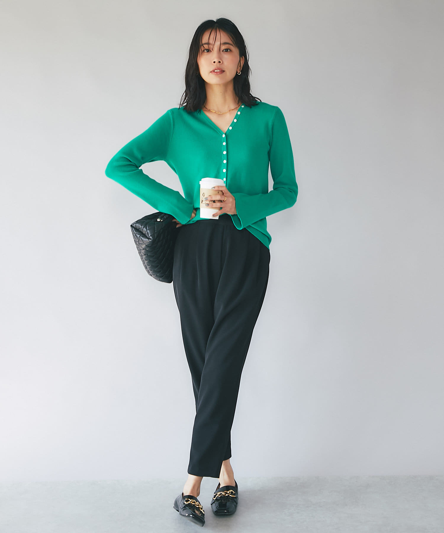 パッと鮮やかなグリーンはコートスタイルに映える鮮度のあるカラー。
