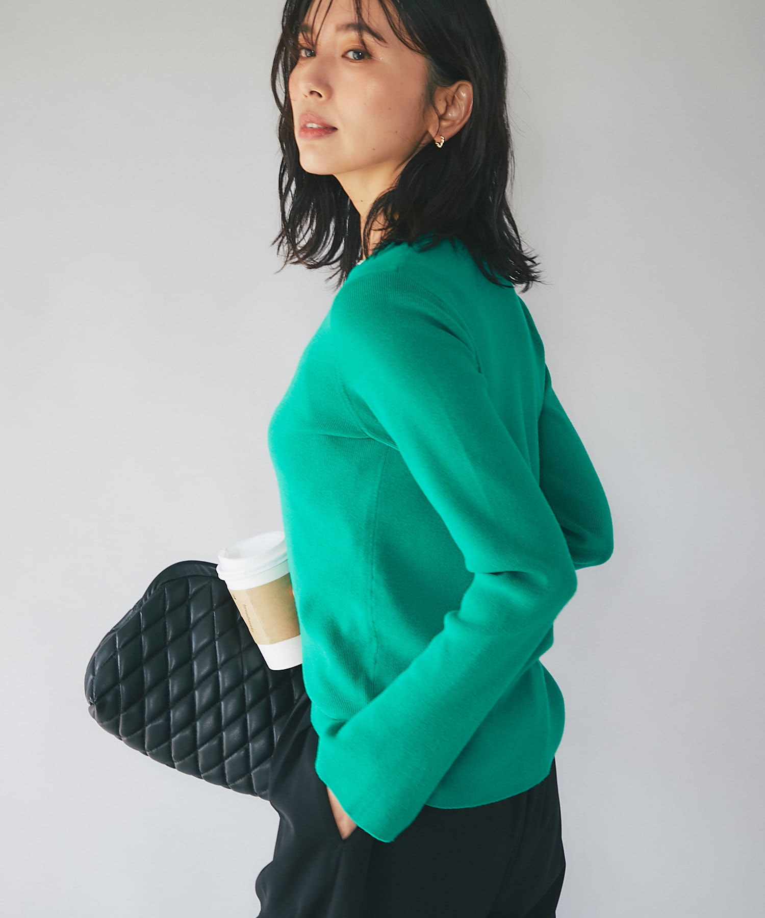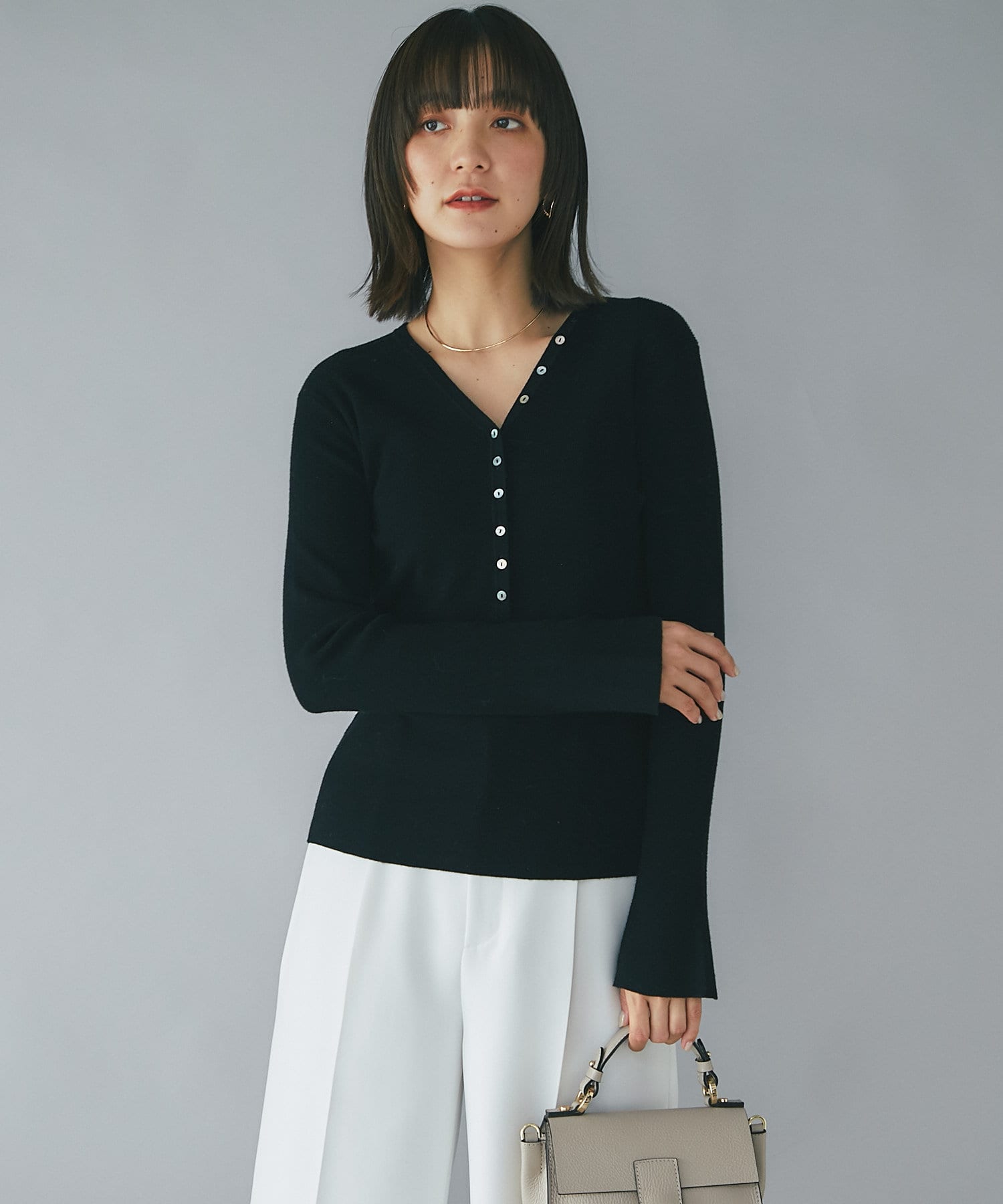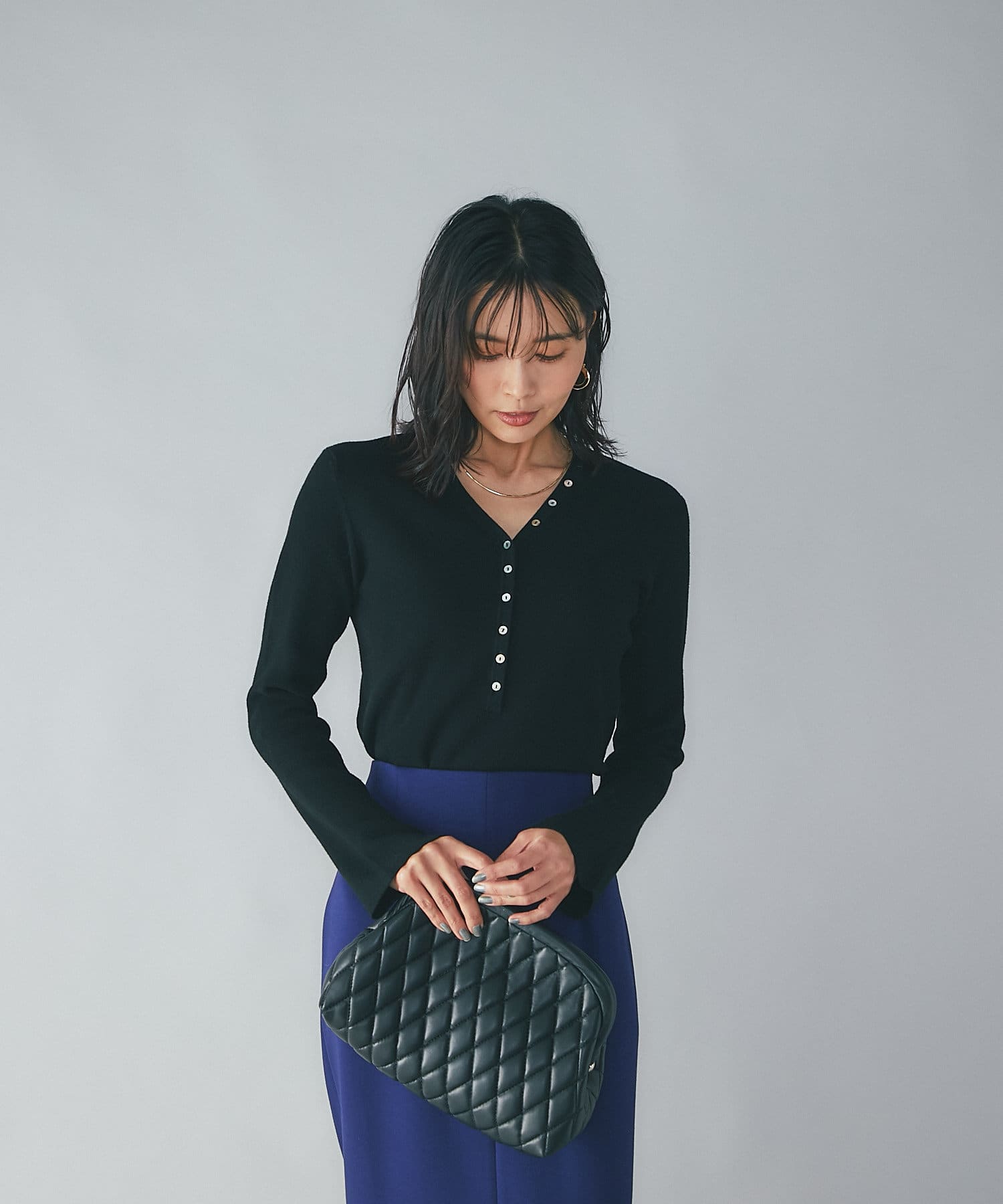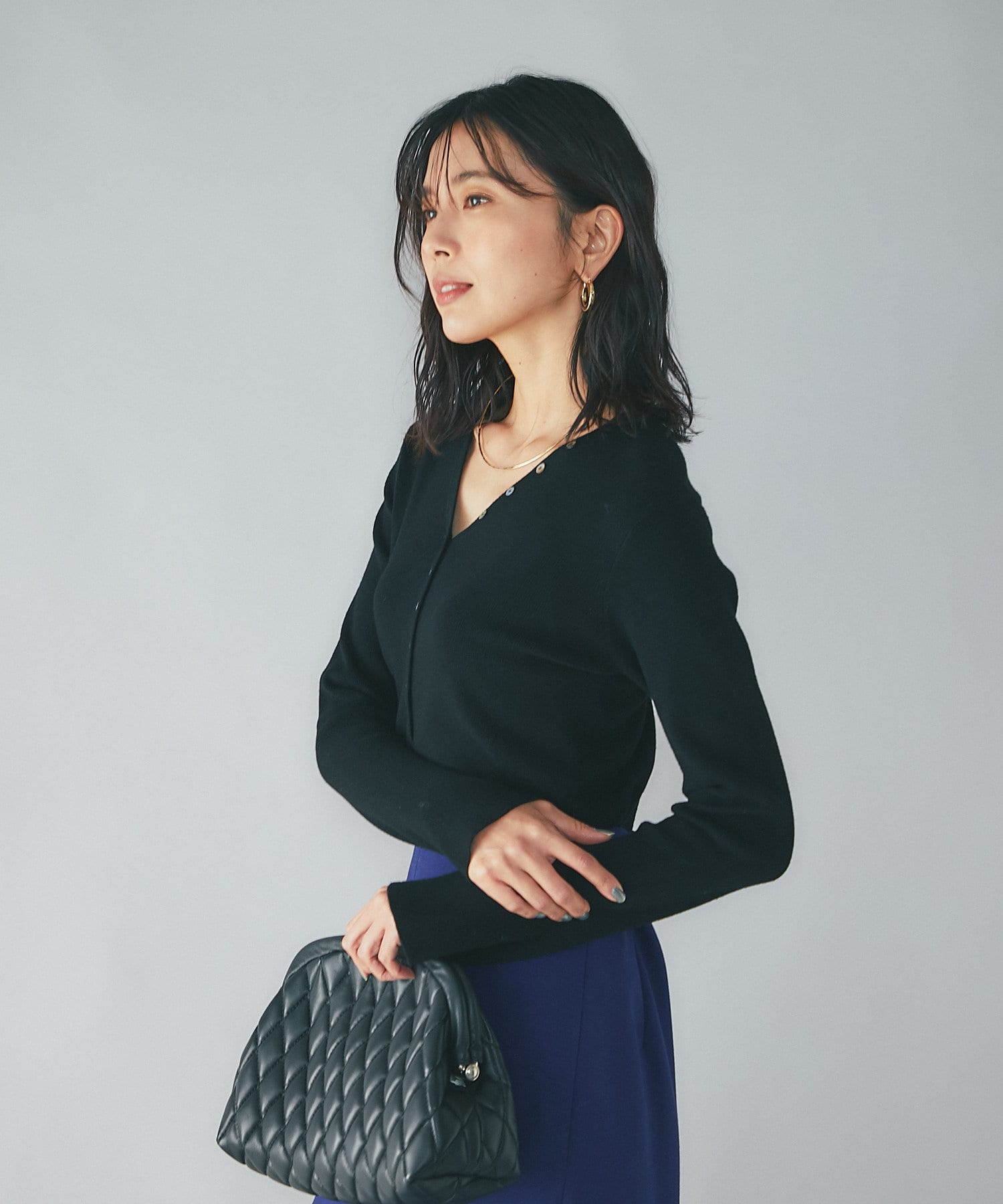 ※店舗にお問い合わせの際は、【パウダリーストレットオープンVネックニット】とお伝えください。