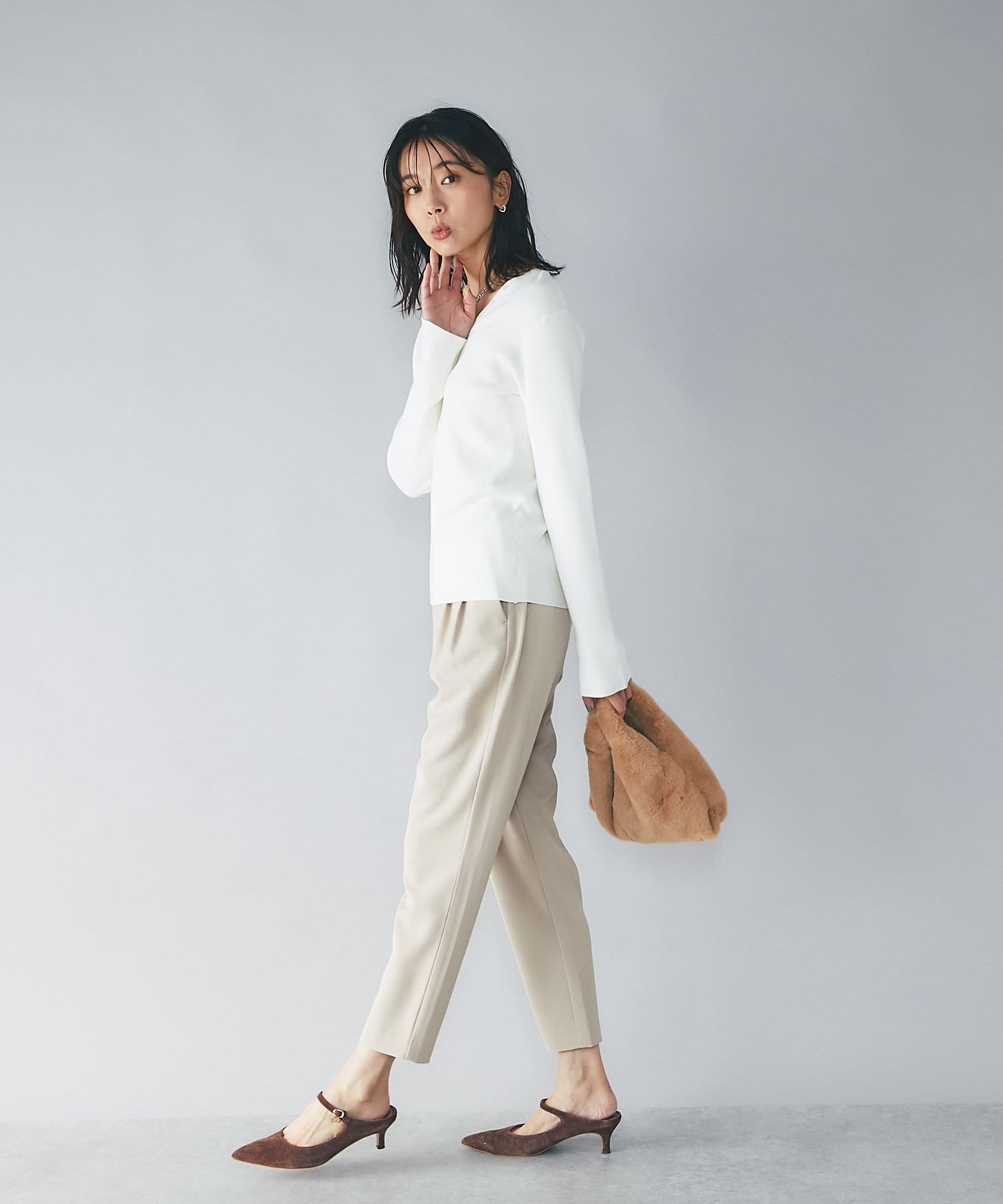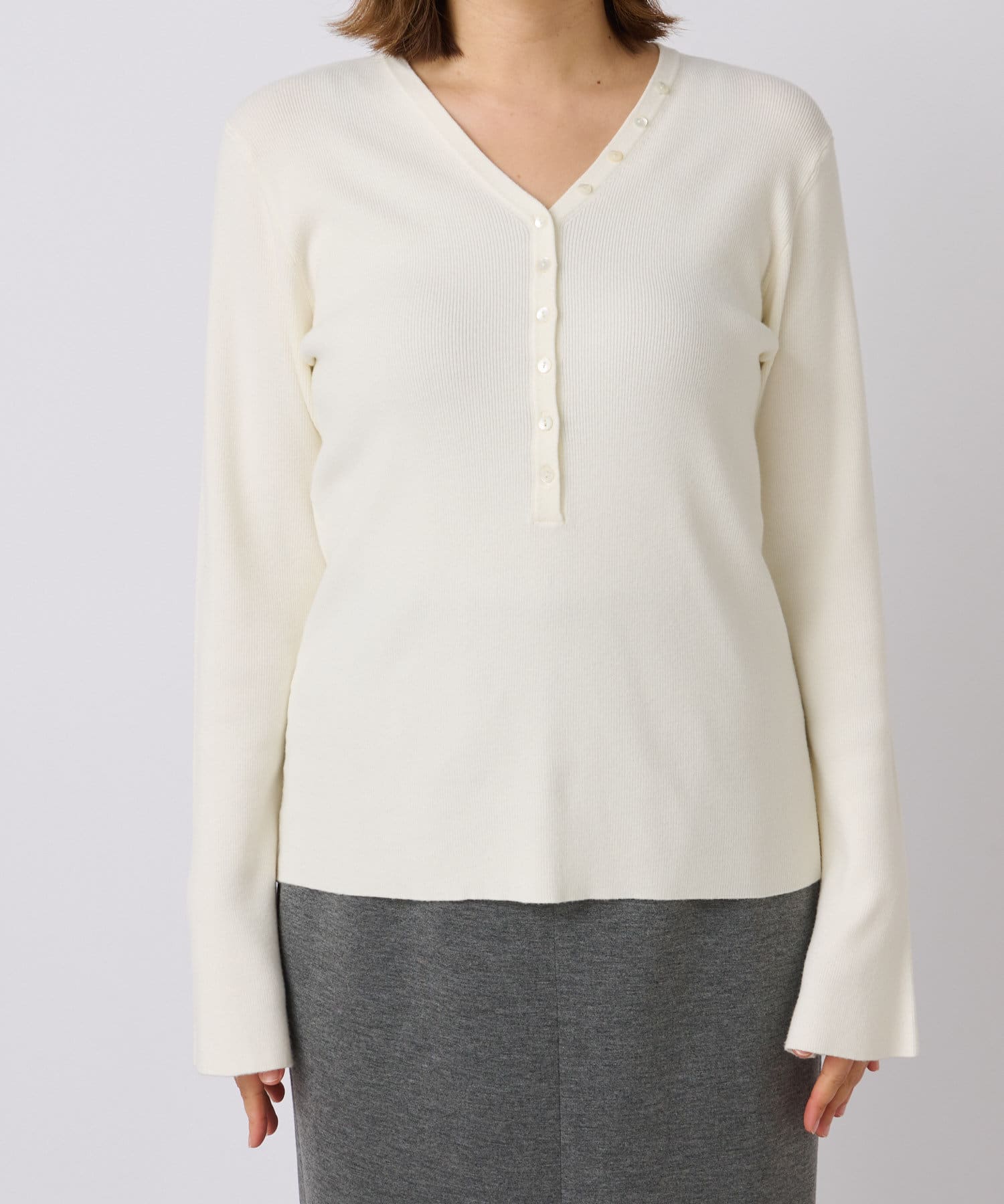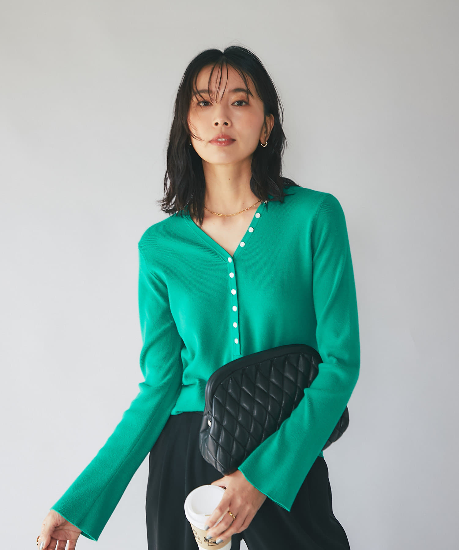 ※店舗にお問い合わせの際は、【パウダリーストレットオープンVネックニット】とお伝えください。