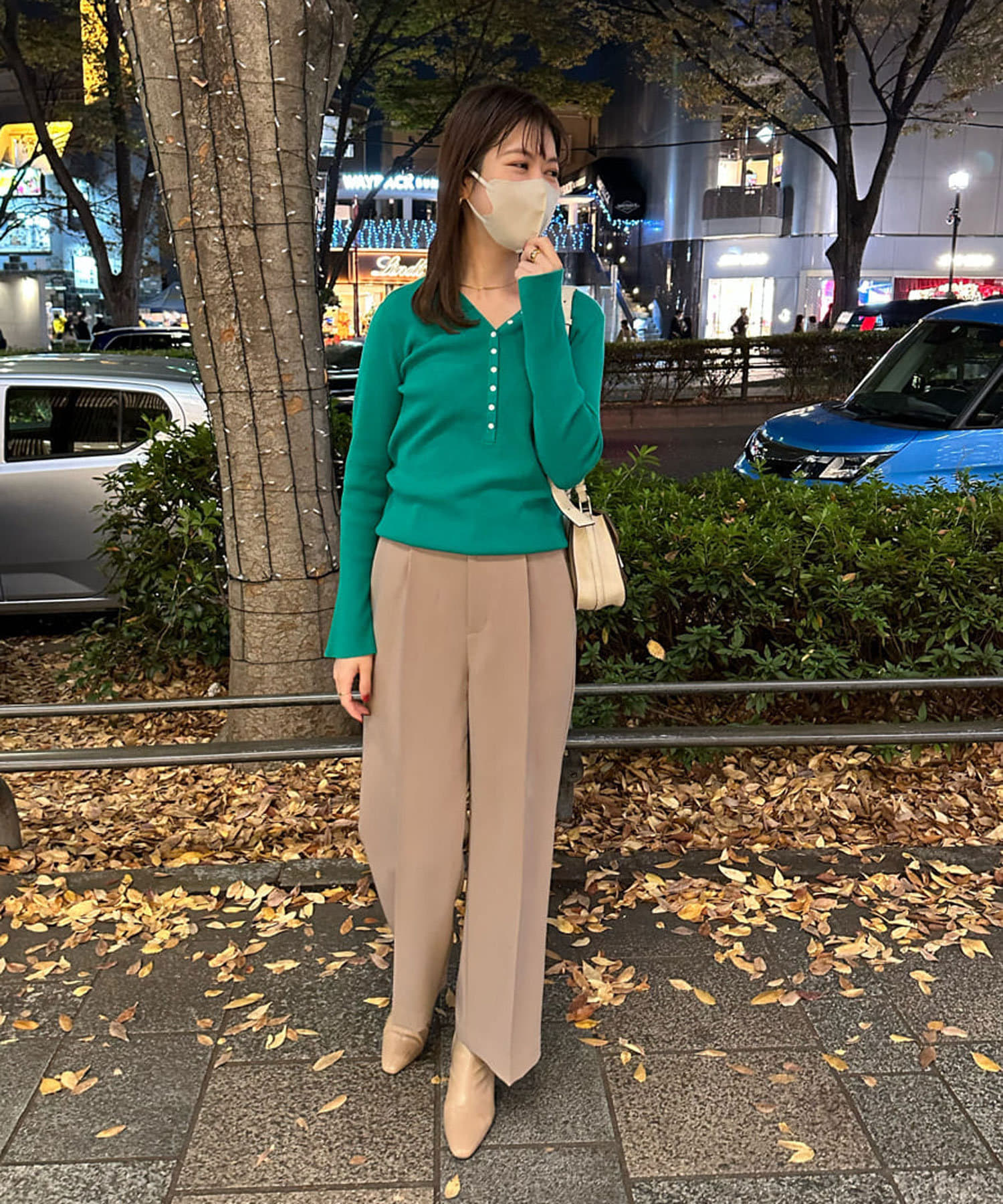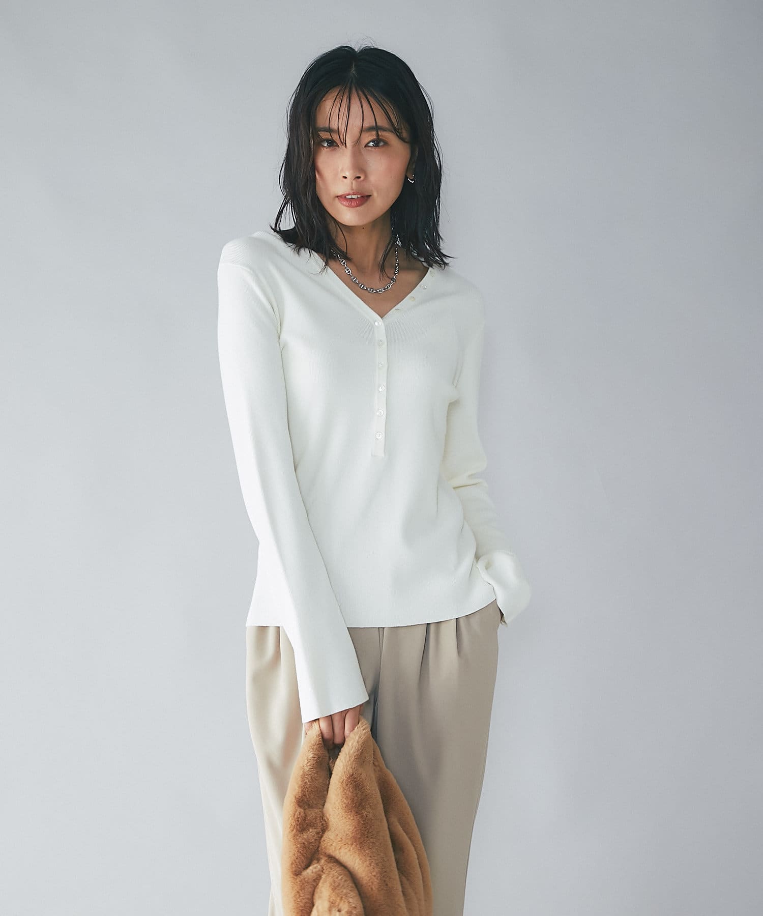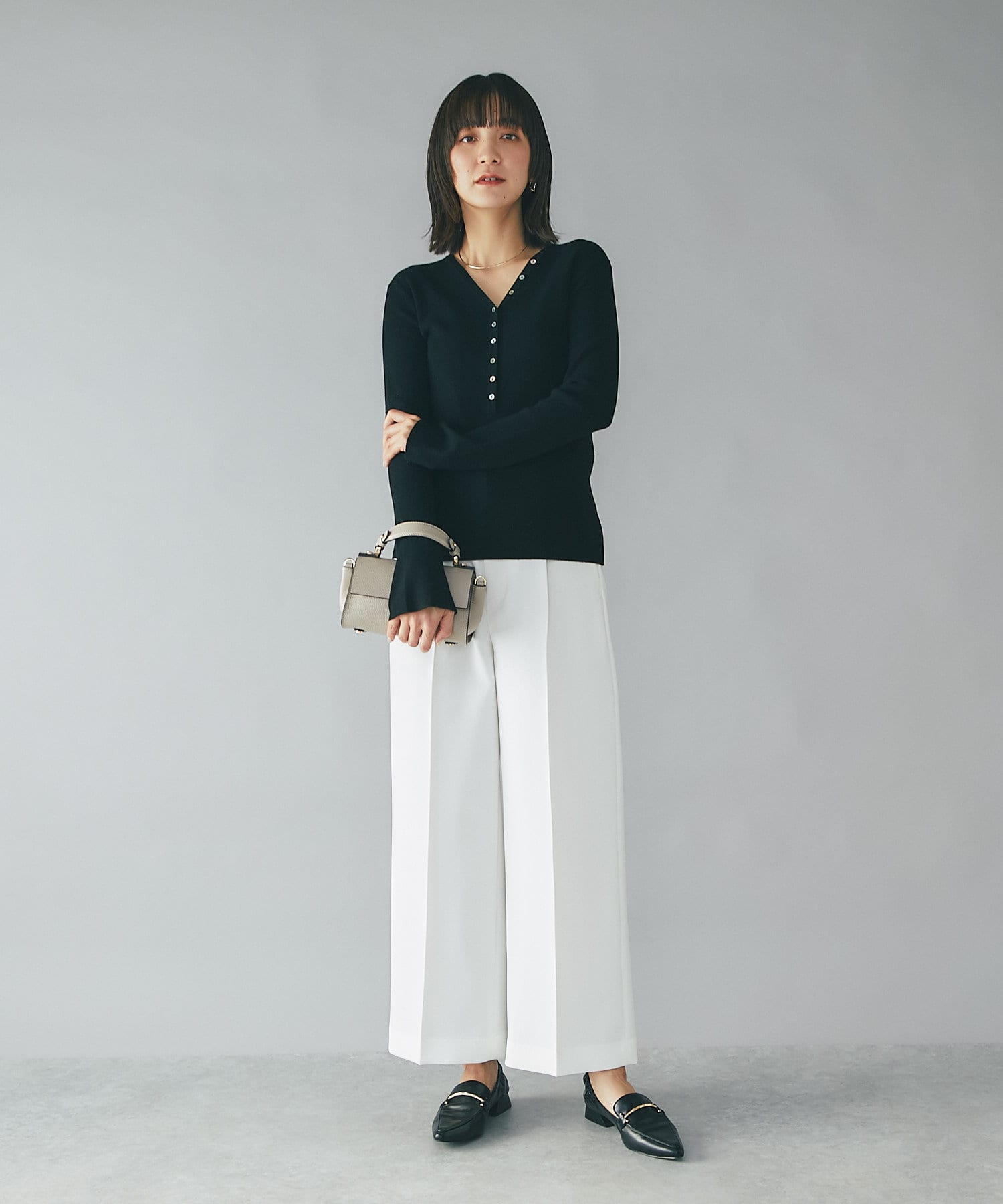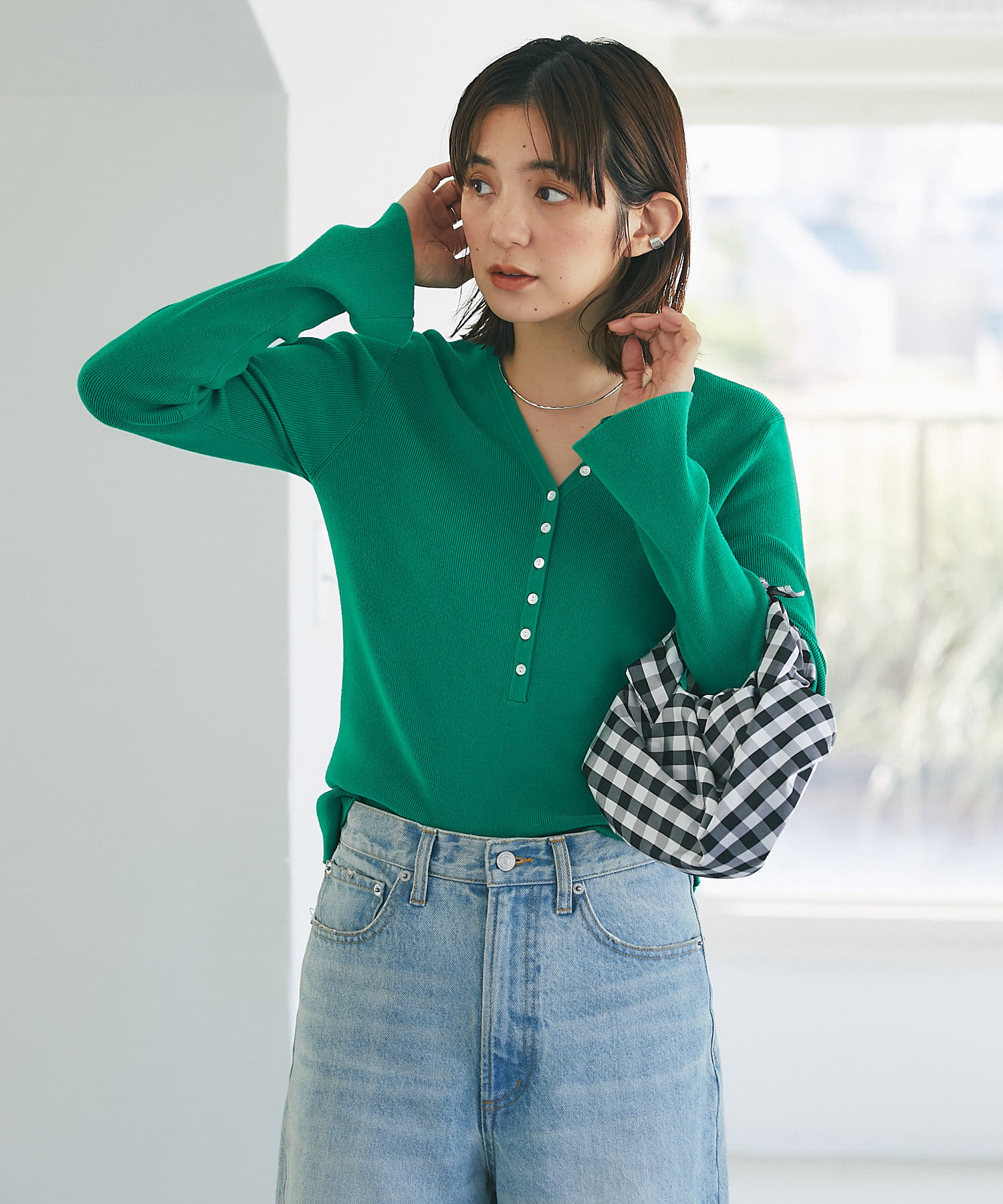 ※店舗にお問い合わせの際は、【パウダリーストレットオープンVネックニット】とお伝えください。