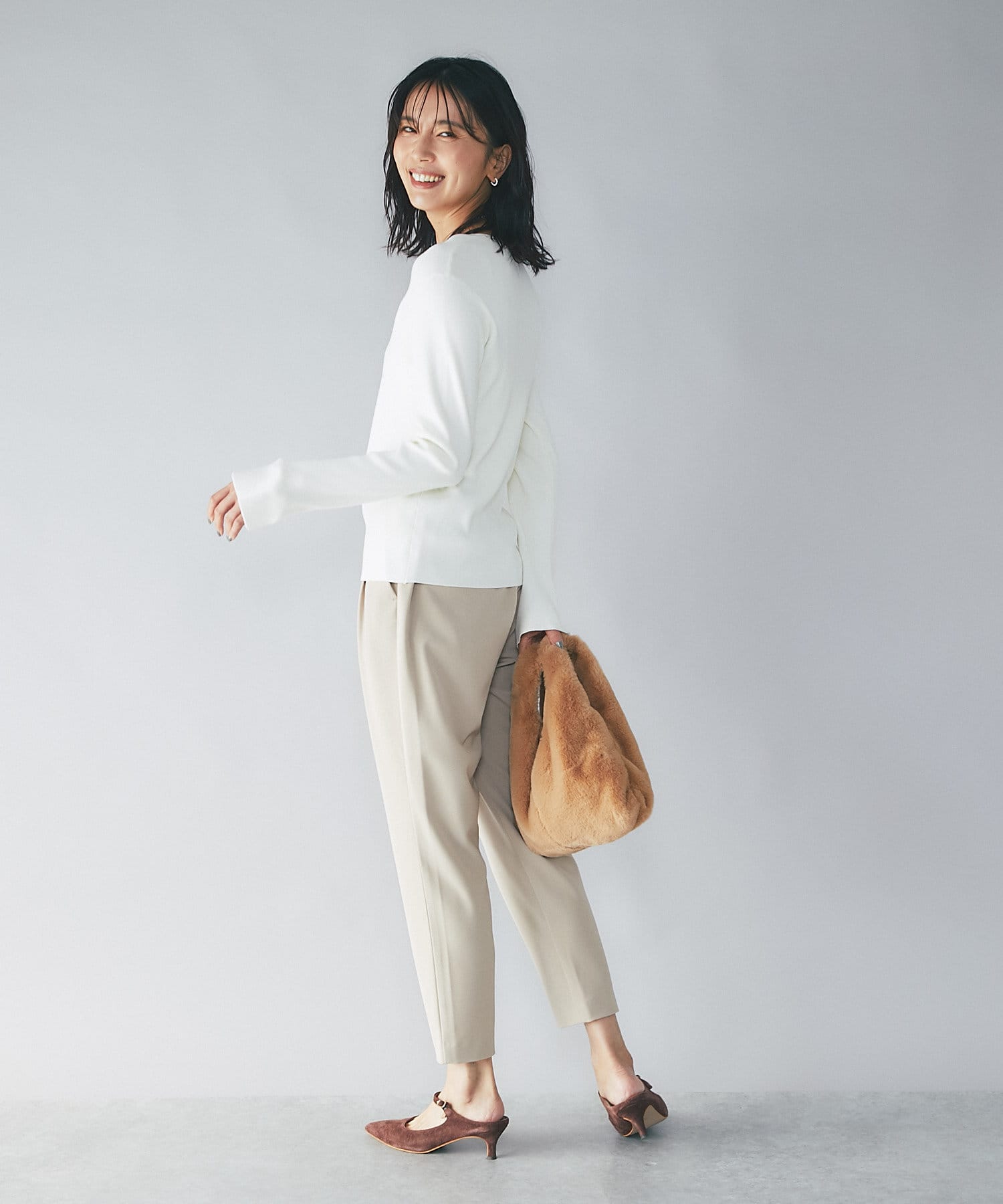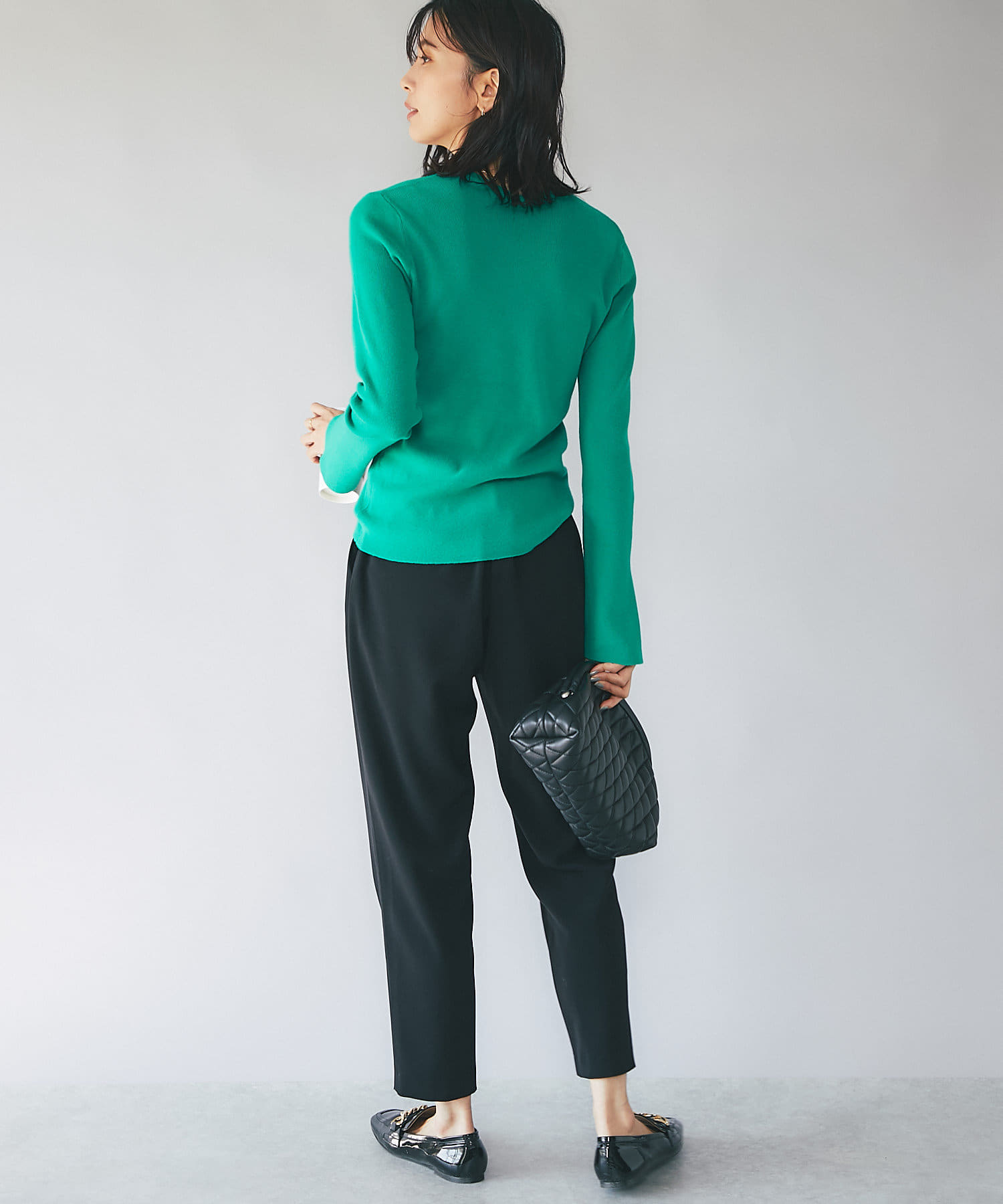 コンパクトで細見えの叶う、ニットプルオーバー。