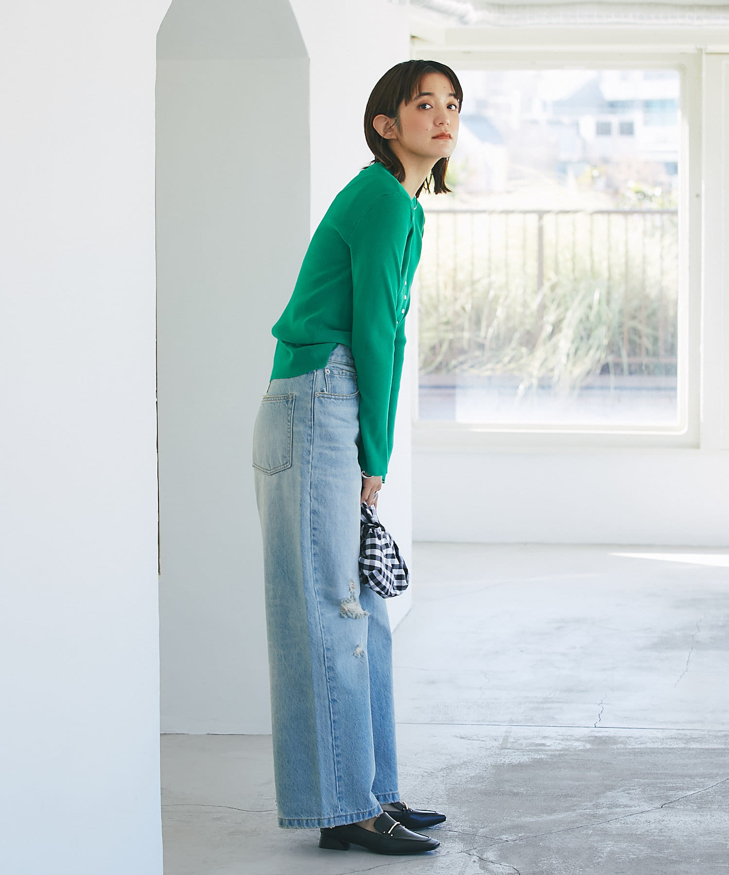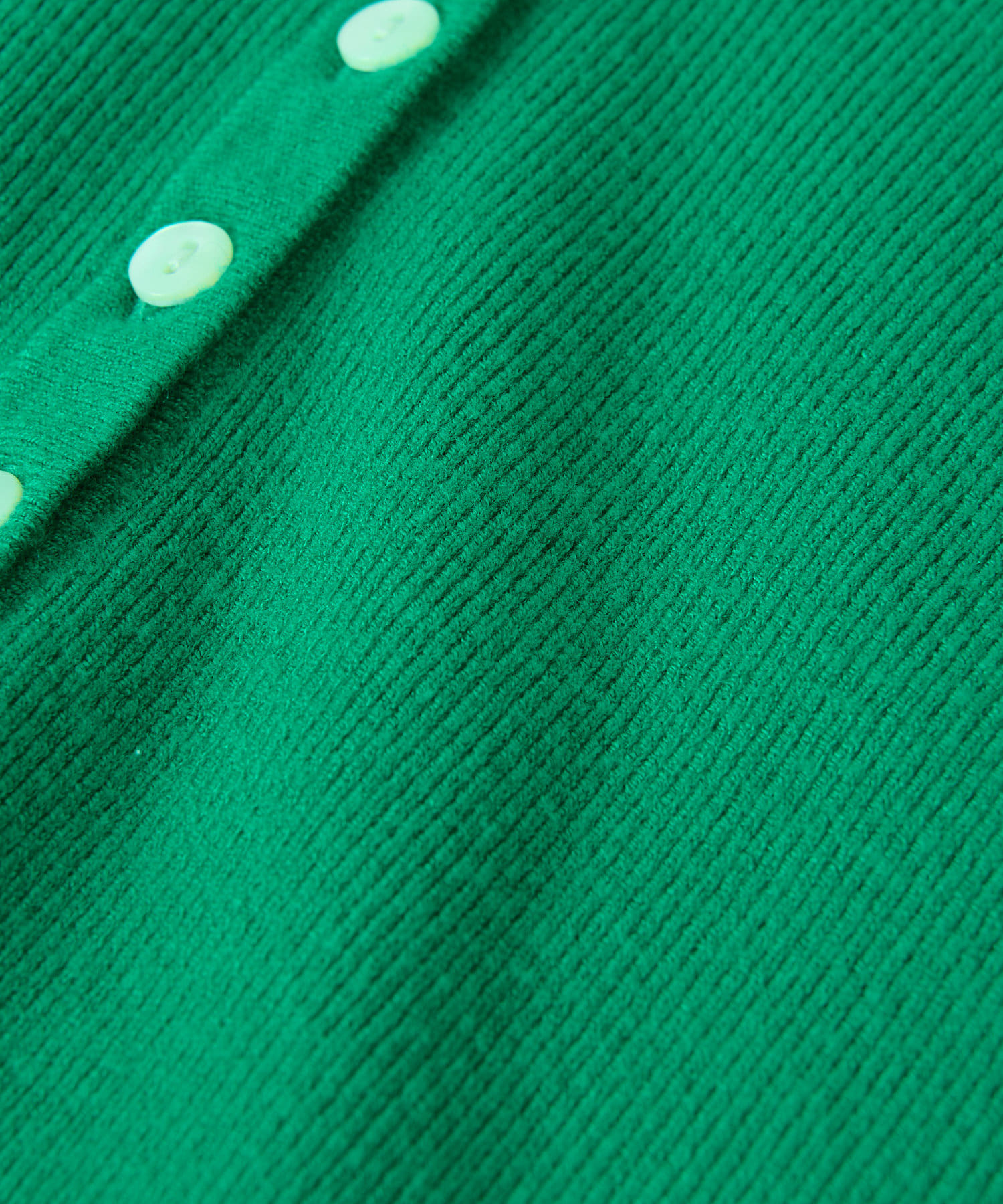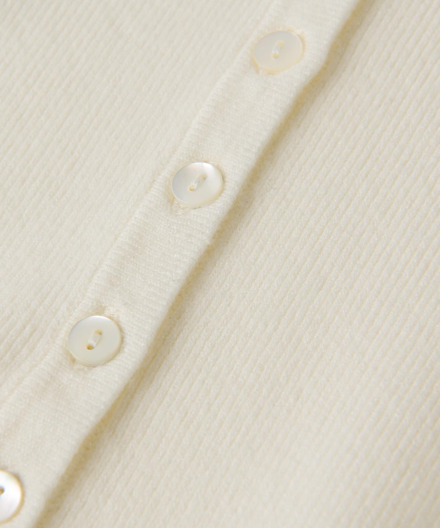 フロント開きは小さなボタンをあしらい、アクセントを効かせました。