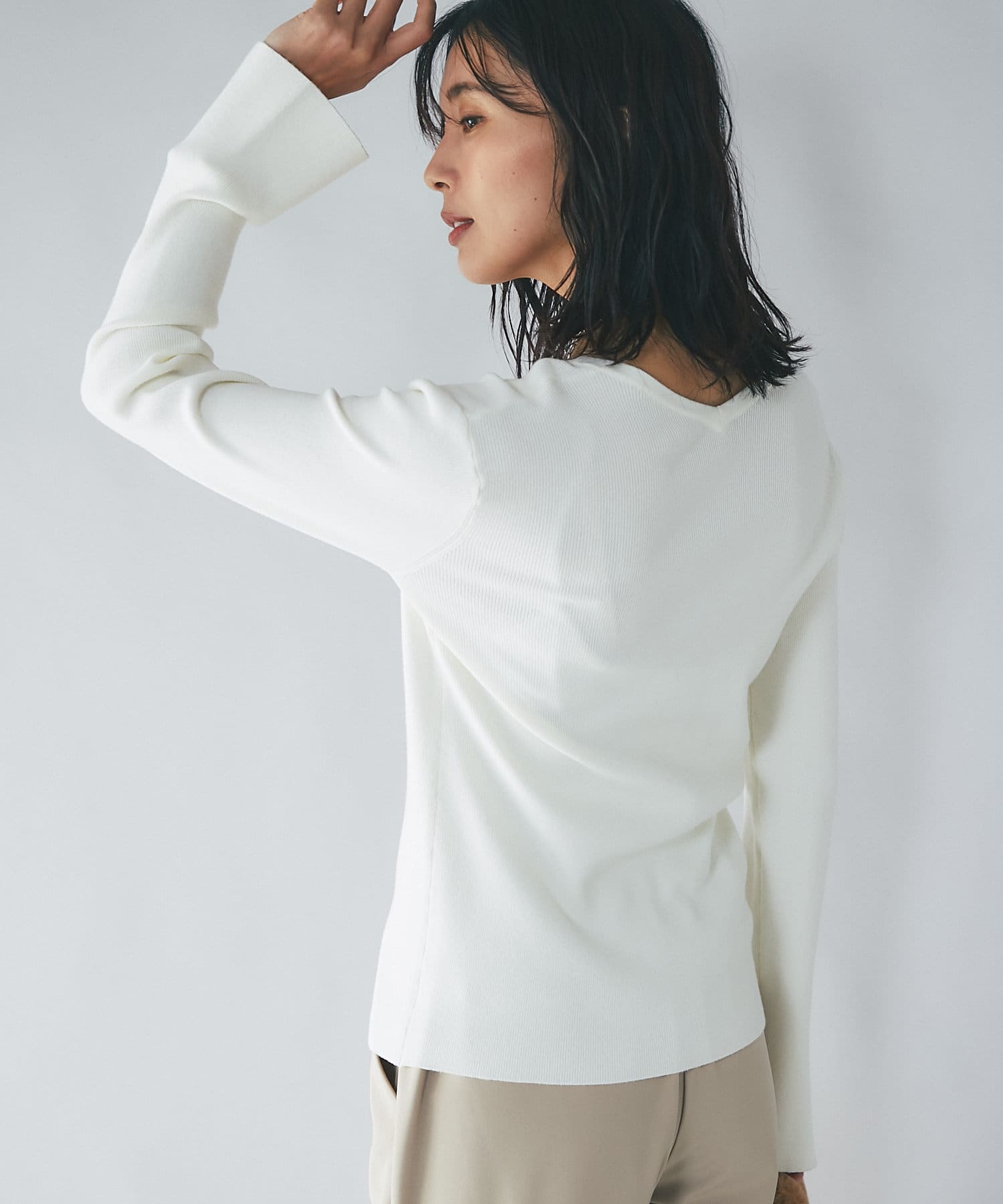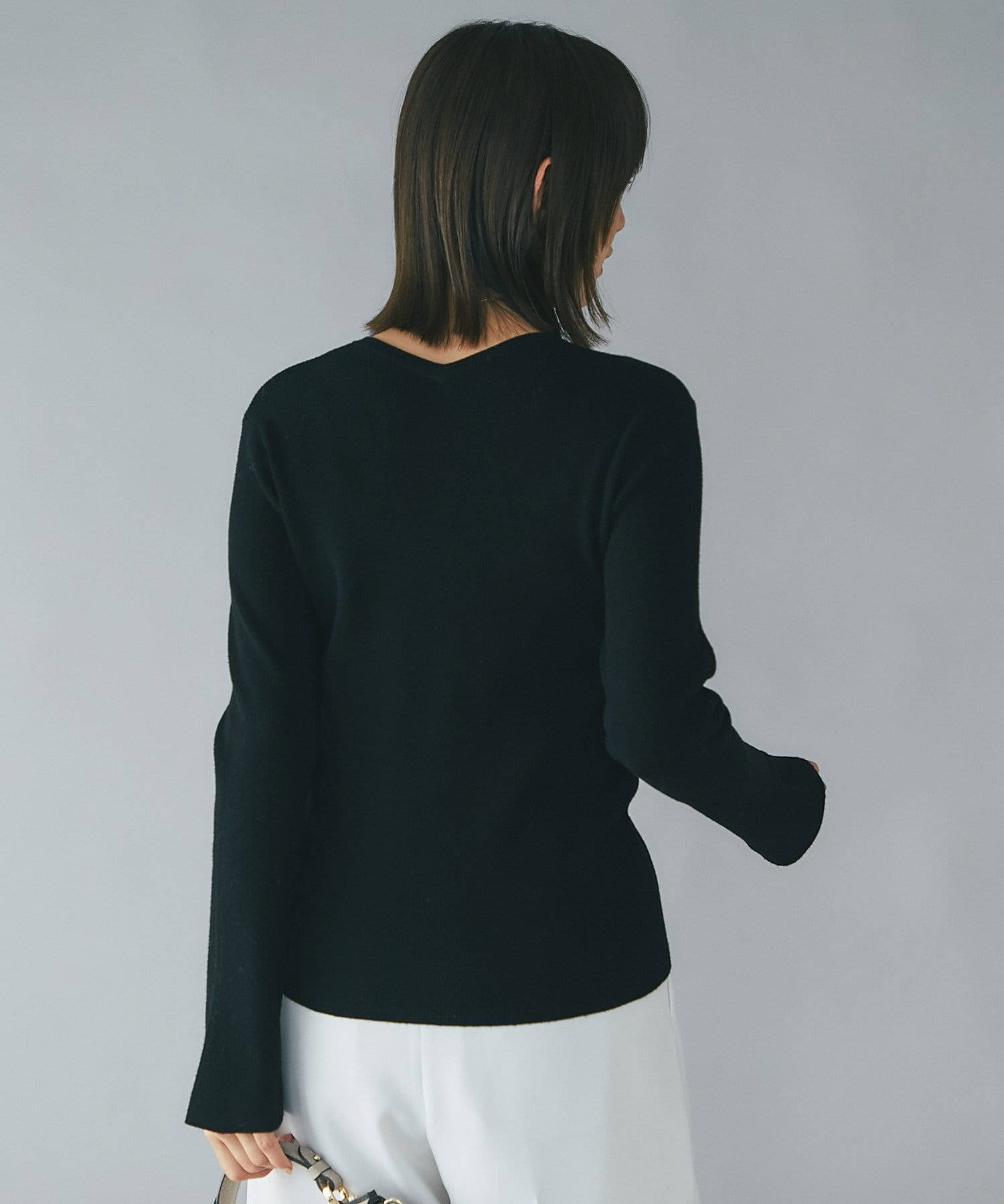 【バックスタイルもぬかりなく着れる】パウダリーVネックニット