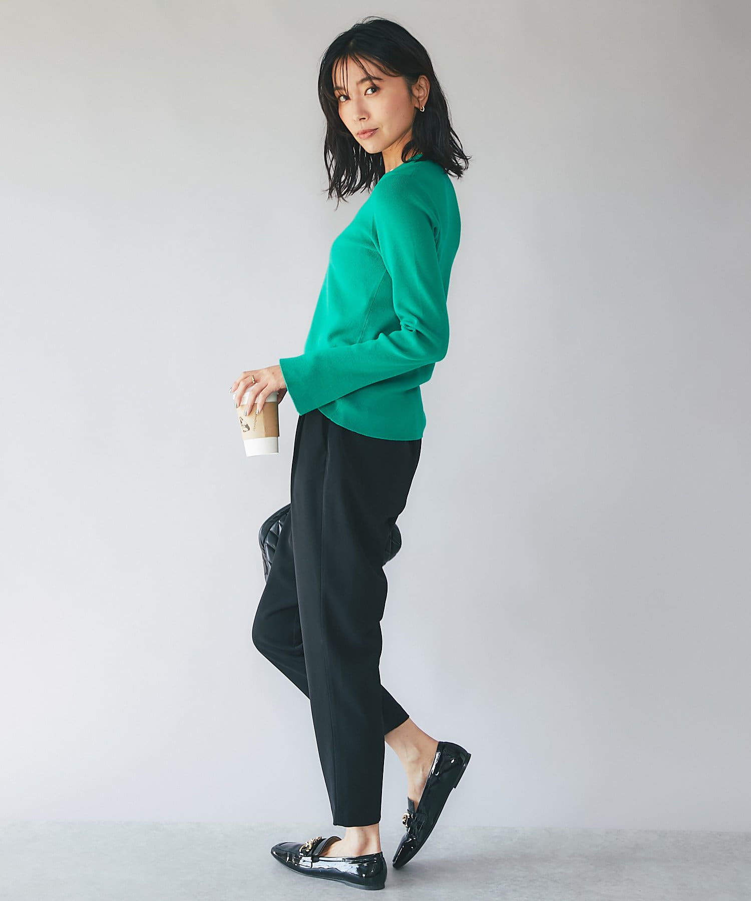 ボディラインを美しく見せてくれるシルエットと控えめなフレアカフスで女性らしく上品な着こなしの叶う1着です。