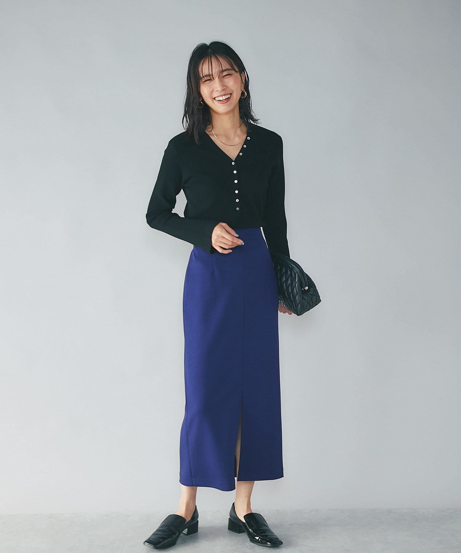 デニムスタイルにはもちろん、オフィスなどにも活躍するのでフェミニンなタイトスカートや、モードなタイトスカートなどでIラインを強調したスタイルもオススメ!