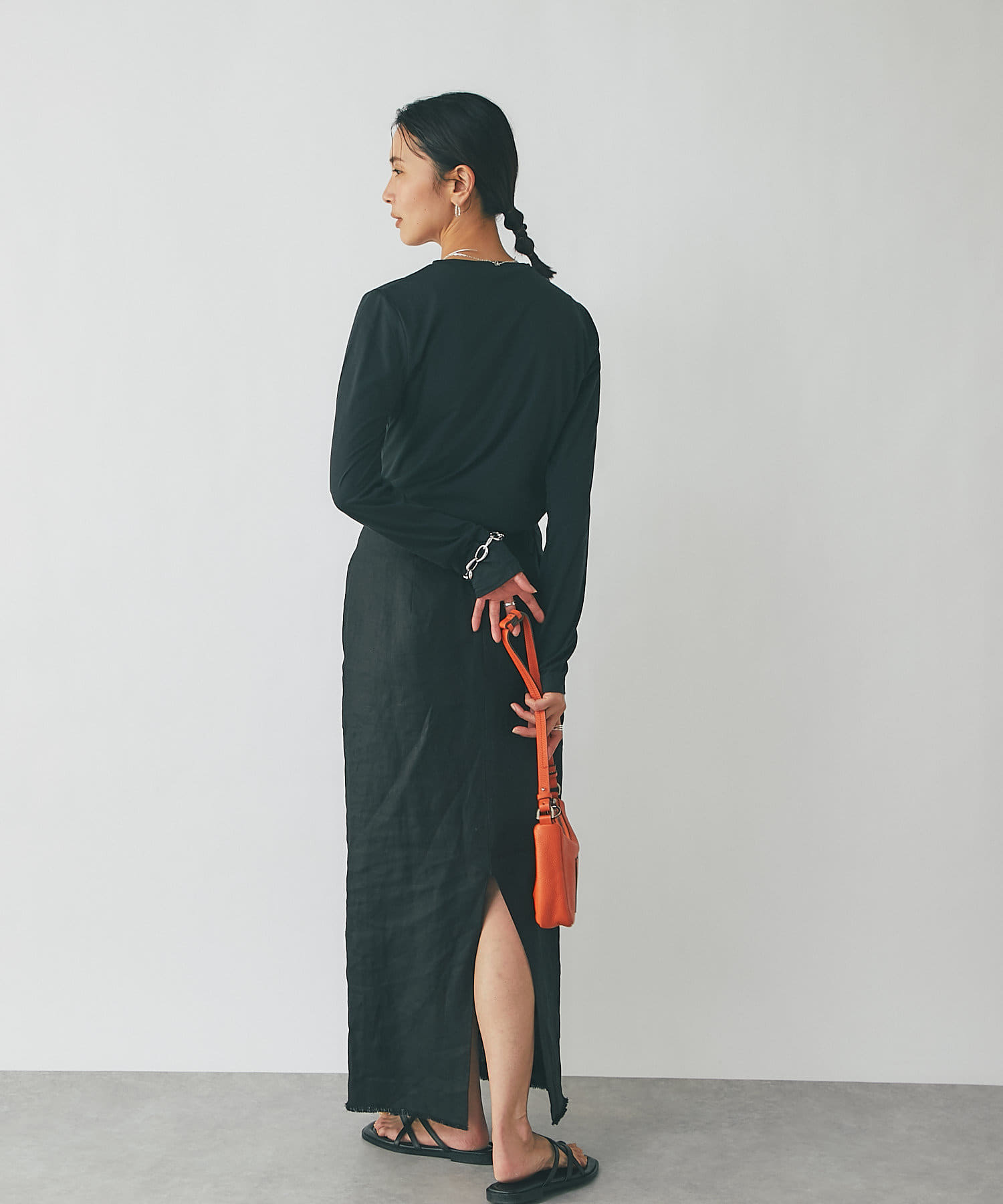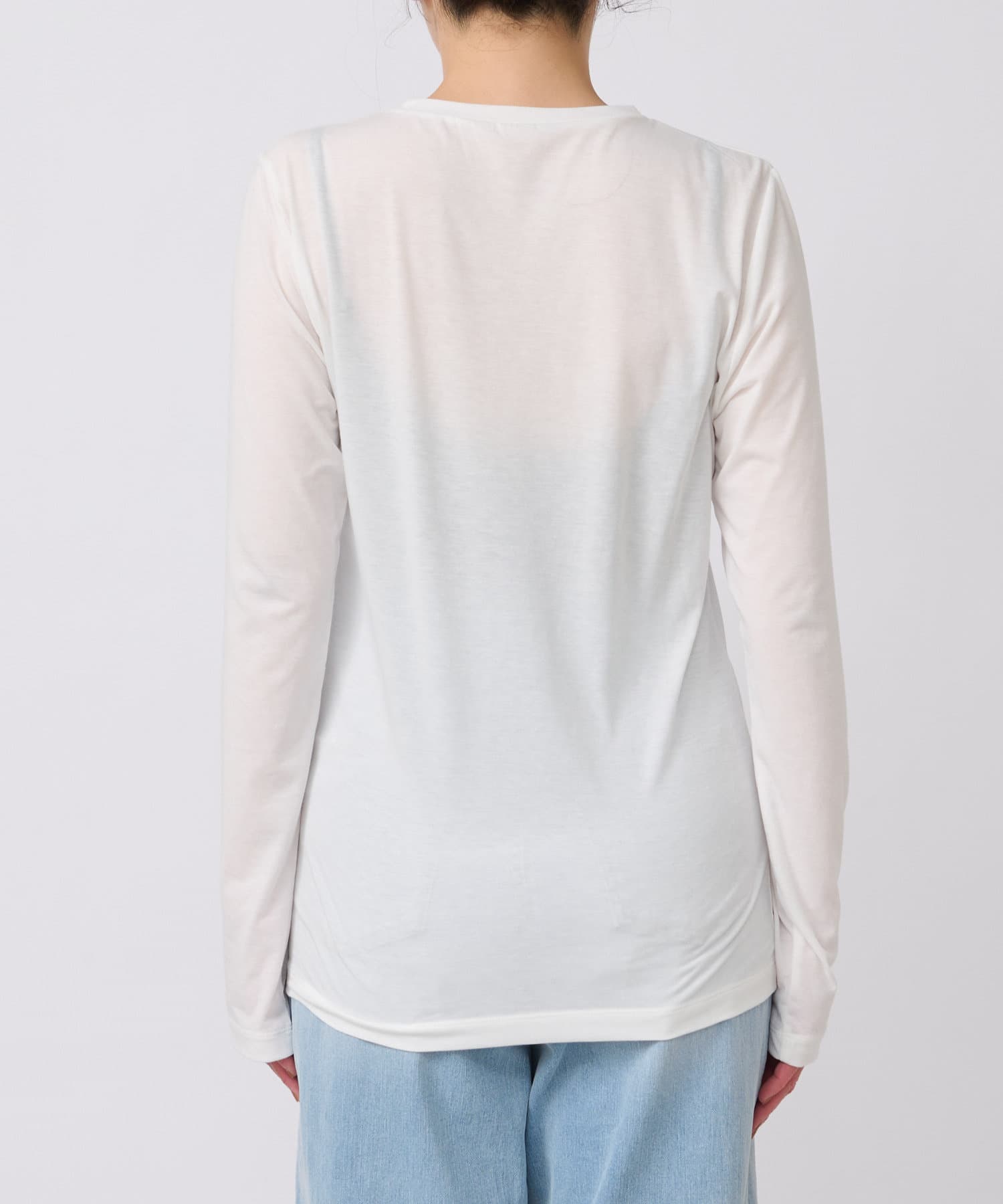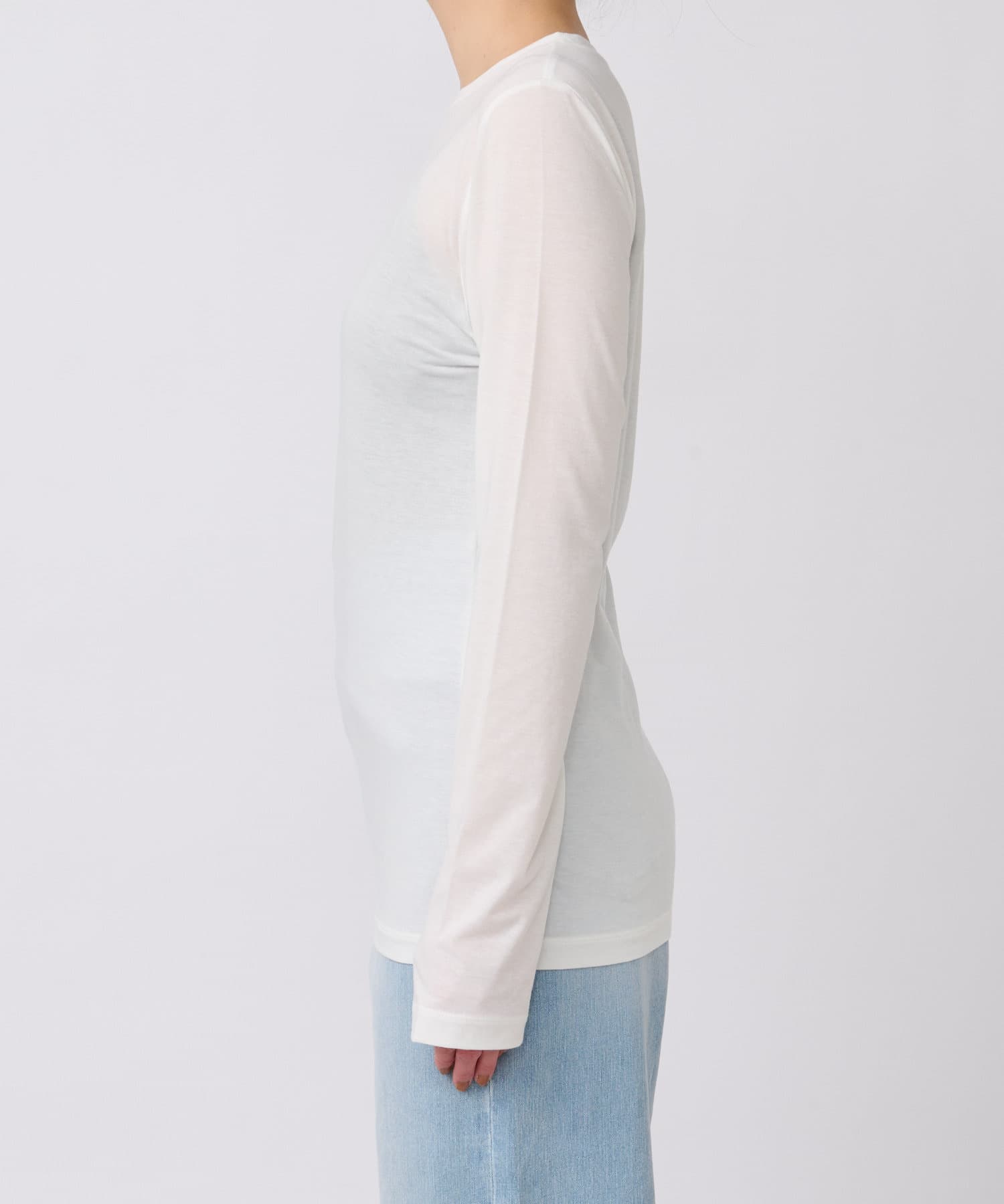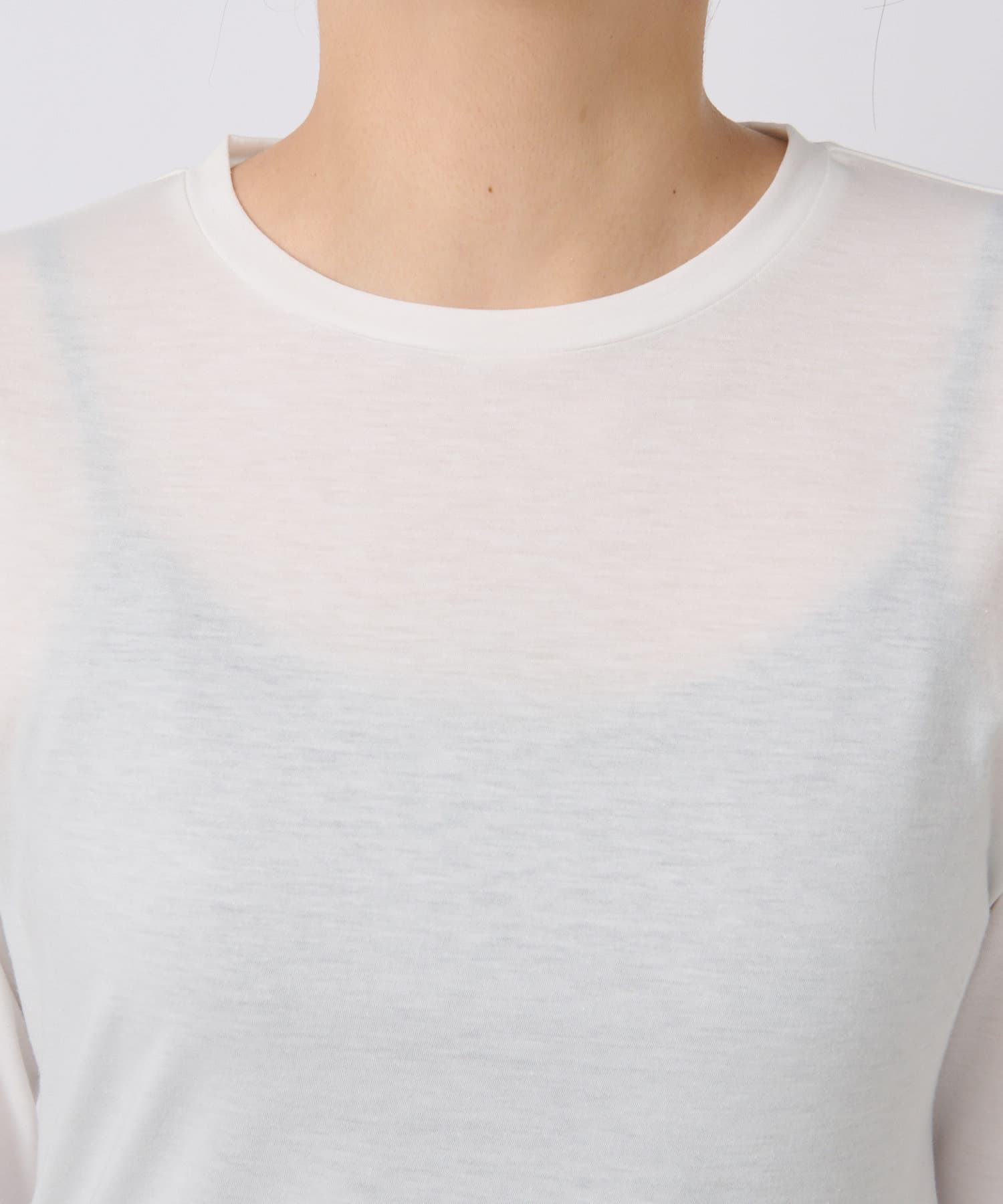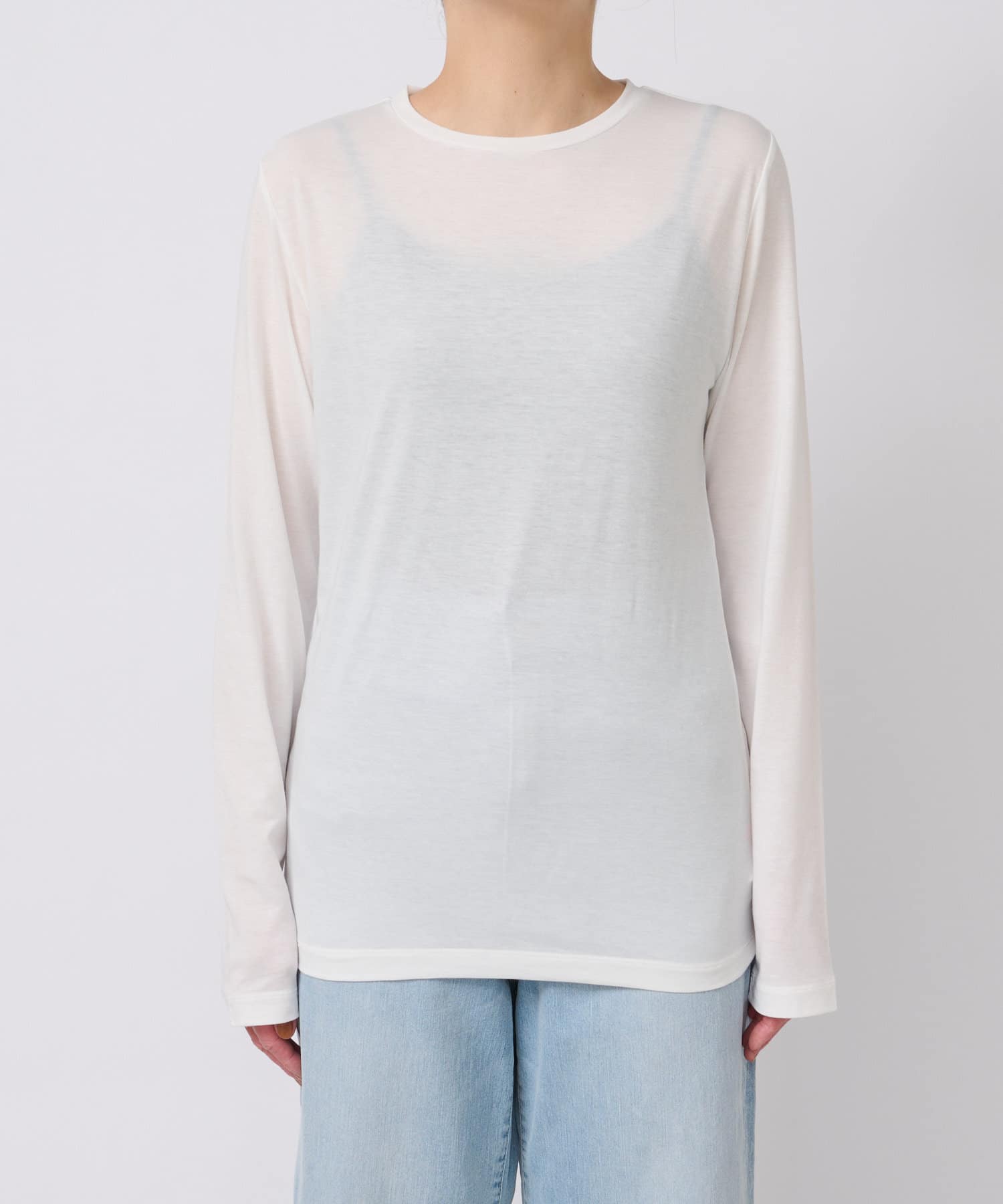 寒さの残る時期はニットやスウェットの下に着てレイヤードを楽しんで。暖かくなってきたら一枚で快適に過ごせるアイテム。やや透け感があるため、インナーのカラーで異なった表情を楽しめます。