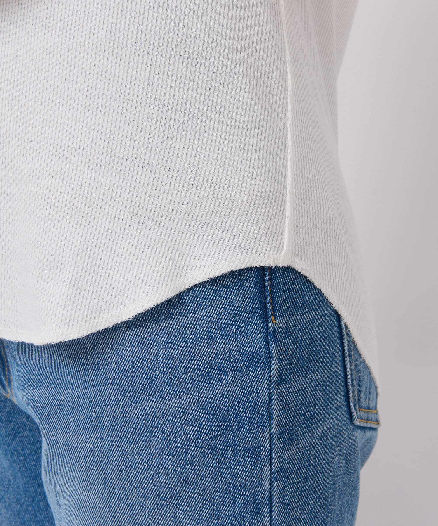 リヨセル混のテレコの生地は少し透け感があり、さらりとした軽い着心地で、夏にかけて気温が上昇する時季にも快適に着用いただけます。