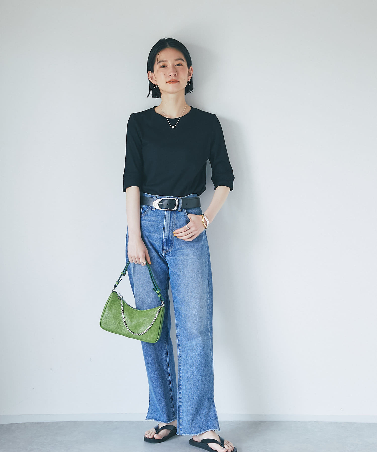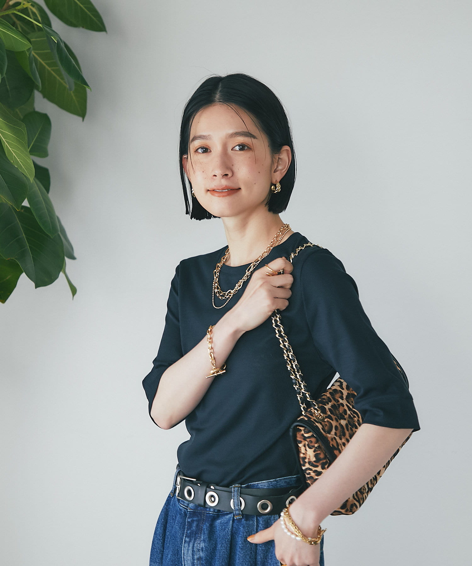 5分袖で腕回りのシルエットをすっきりと見せてくれるのも嬉しいポイント◎