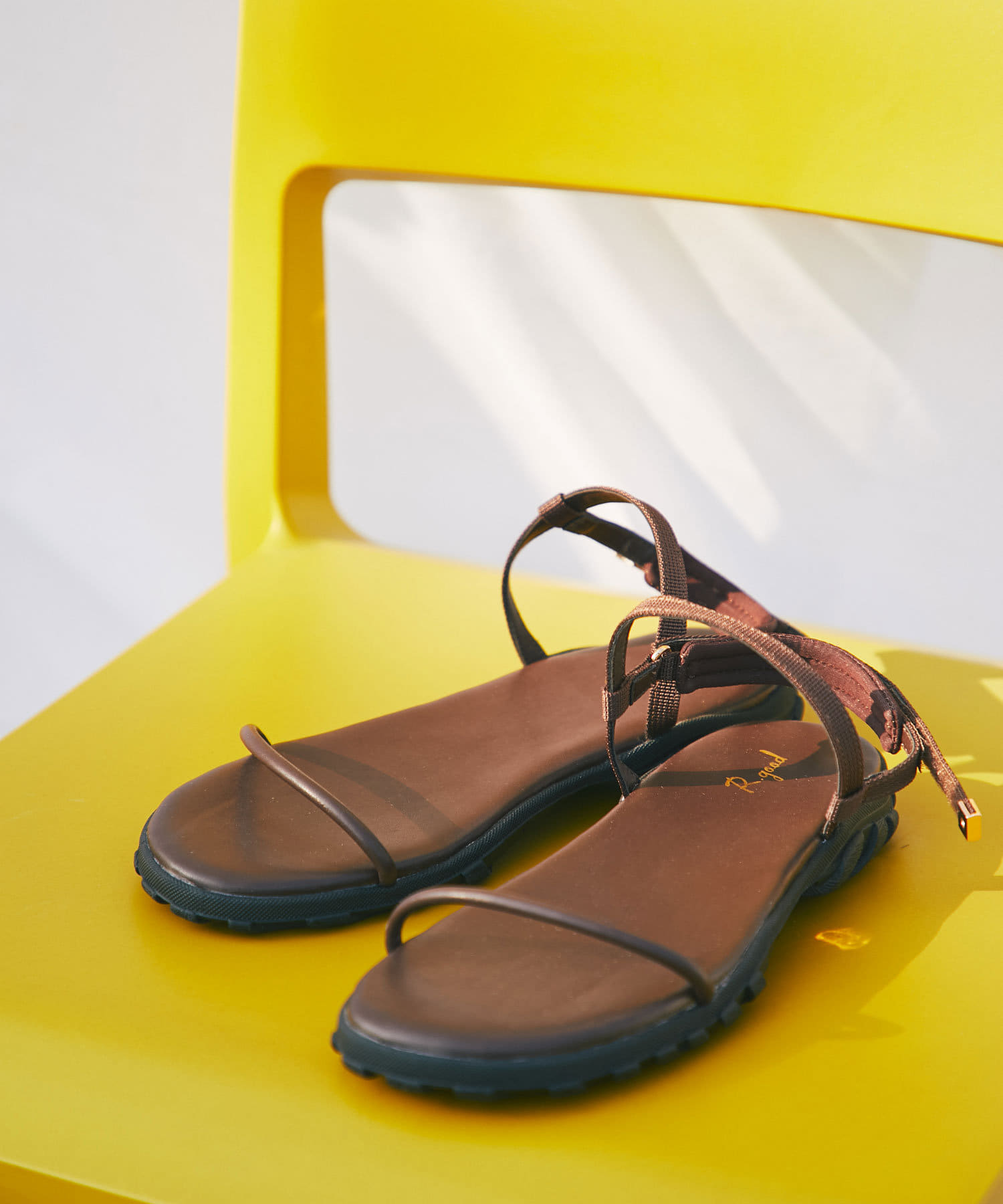 ボリュームを抑えたソールや細身のストラップが主張しすぎず足に馴染み、大人の方にも履きやすいデザインです。