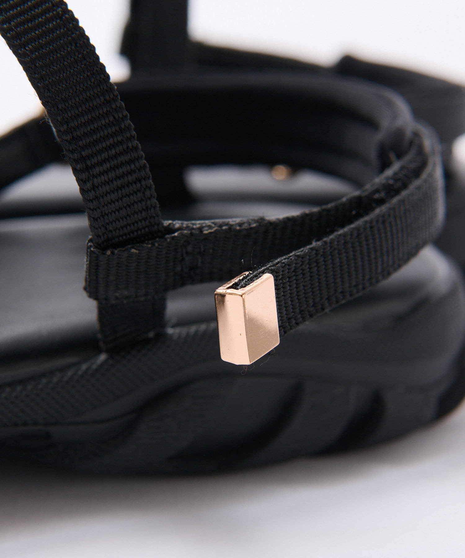 ストラップの先端についた金具は歩く度にさりげなく光り、足元に軽さとポイントを与えます。