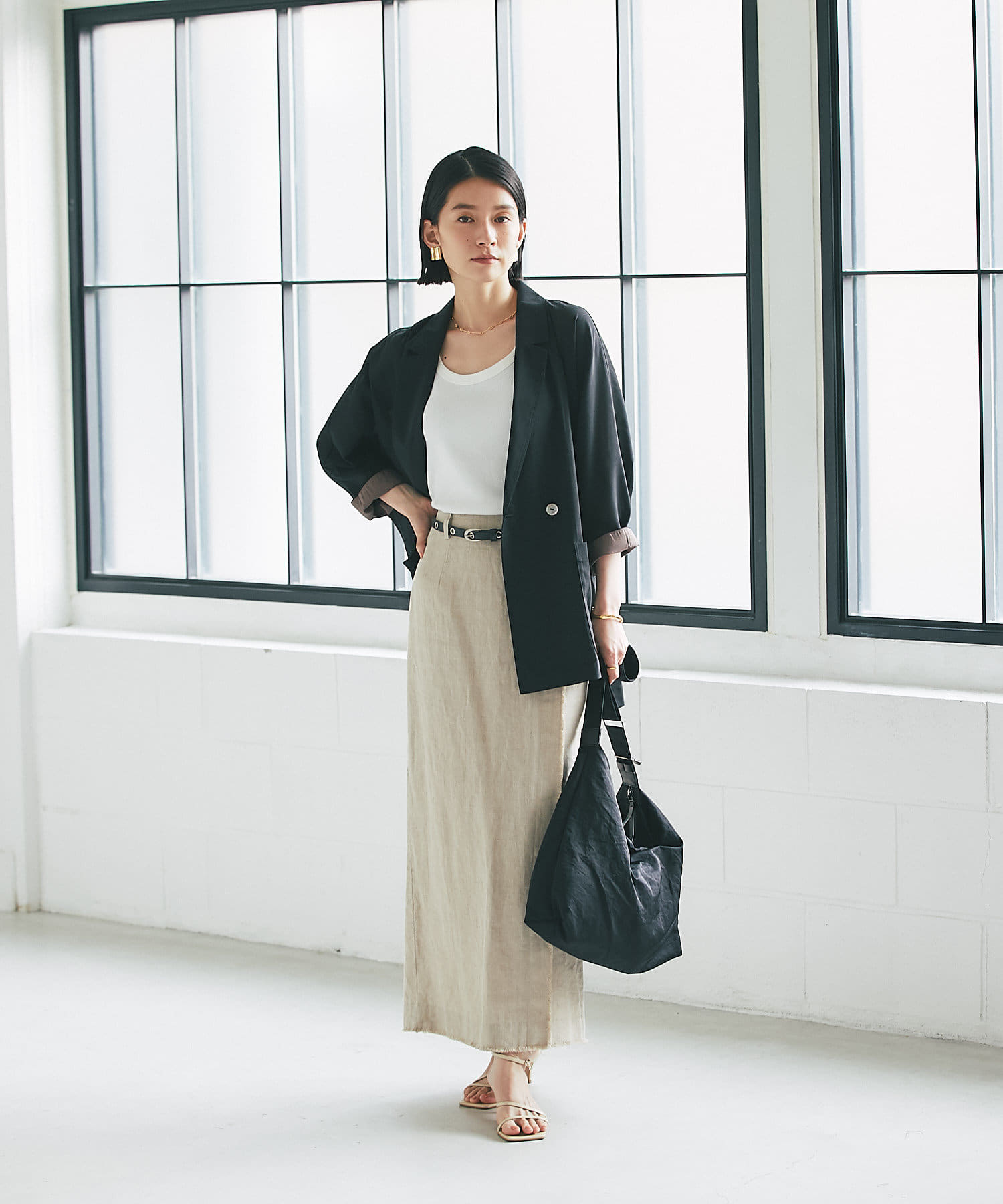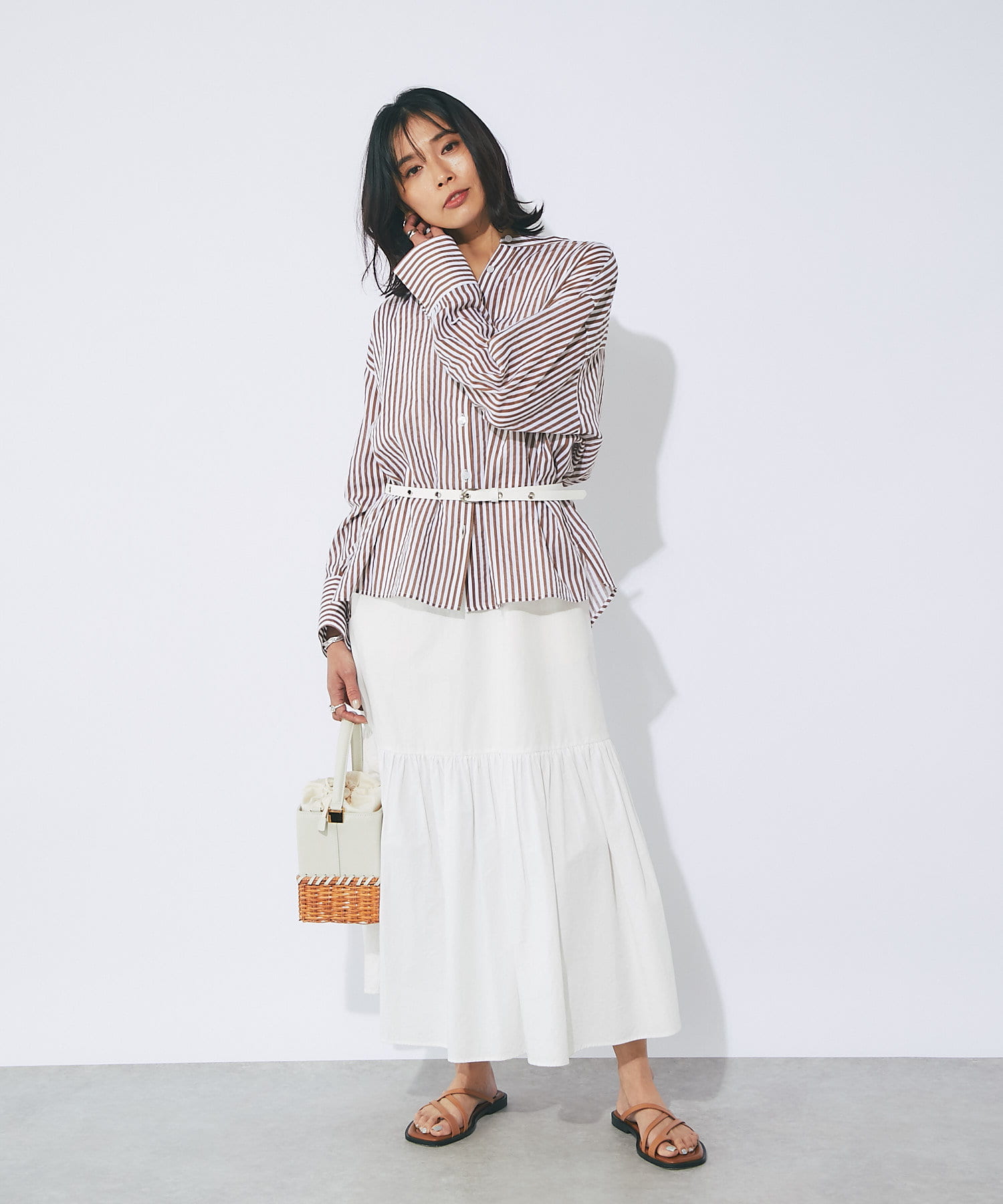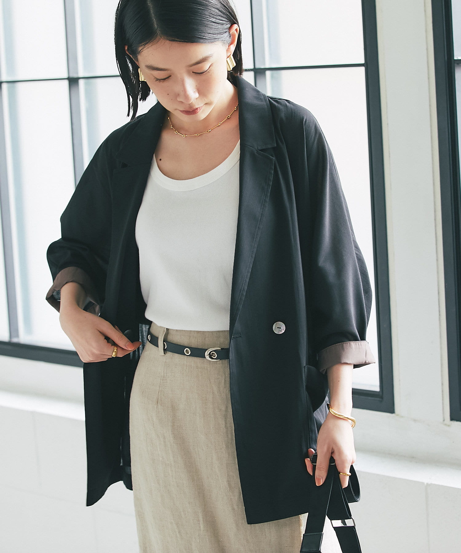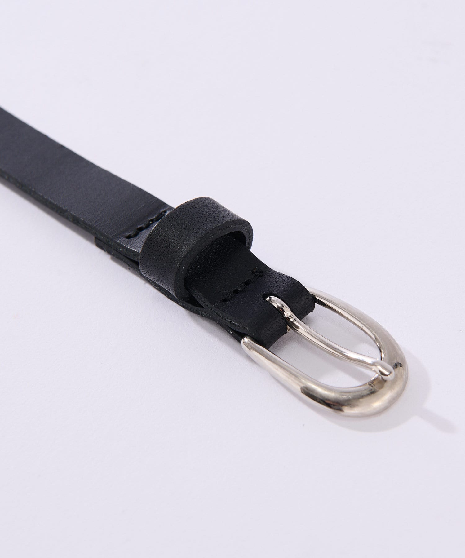 細身のベルトはカジュアルになりすぎず、コーディネートにさりげないアクセントを加えてくれます。