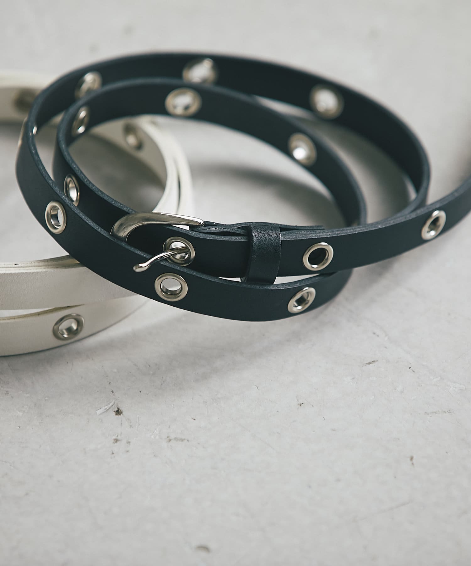 カジュアルからモードまで合わせやすいハトメタイプの細ベルトが登場。