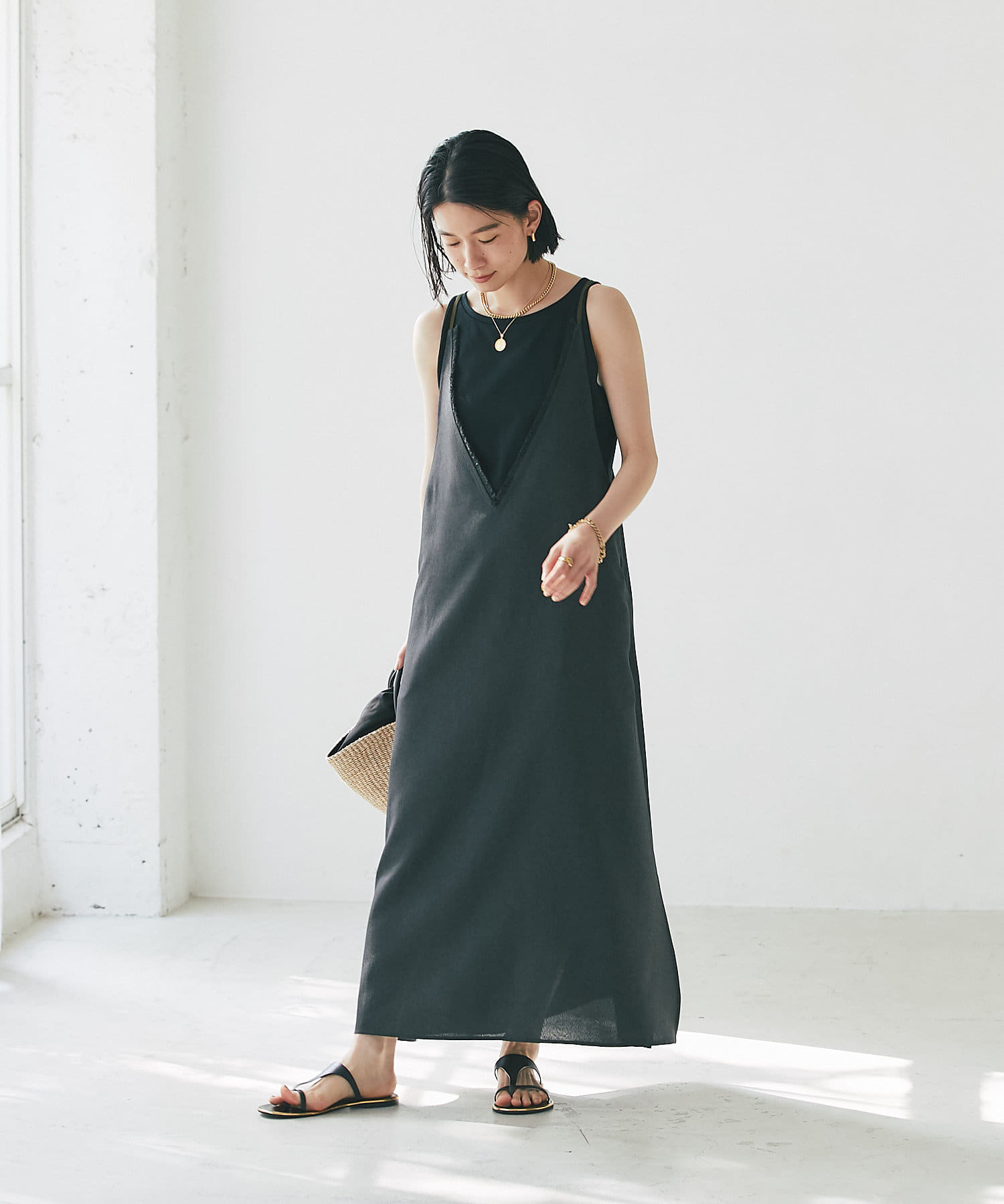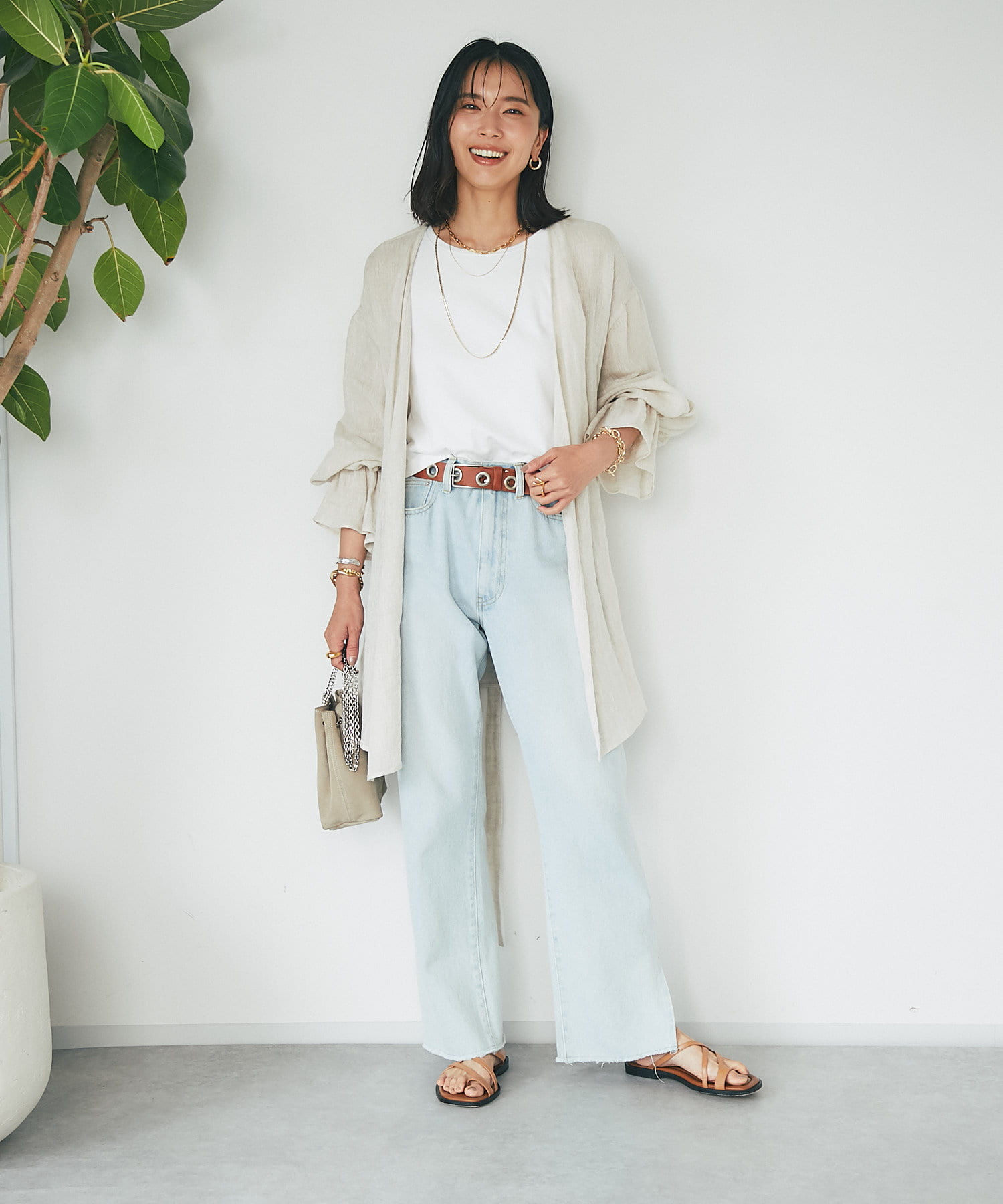 透け感の少なめな素材で安心感のある生地を使用しており、カーディガン、ジャケットのインナーにもオススメのアイテム。