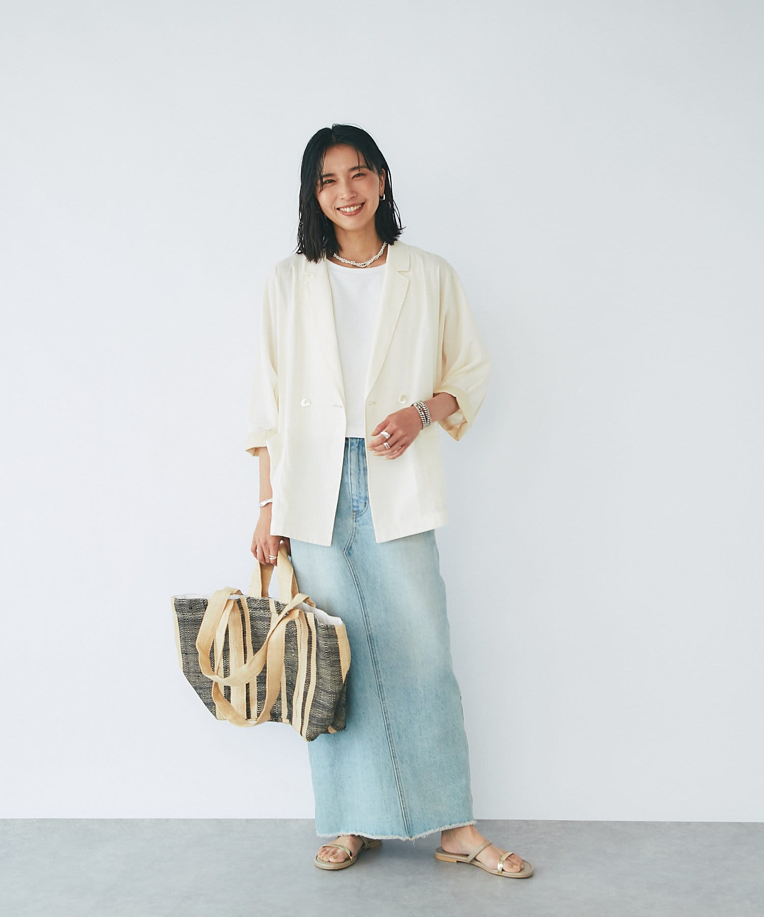 着丈は通常よりも短めにしているため、ボトムをインしなくてもコンパクトに着用いただけます。
