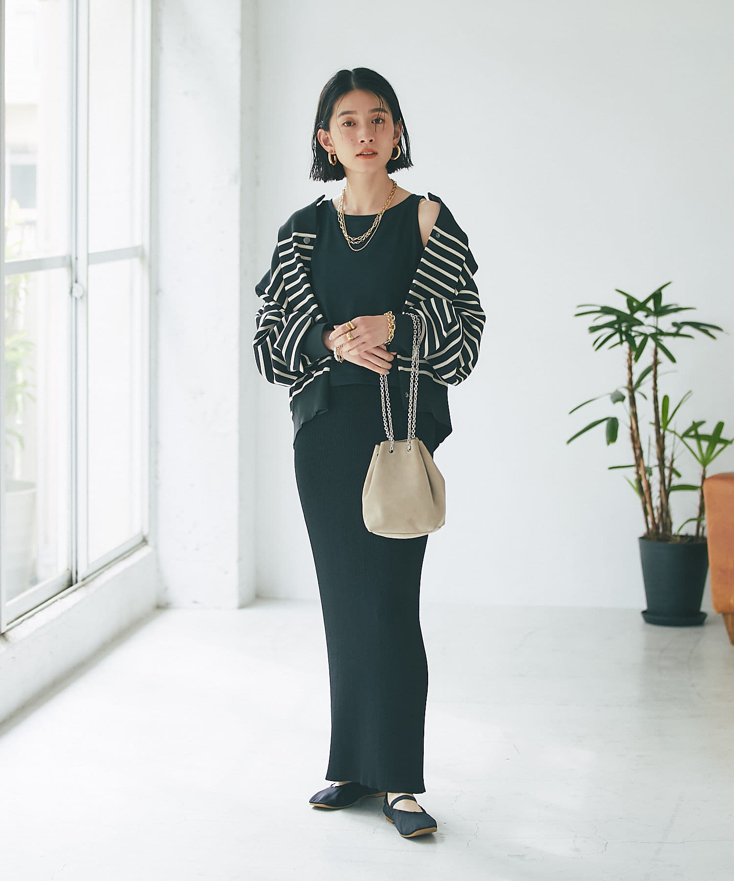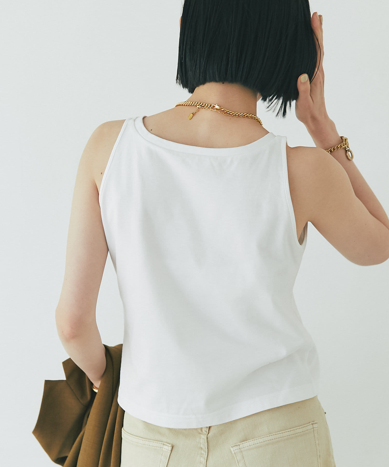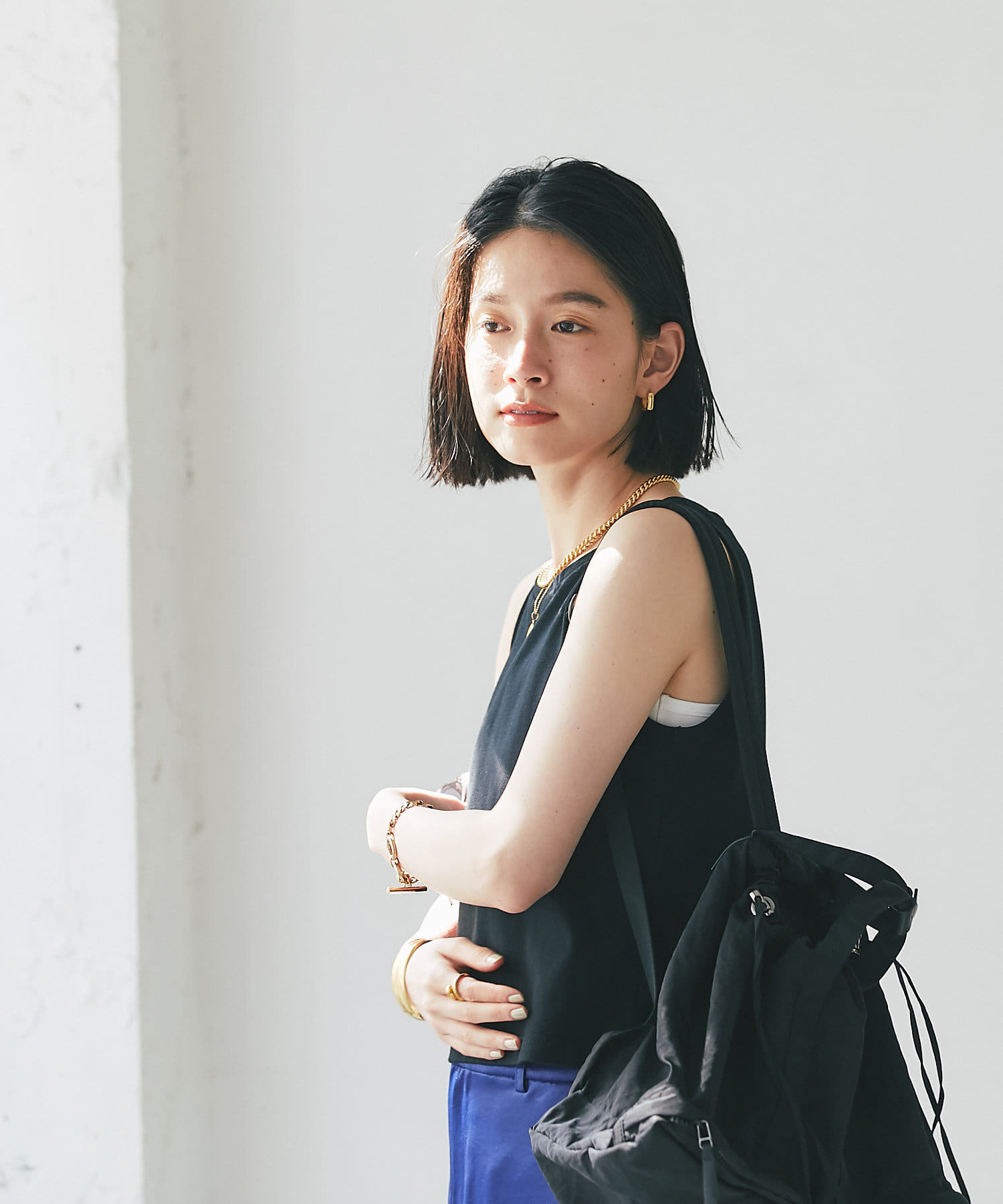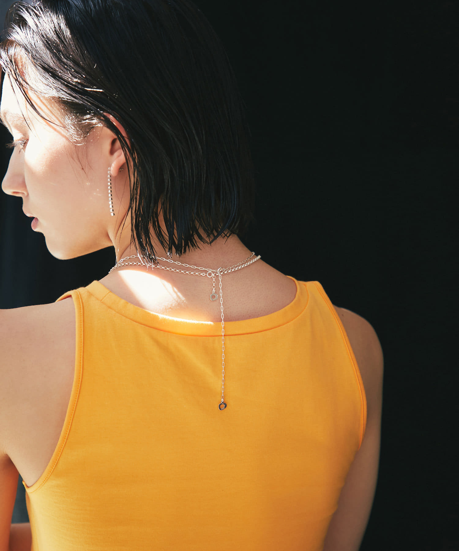 トレンドのシアーシャツと合わせて、見えても良いインナーとして着用いただくのがオススメです。