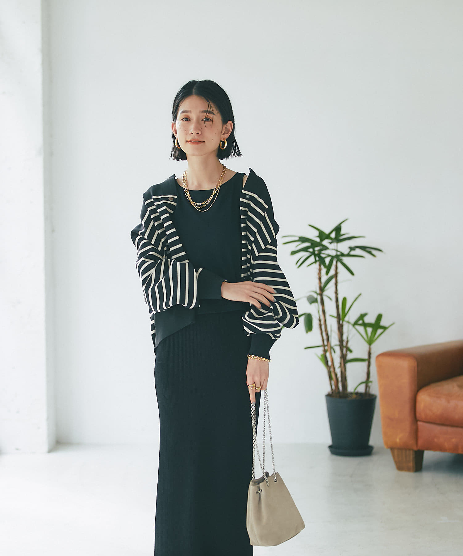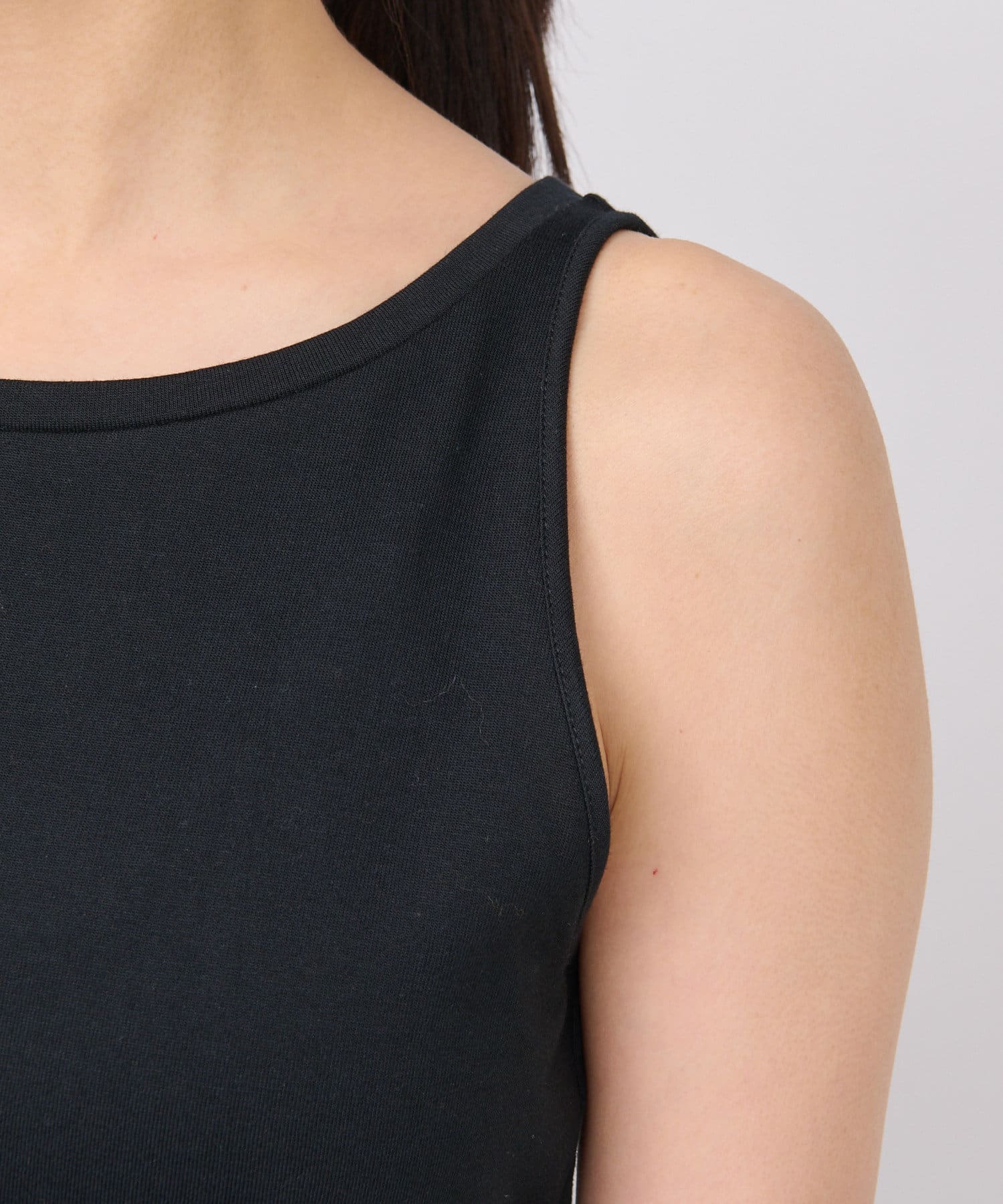 ややボートネック気味のデザインで肌の露出を程良く抑えてくれるのも嬉しいポイント。