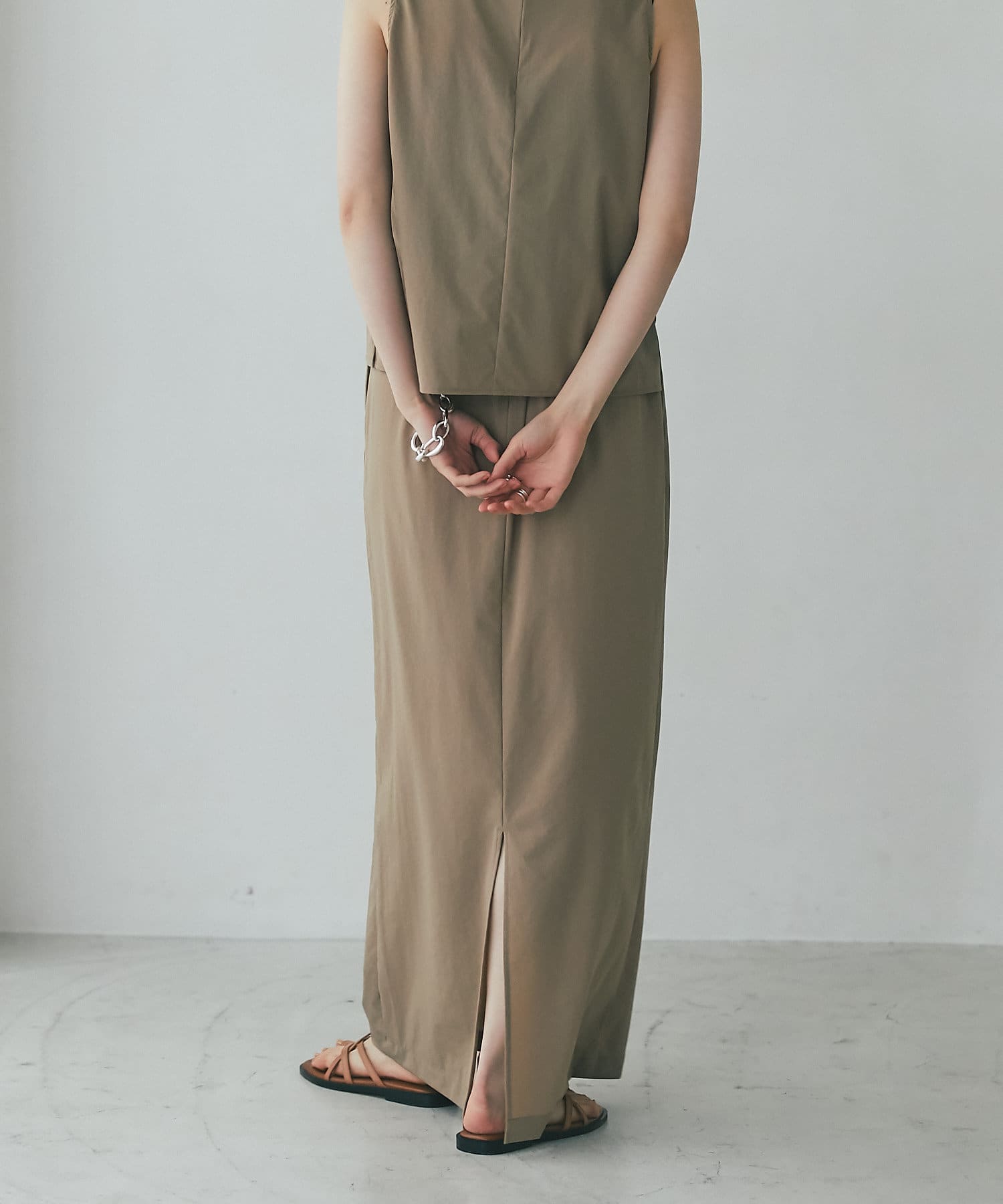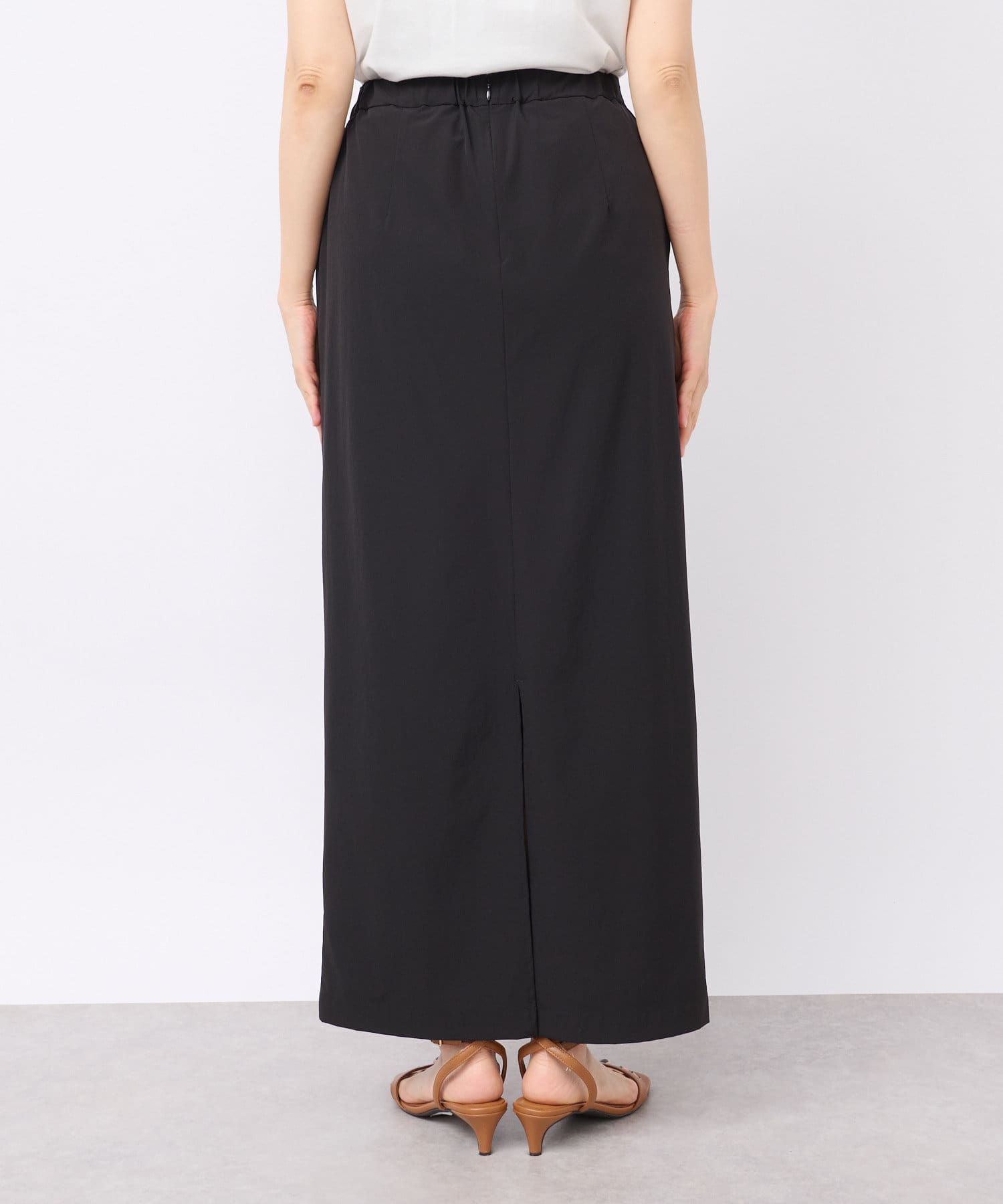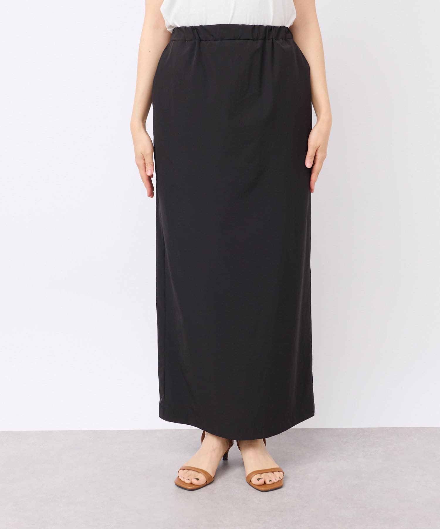すっきりとしたストレートシルエットのマキシ丈のスカート。