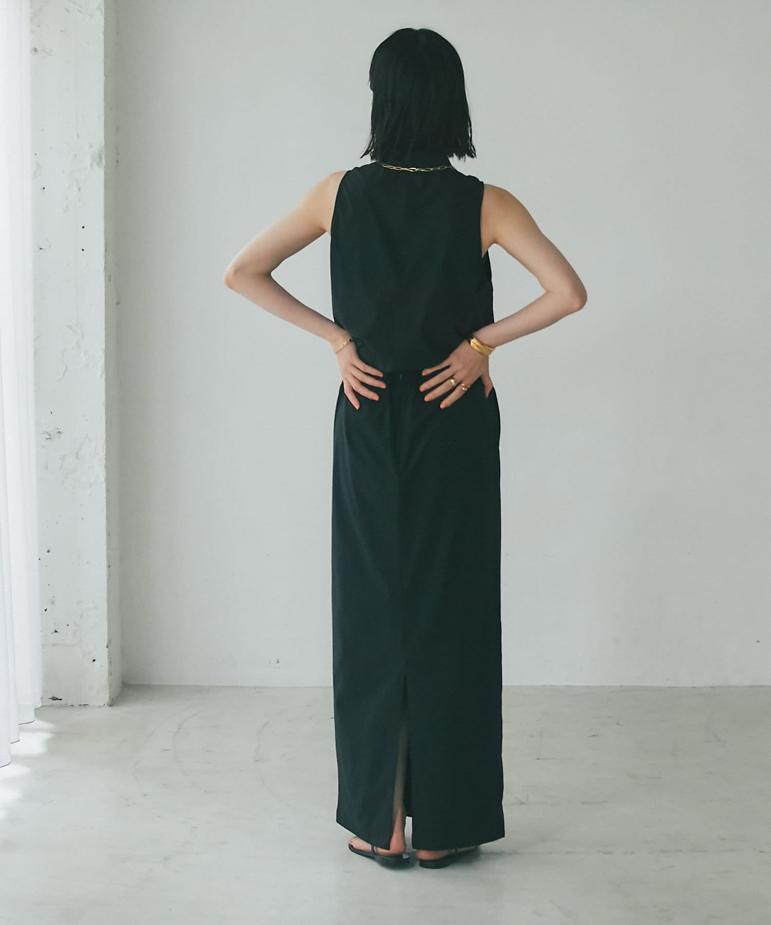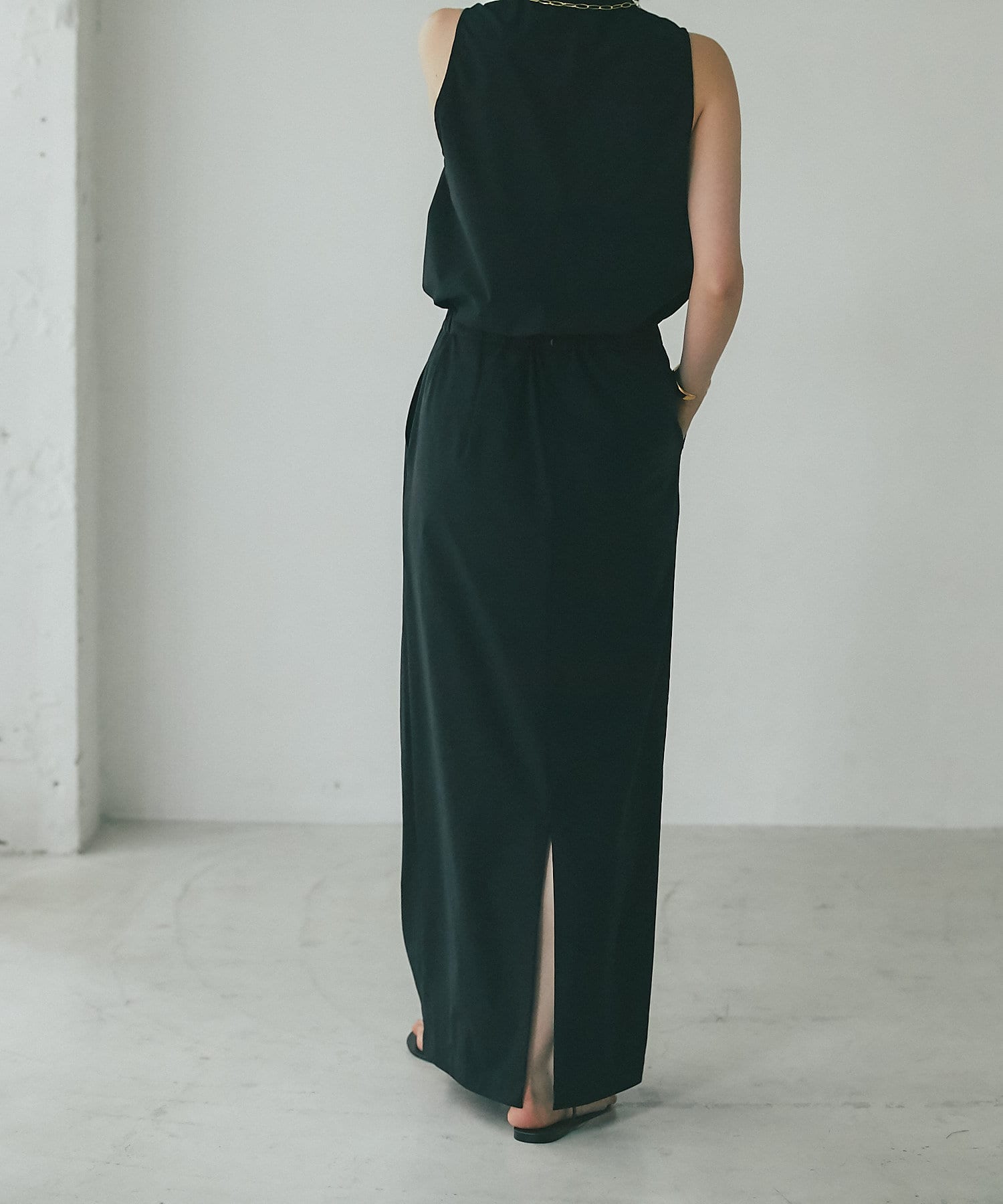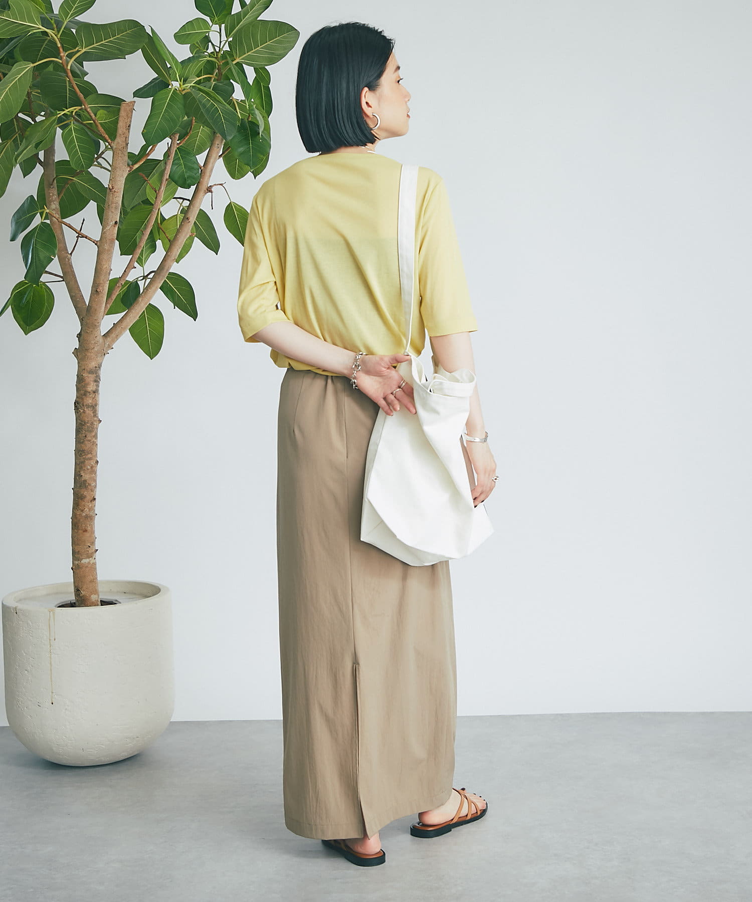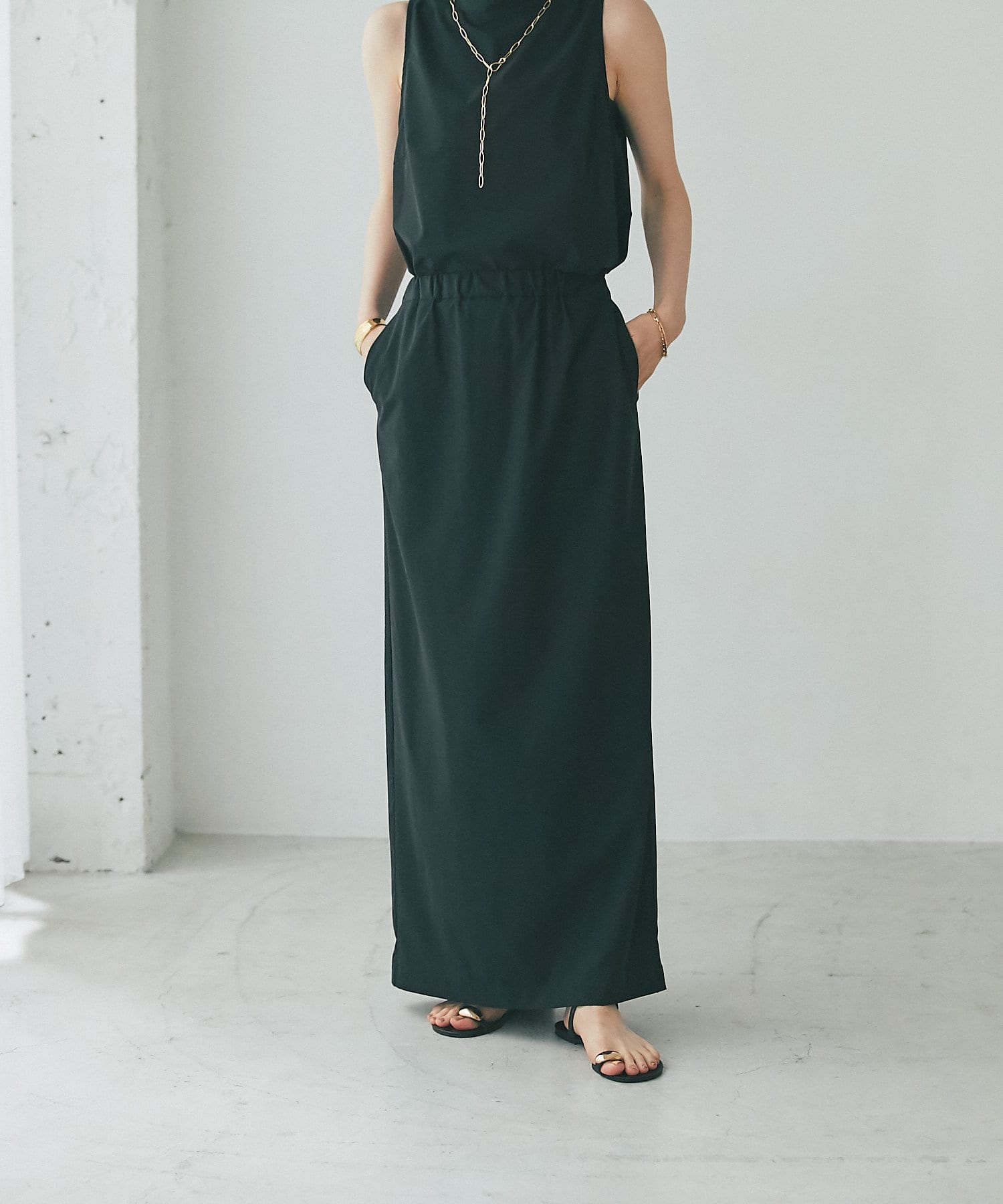 すっきりとしたストレートシルエットのマキシ丈のスカート。