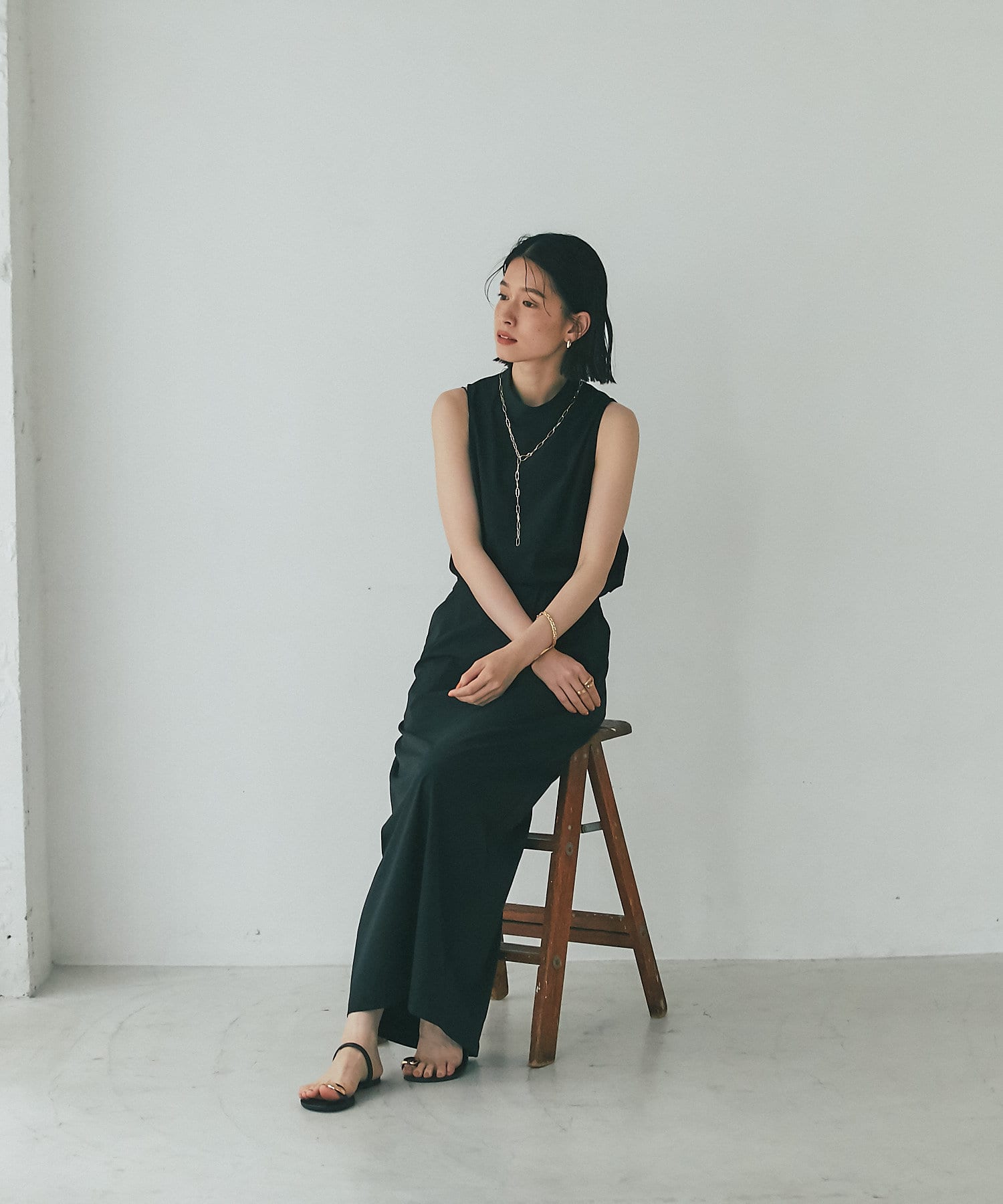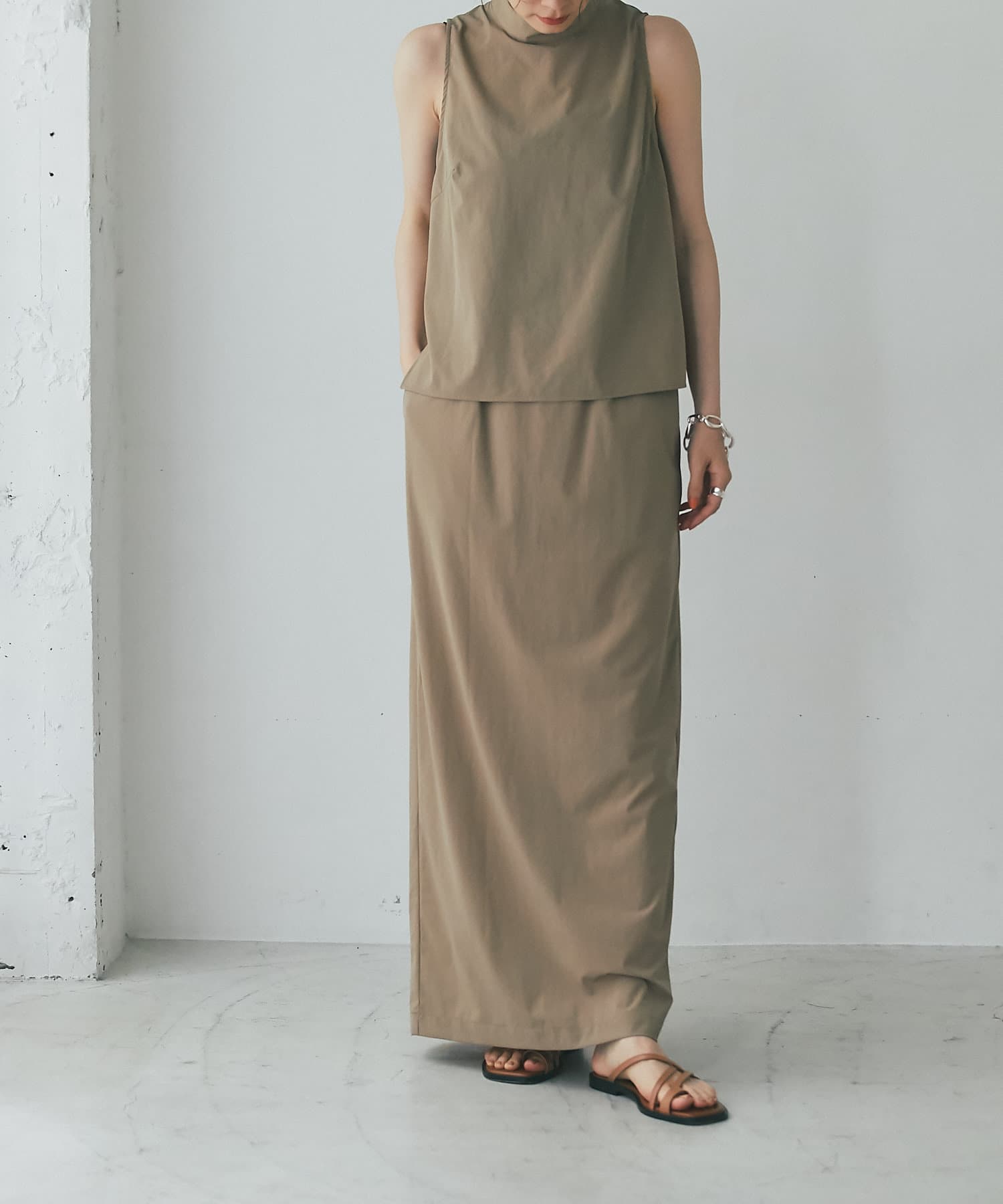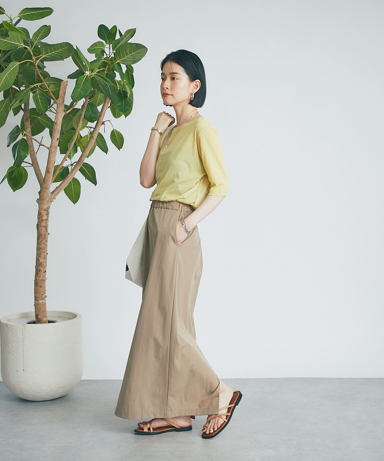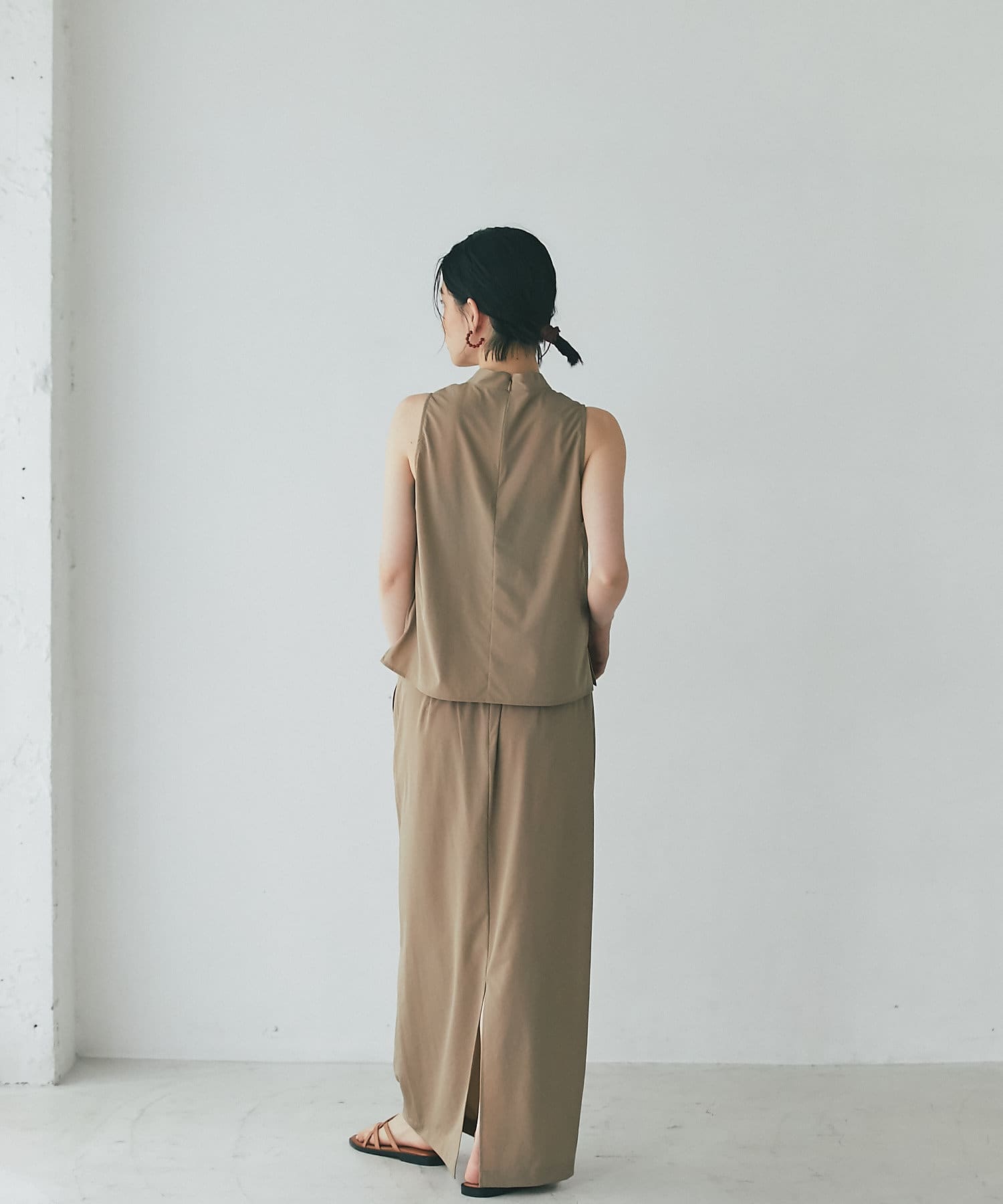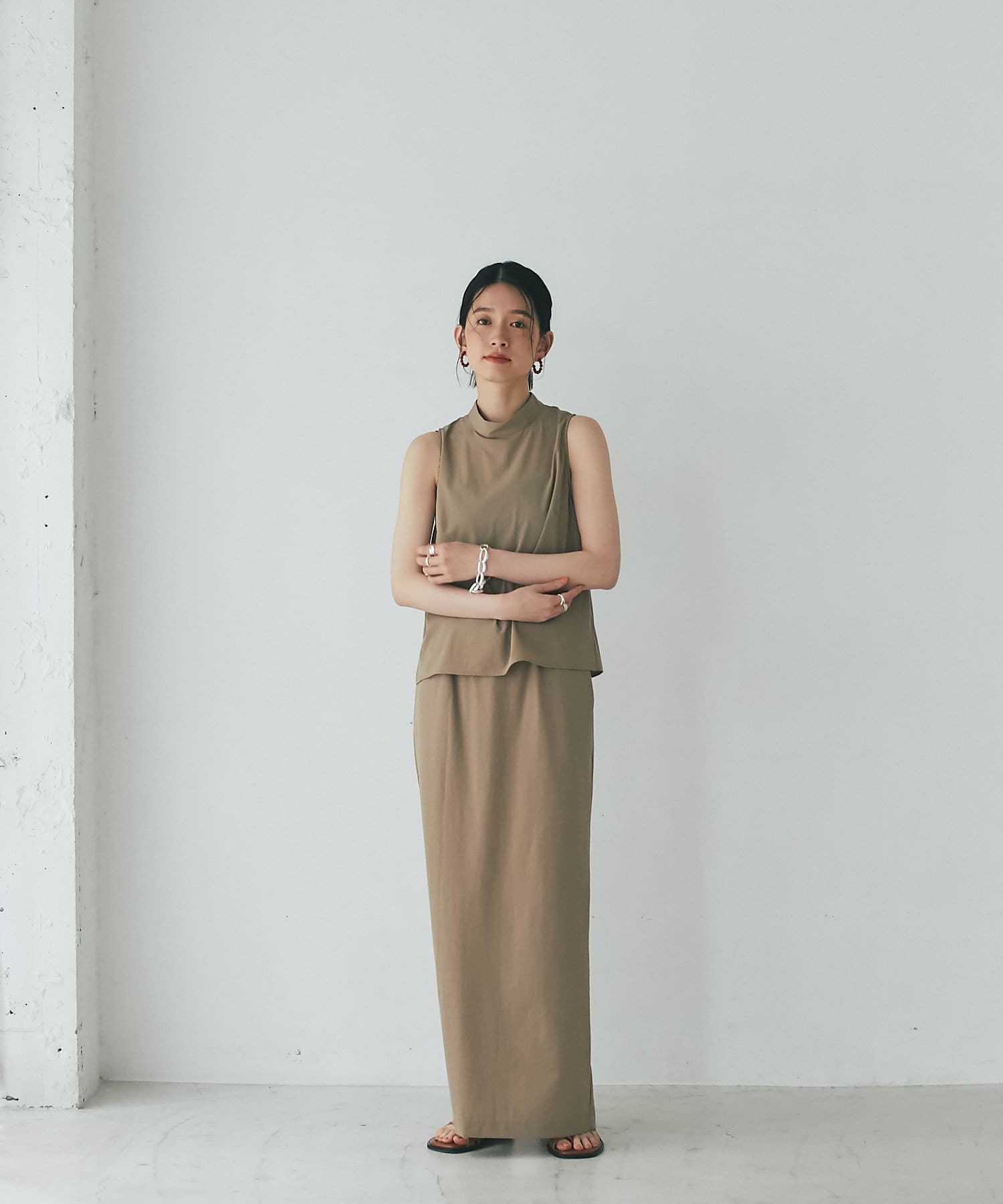 カジュアルなTシャツとはもちろん、同じ素材のハイネックブラウスとのセットアップでの着用が一押しです。