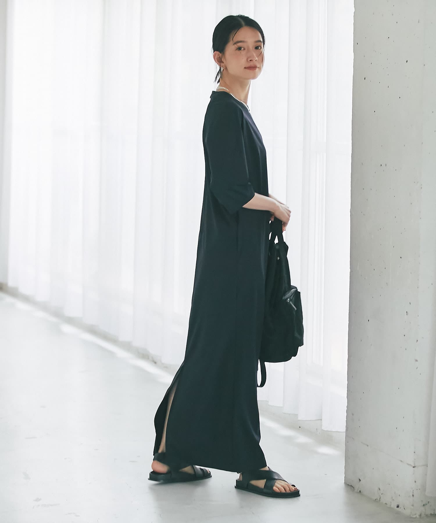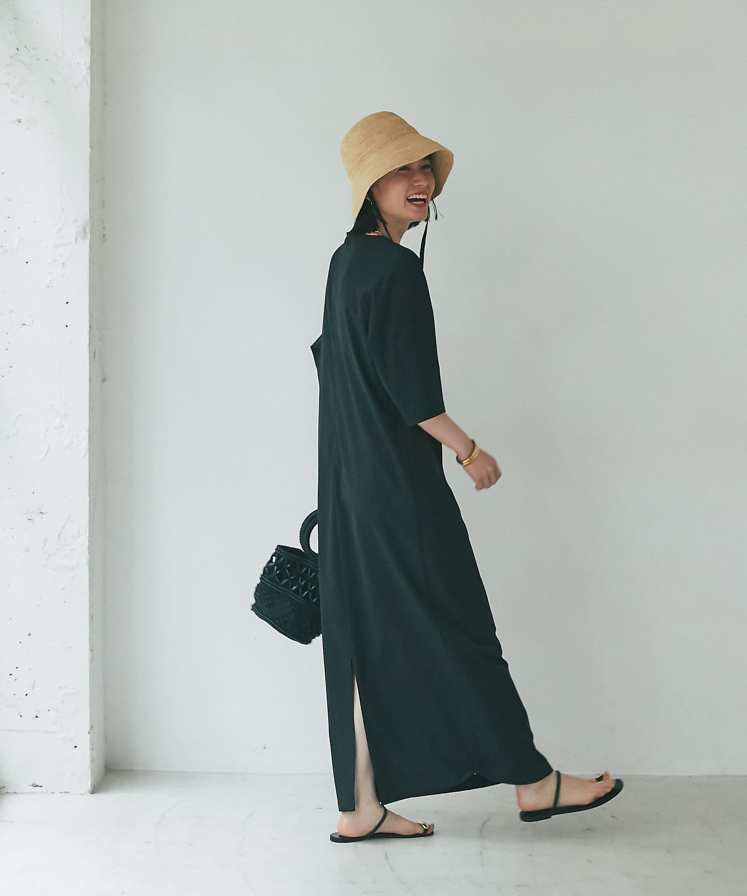 1枚でスタイリングが完成する5分袖丈のワンピースが登場。