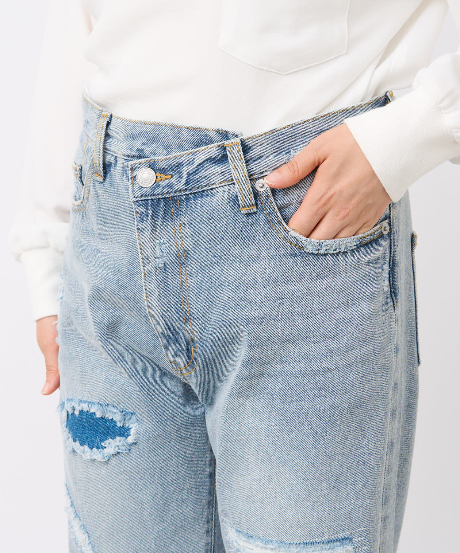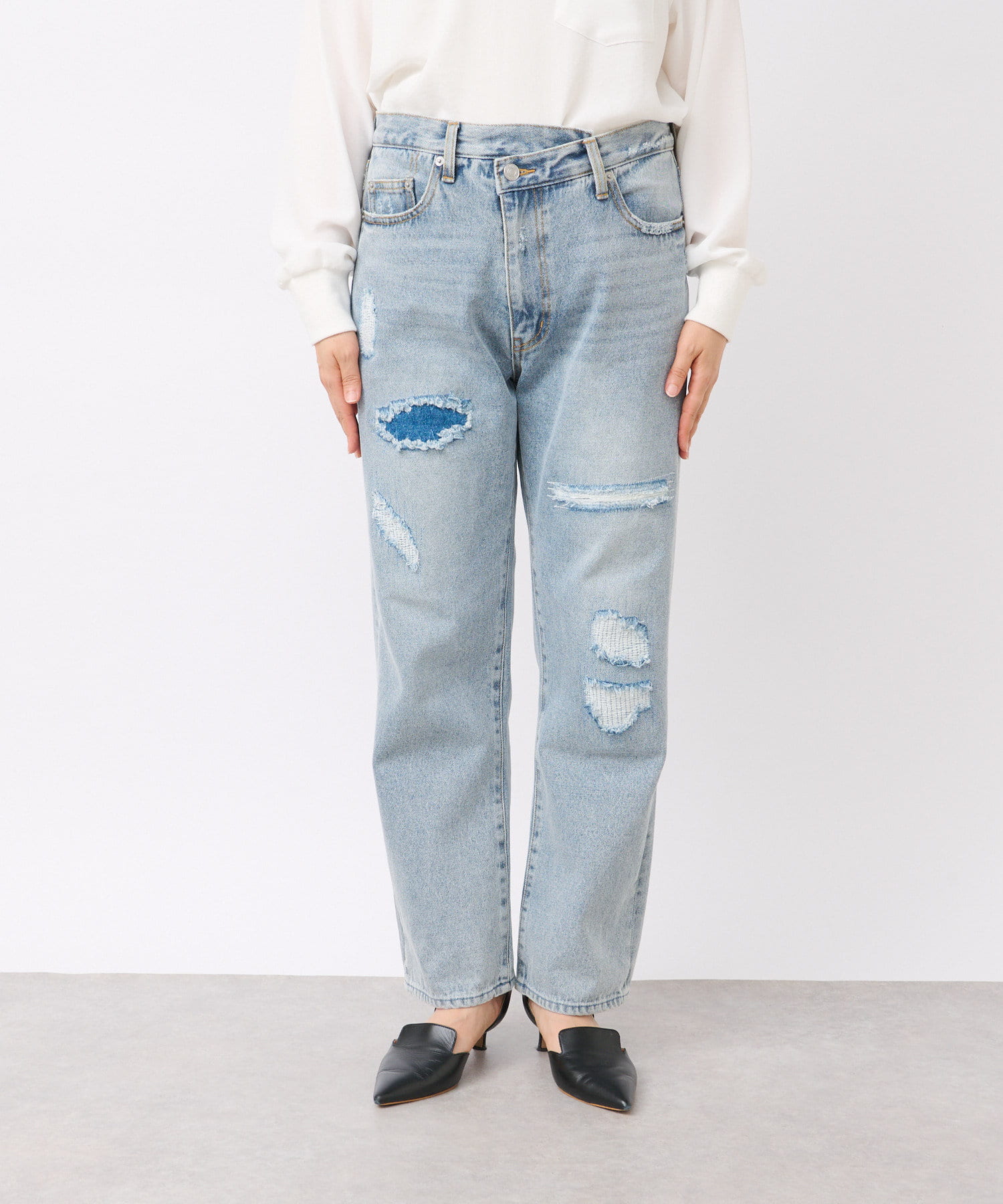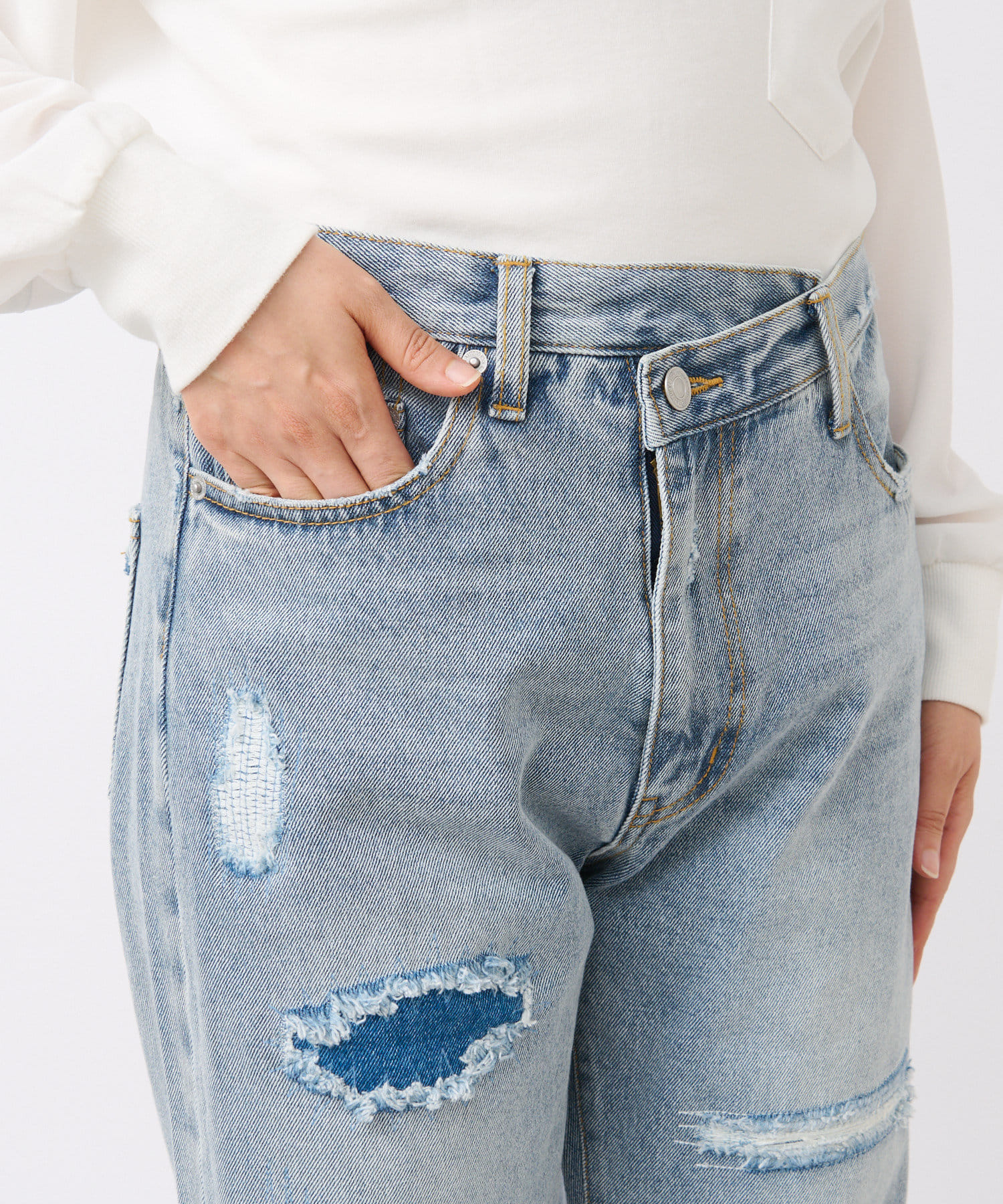 リペアデザインが目を惹くストレートシルエットのデニム。