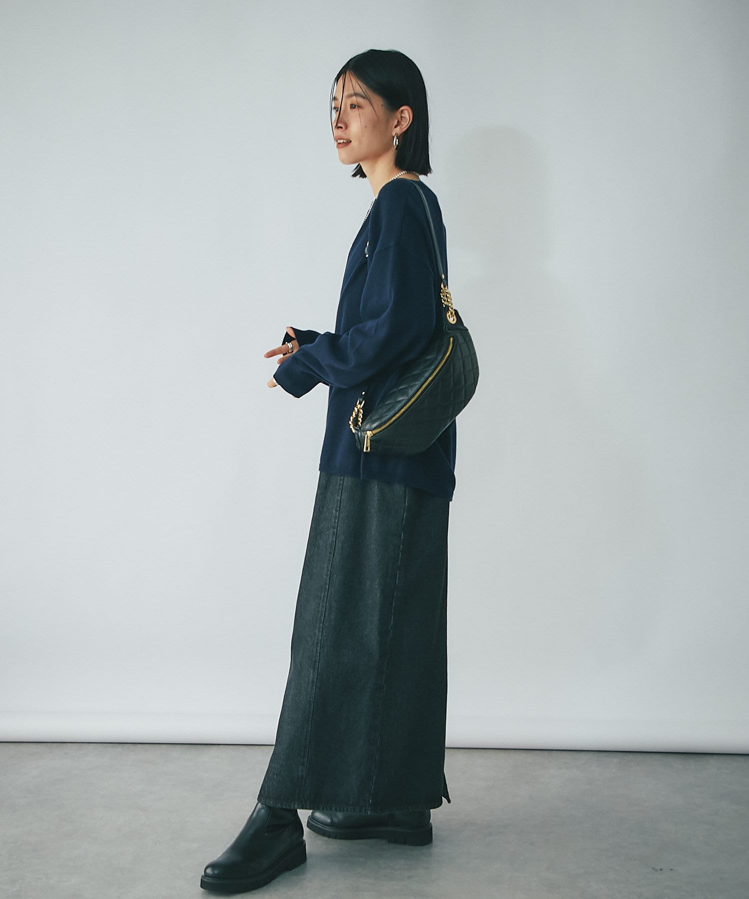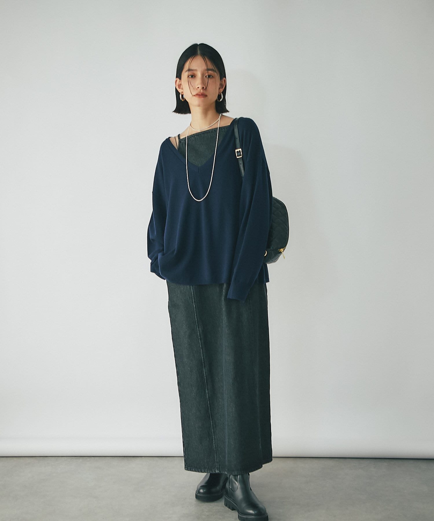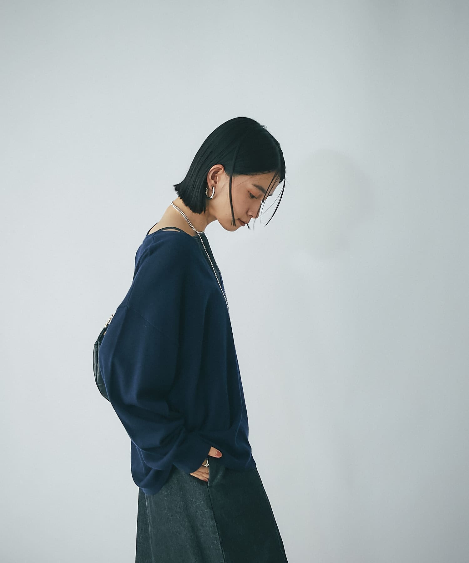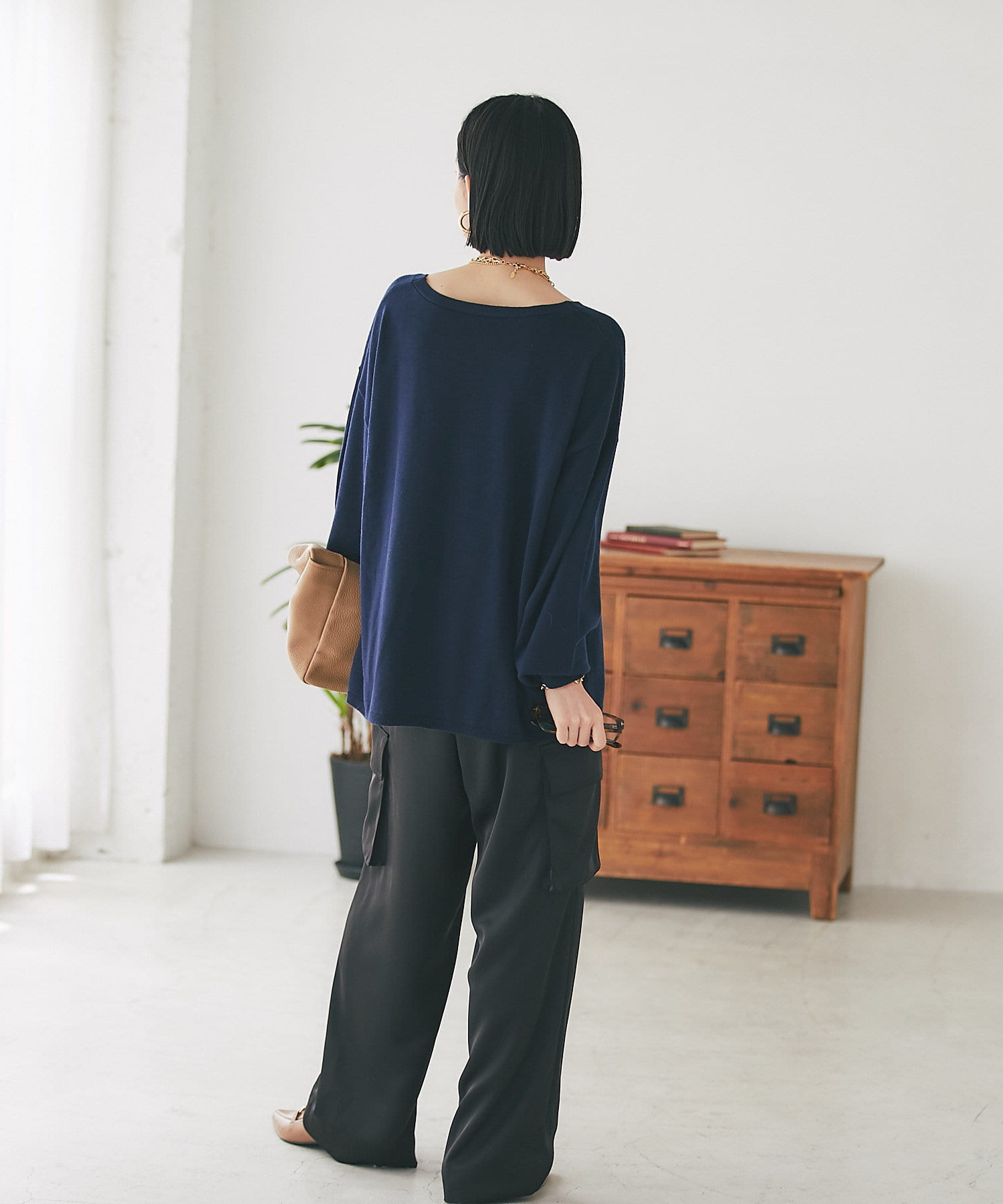 リラックスムード漂うデザインのため、ドレッシーなスカートやワンピース、パンツ合わせのバランスも大人な着こなしで素敵です。