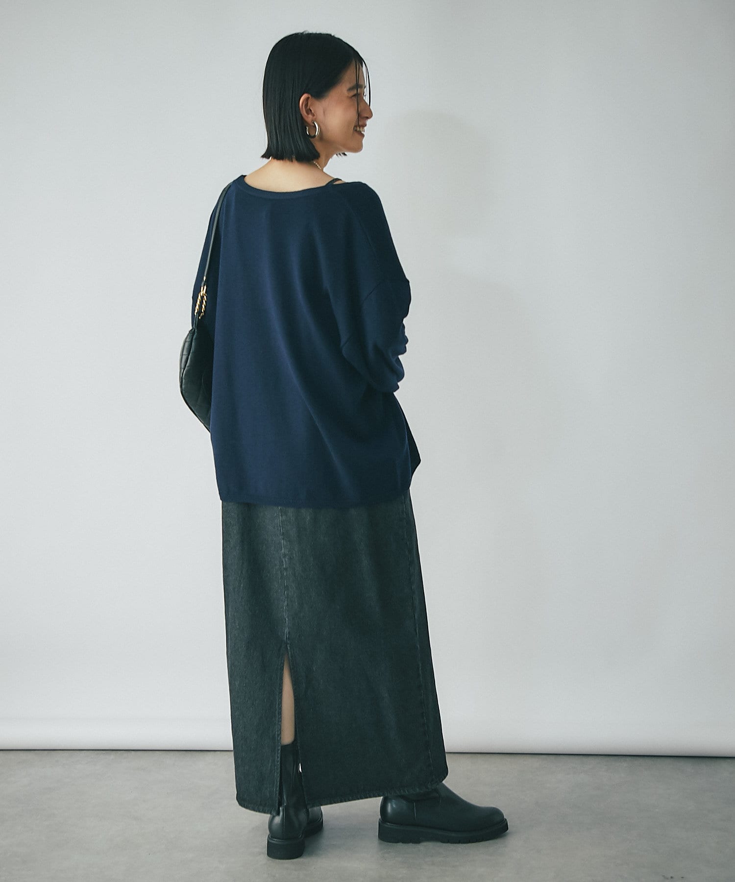 合わせるインナーやボトムでかなり雰囲気を変えて楽しんで頂ける、長く愛用できるニットです。