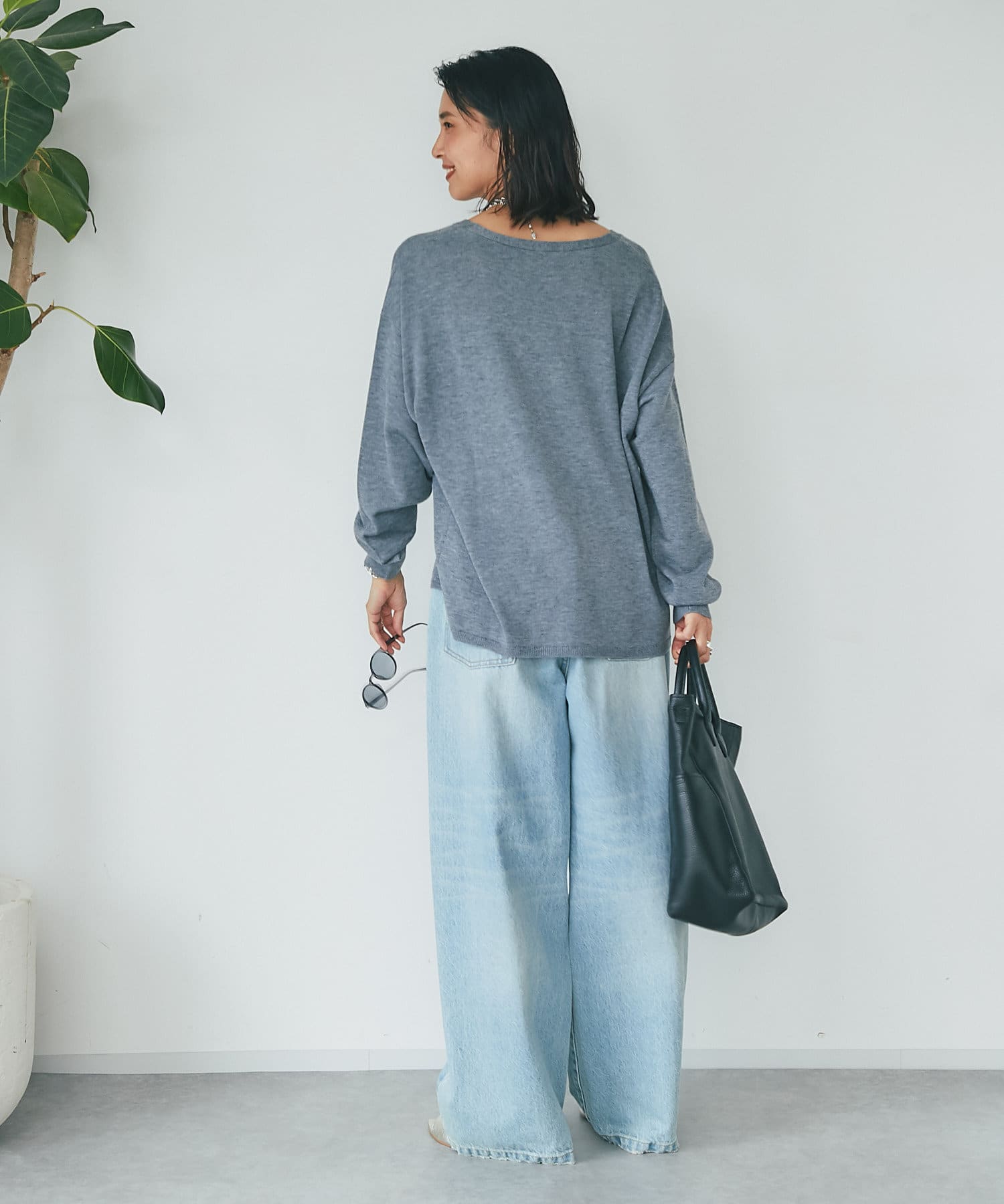 ゆったりしたサイズなので、シンプルにデニム合わせもおすすめです。