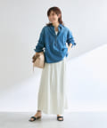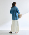 ボタンは胸下まで開けていただける仕様。開ける位置によって様々な印象で着こなしていただけるデザインです。