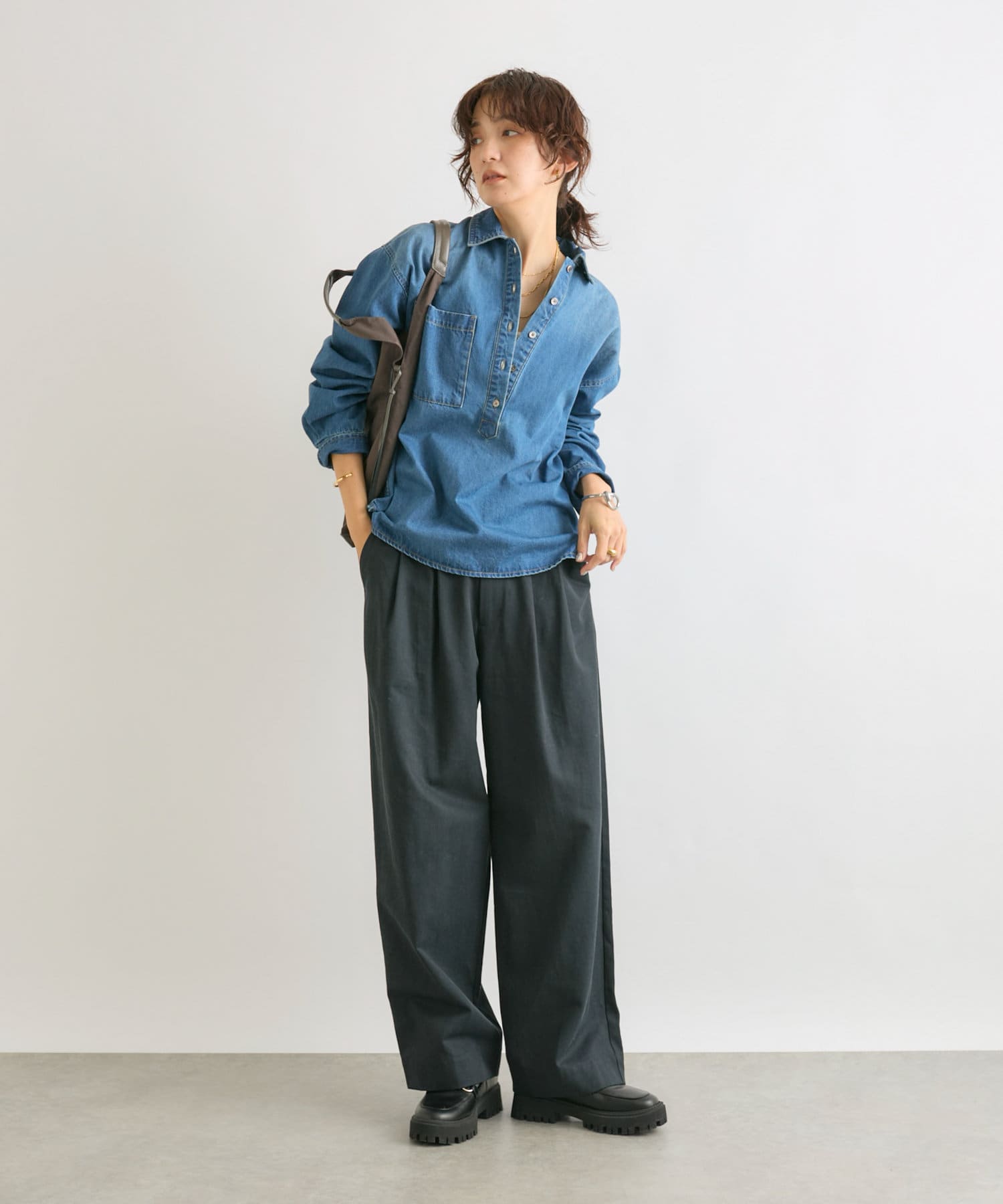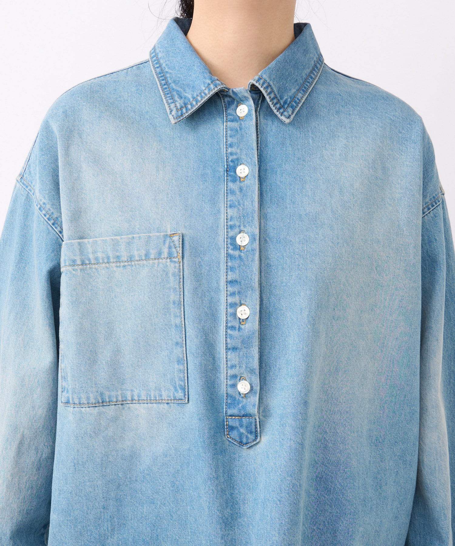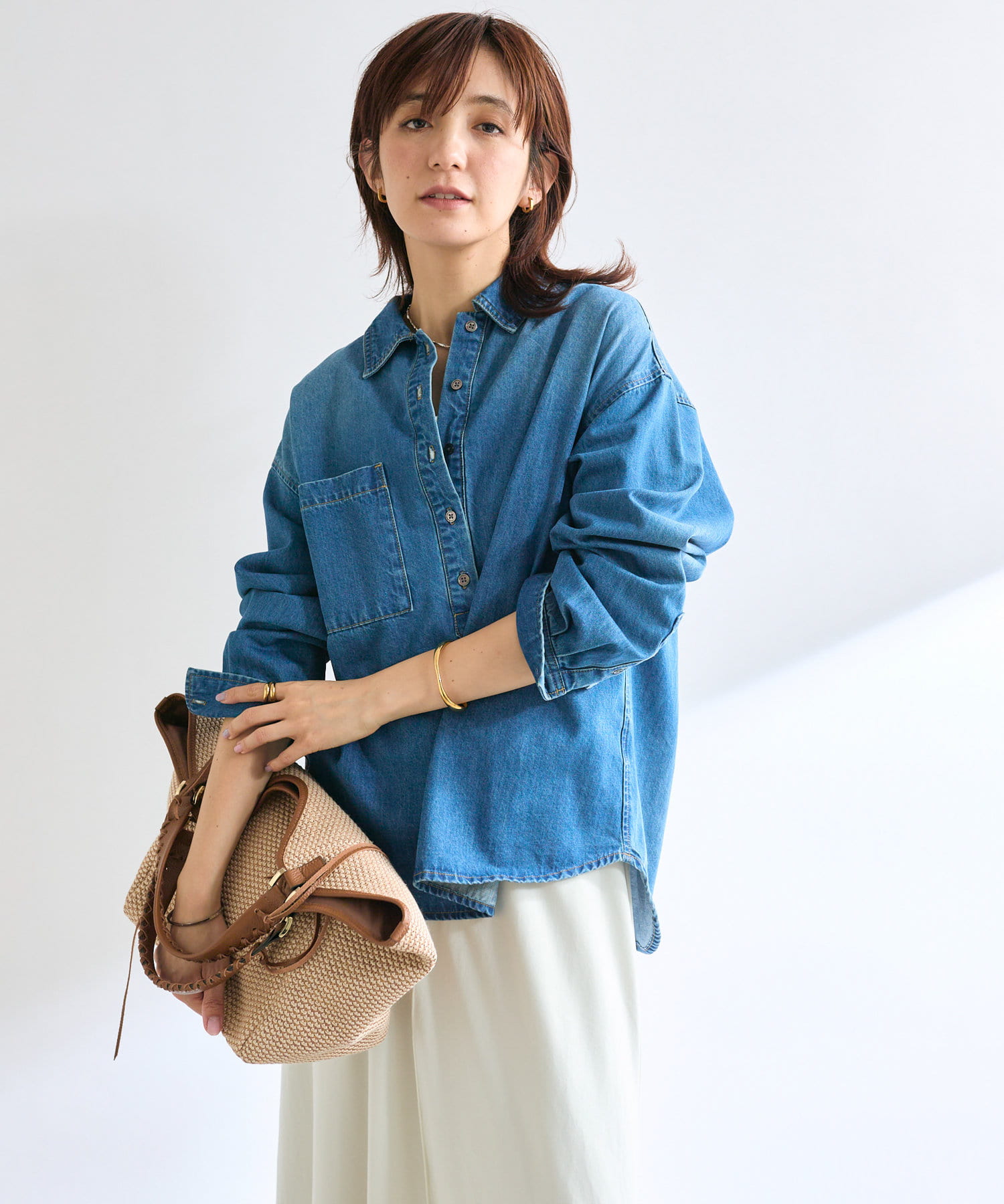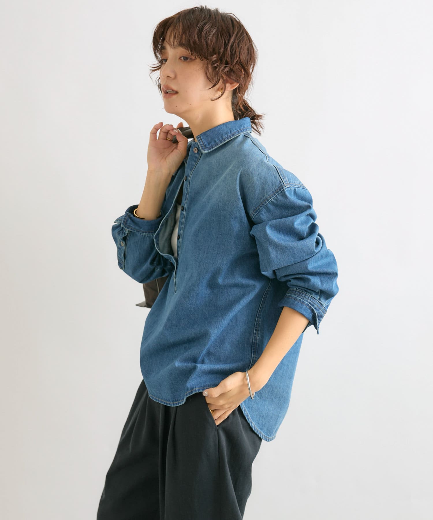 こなれ感溢れるプルオーバータイプのデニムシャツ