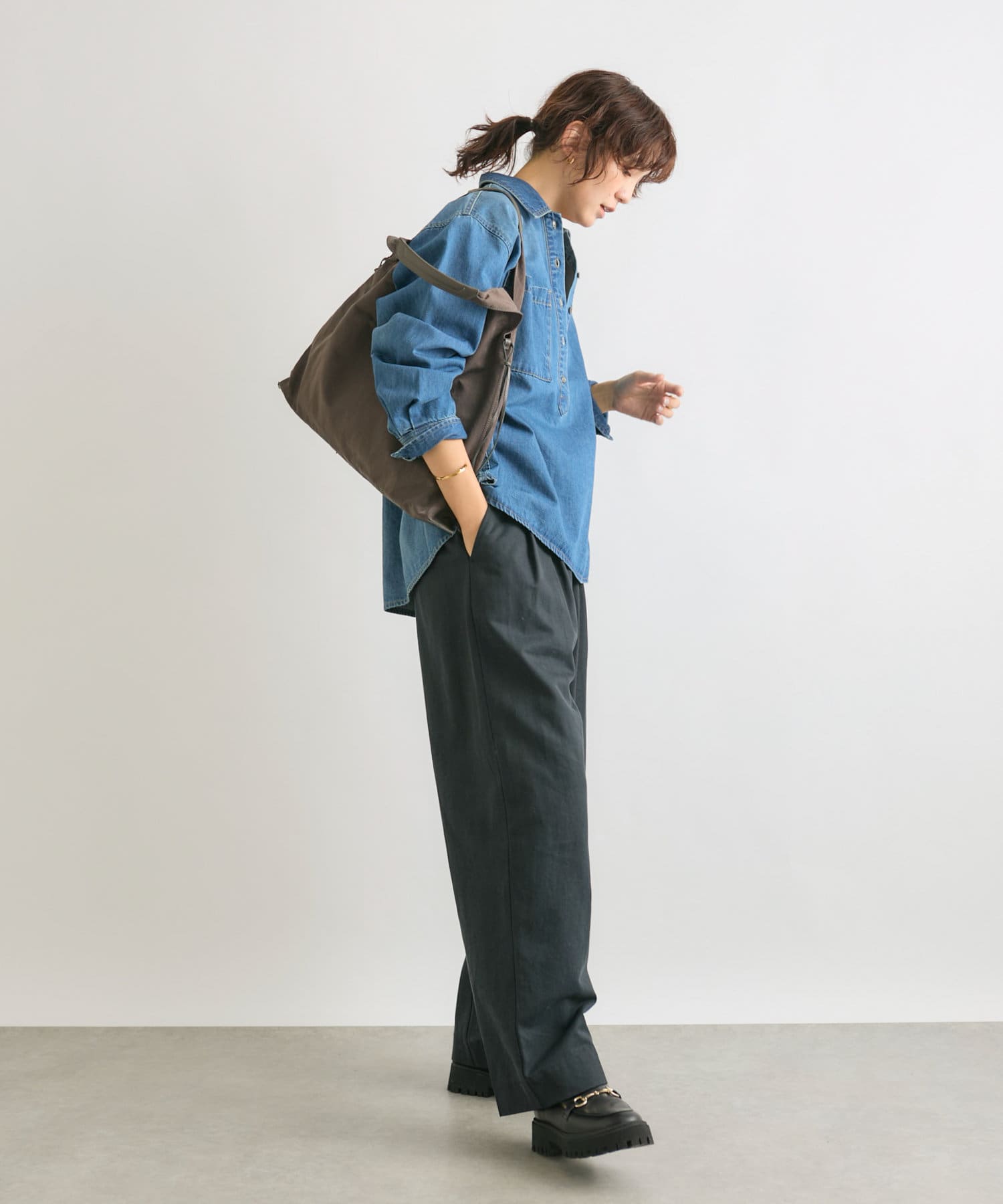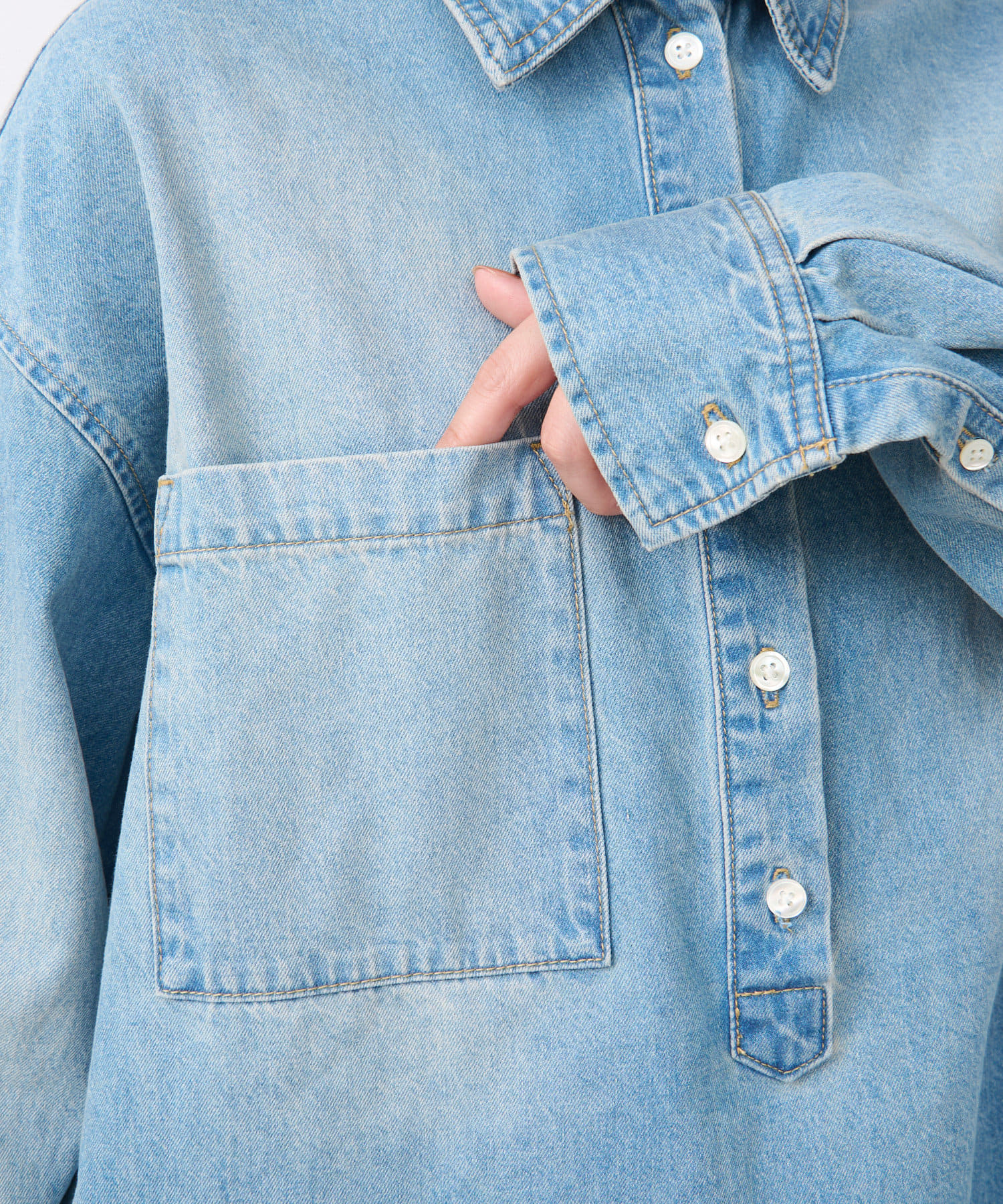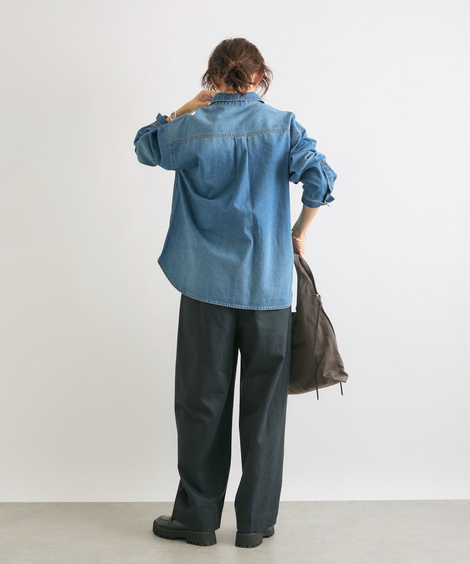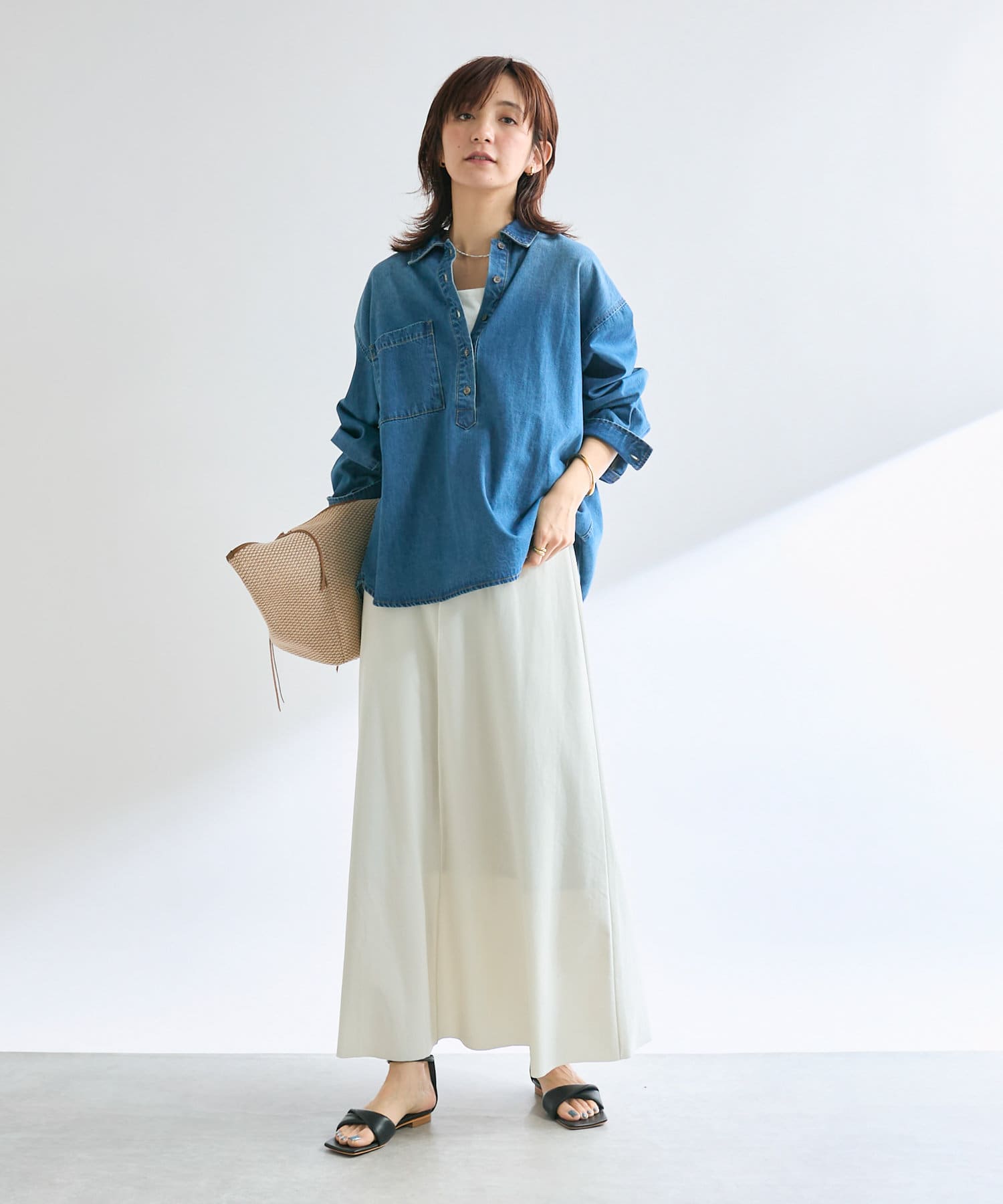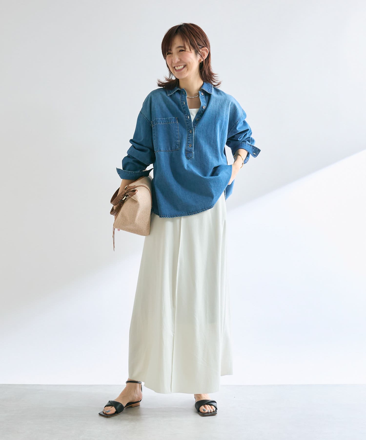 こなれ感溢れるプルオーバータイプのデニムシャツ