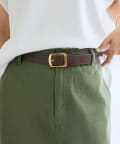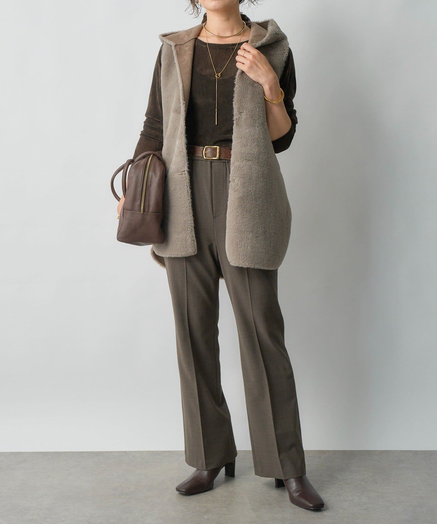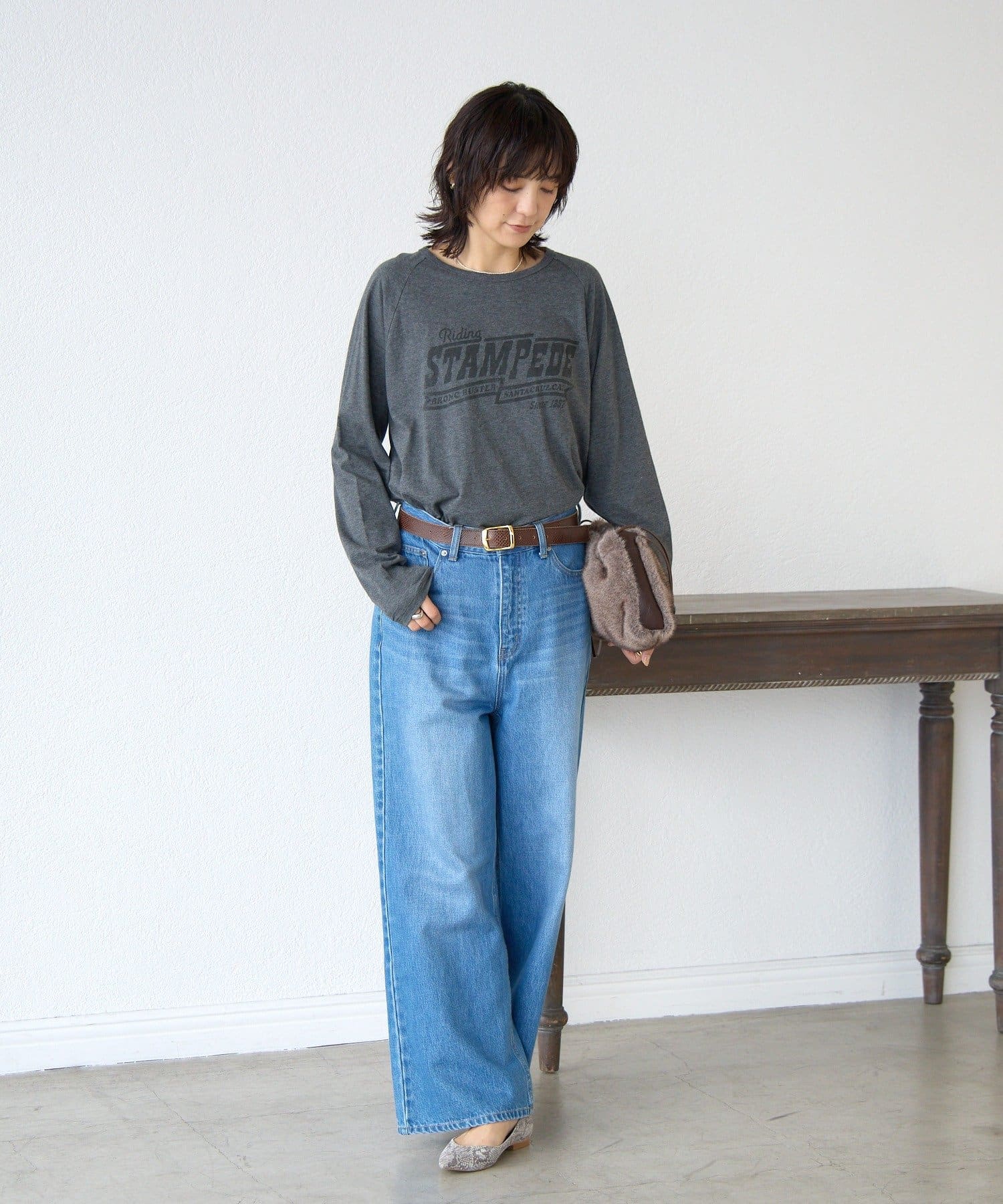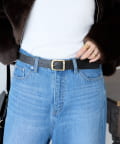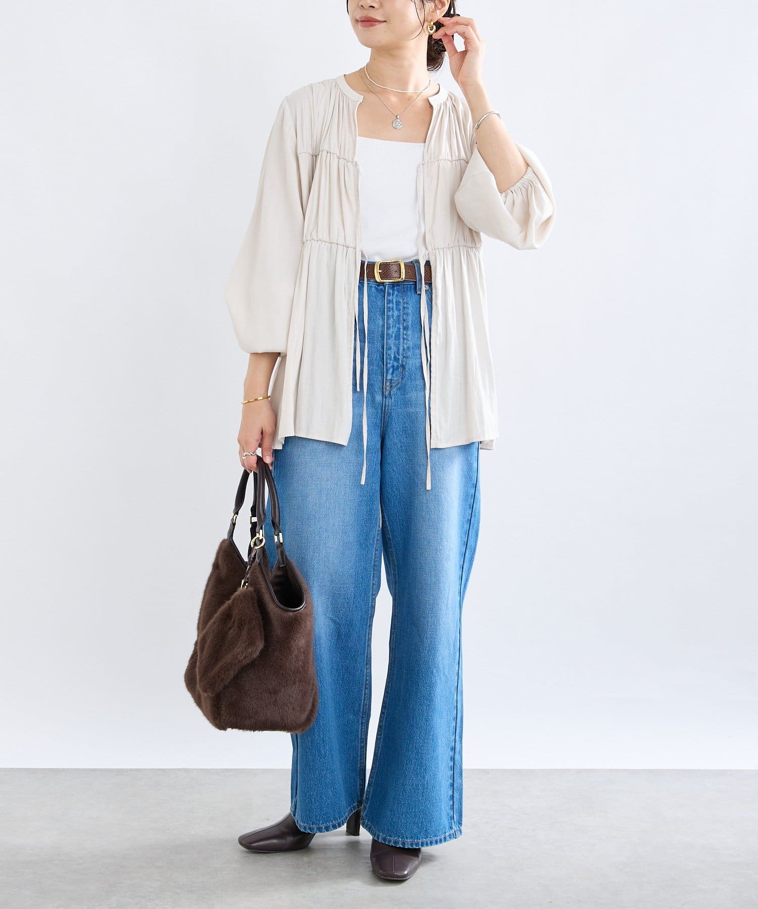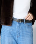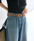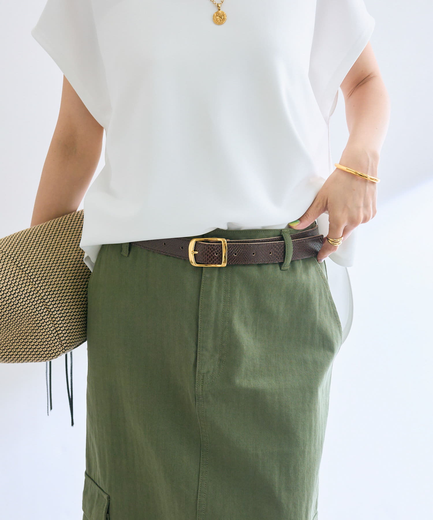 穴数多めになっており、幅広いウエスト位置のボトムと合わせていただきやすいアイテム。