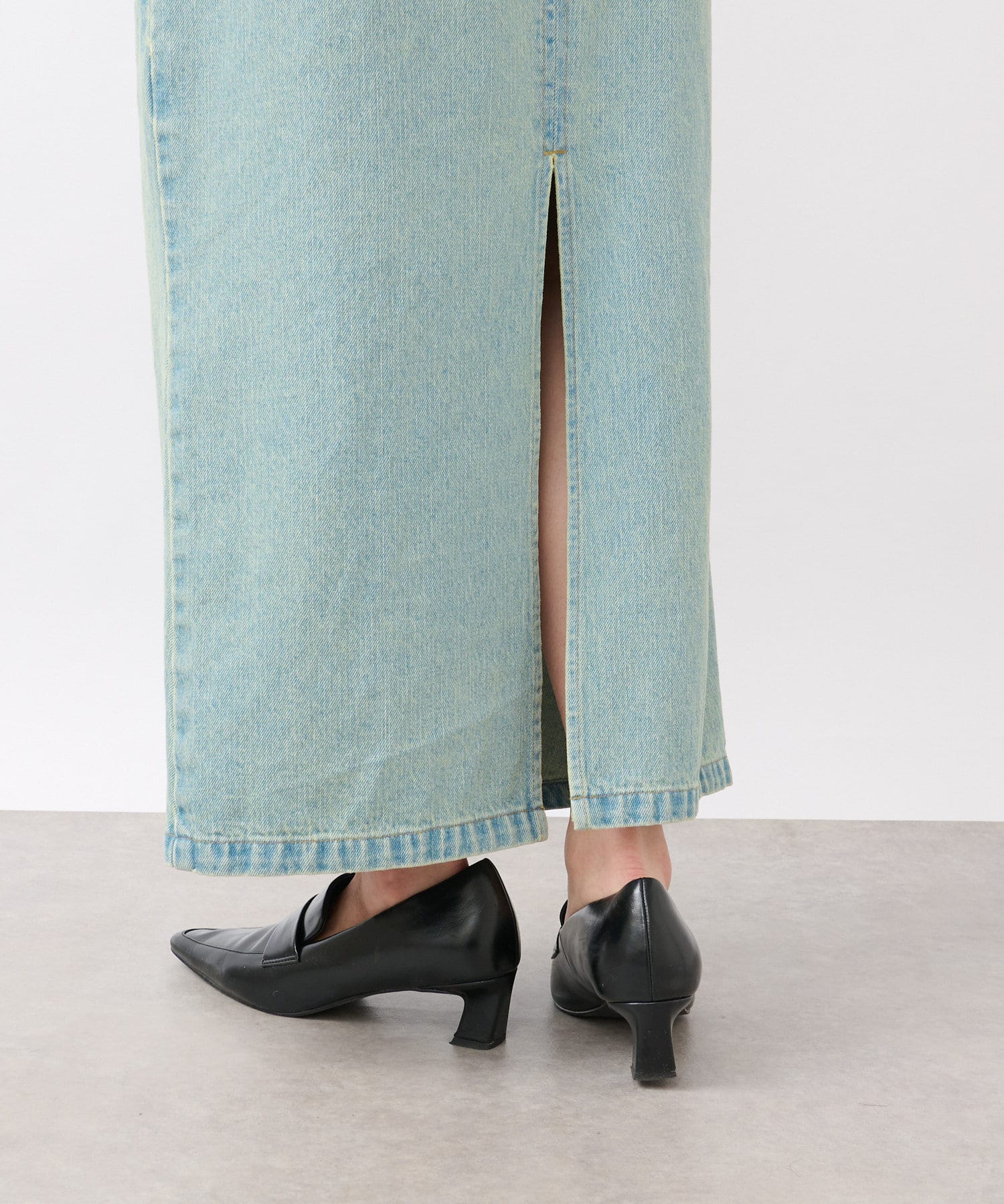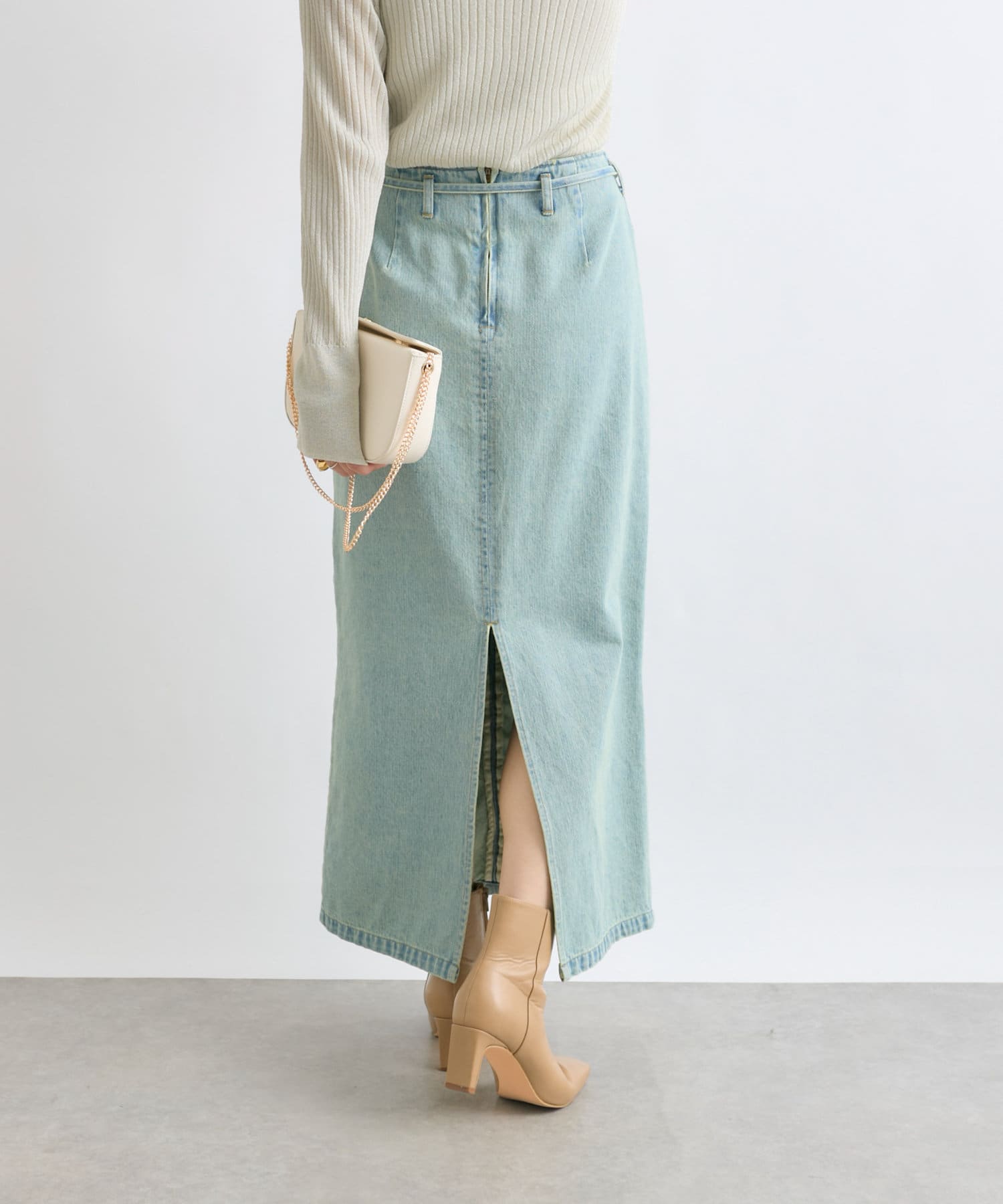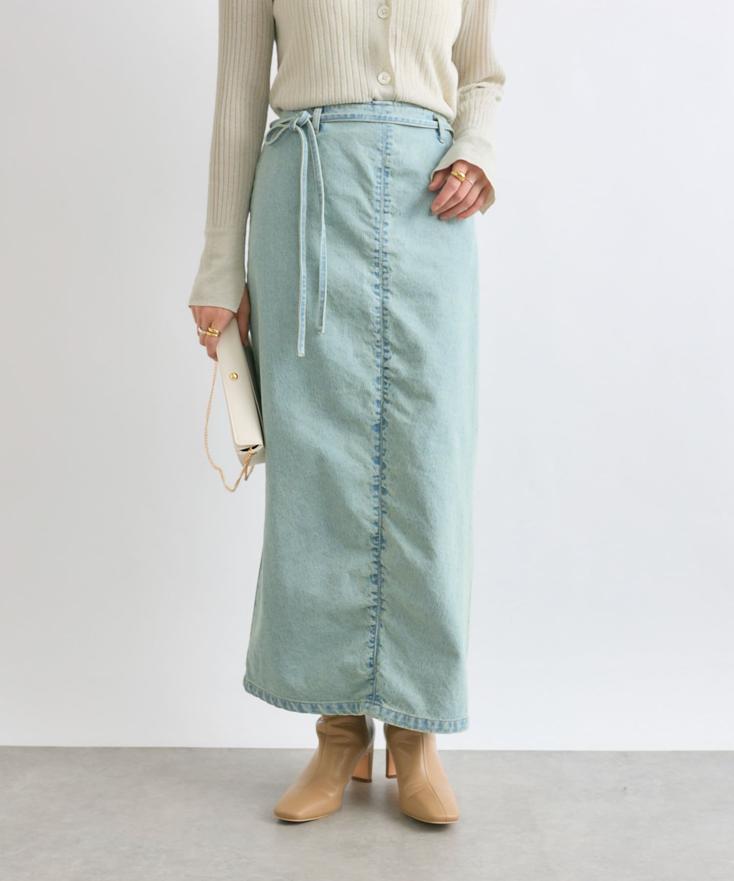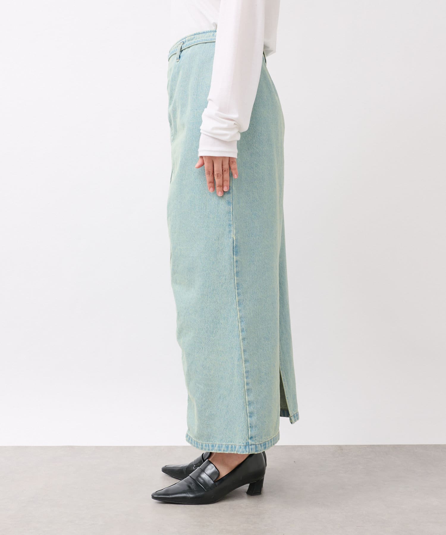 すっきりとしたIラインのデニムスカート。