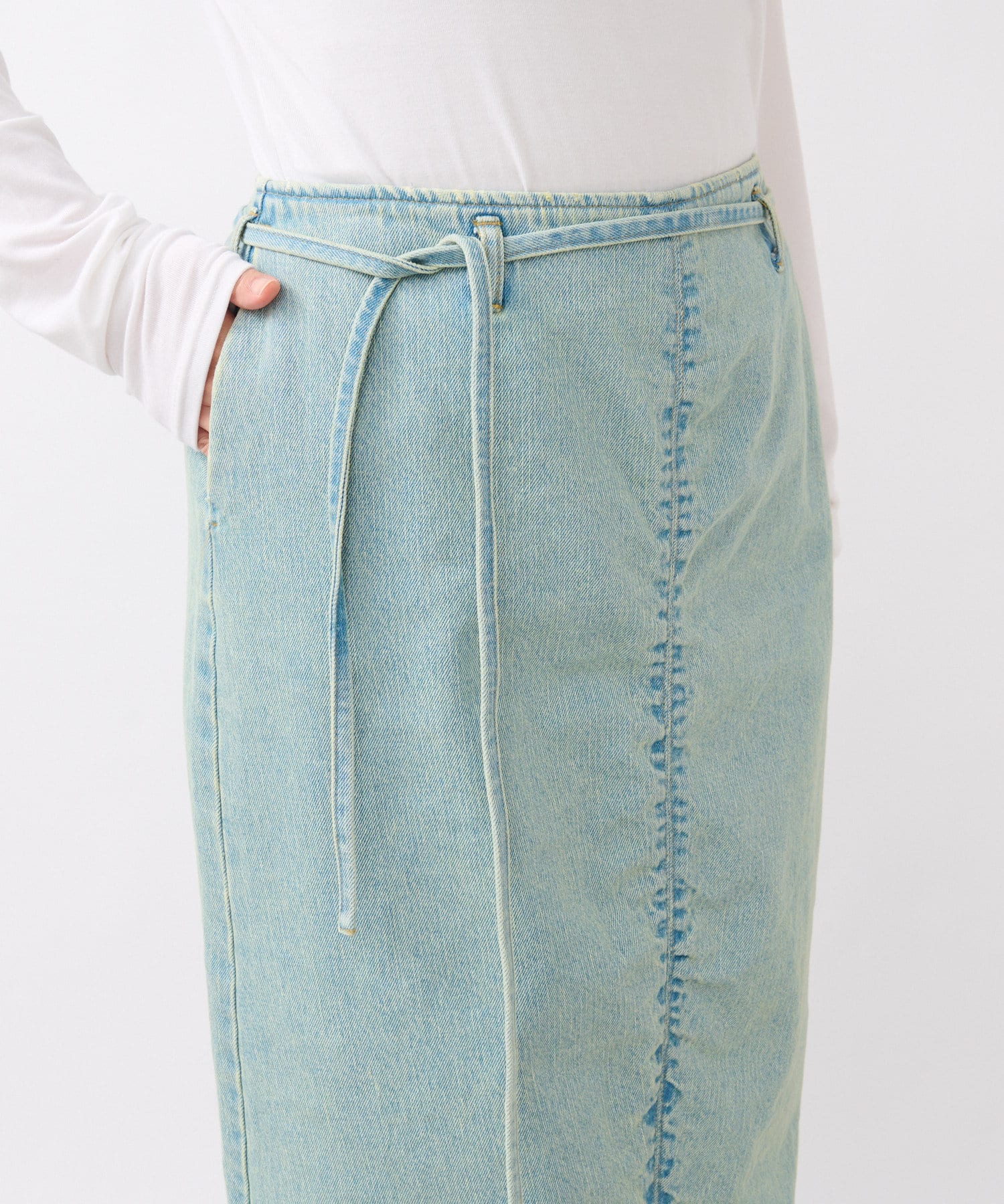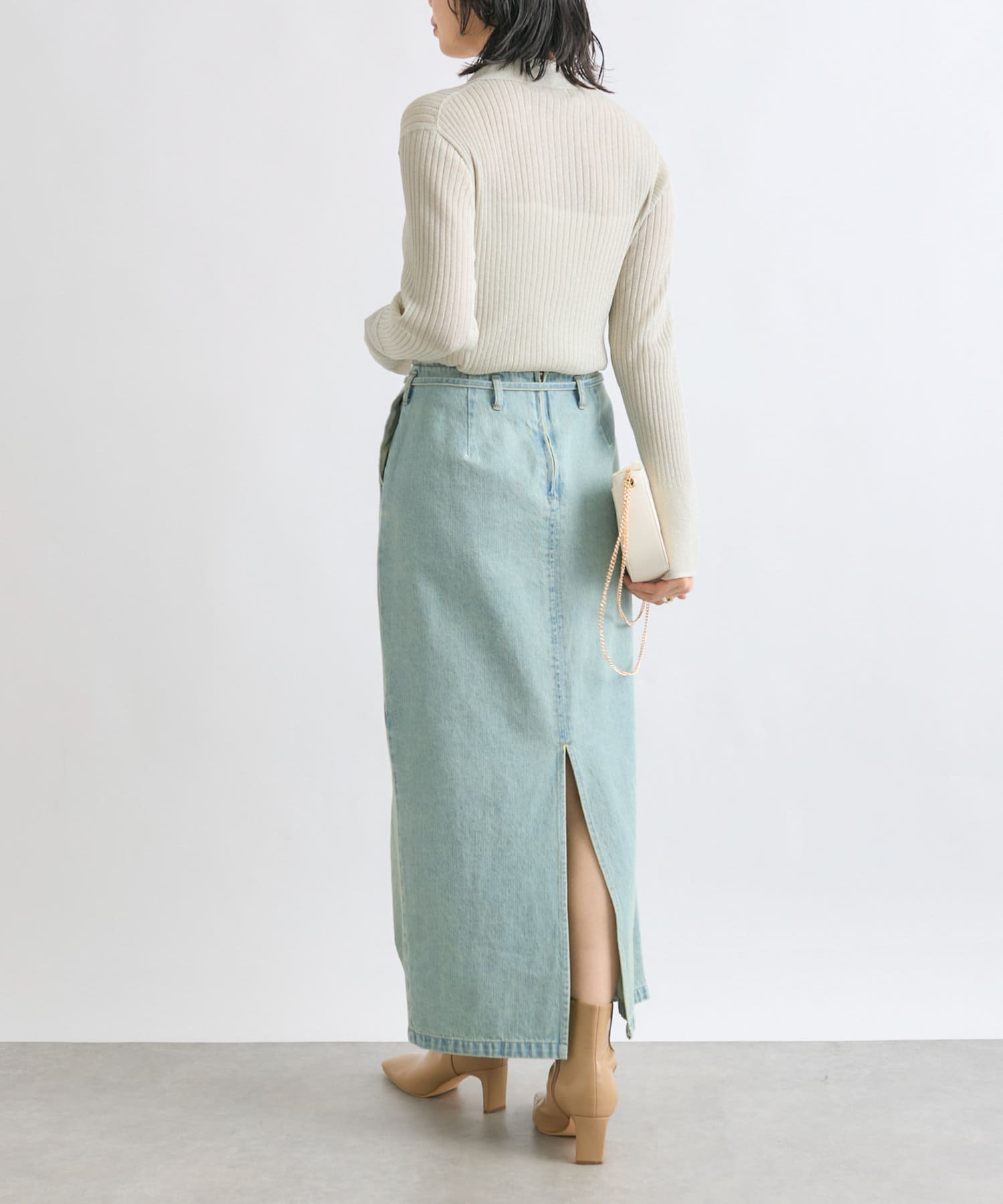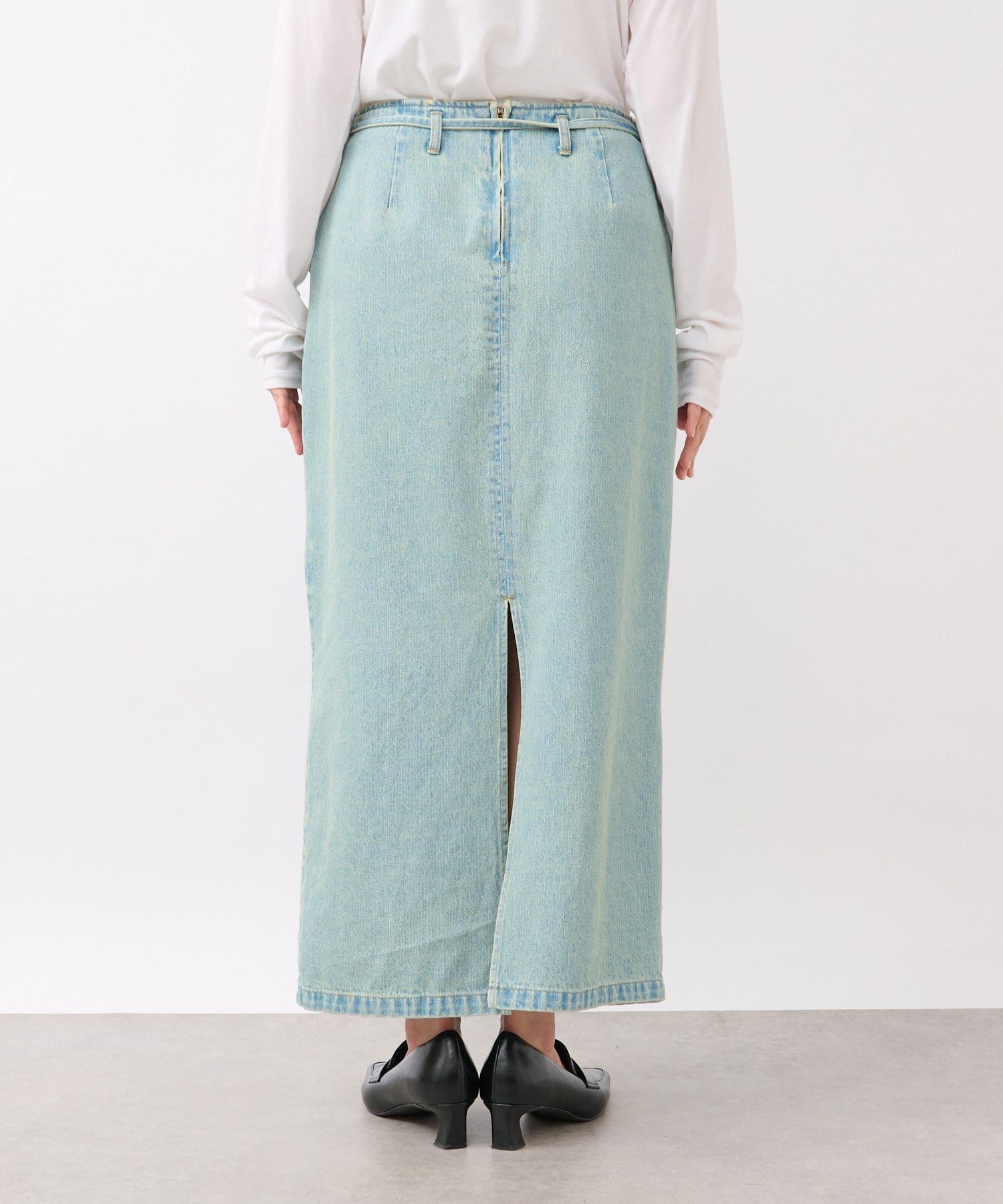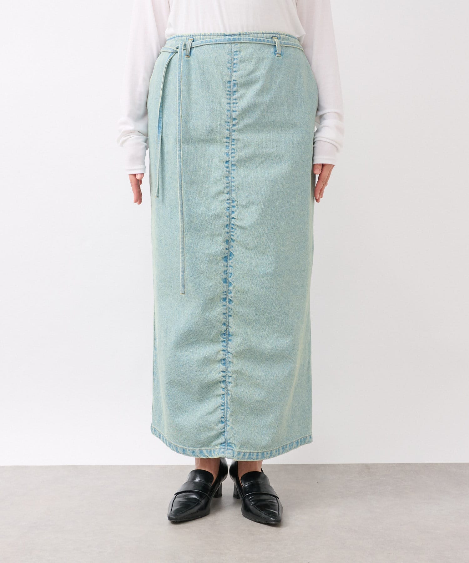 すっきりとしたIラインのデニムスカート。