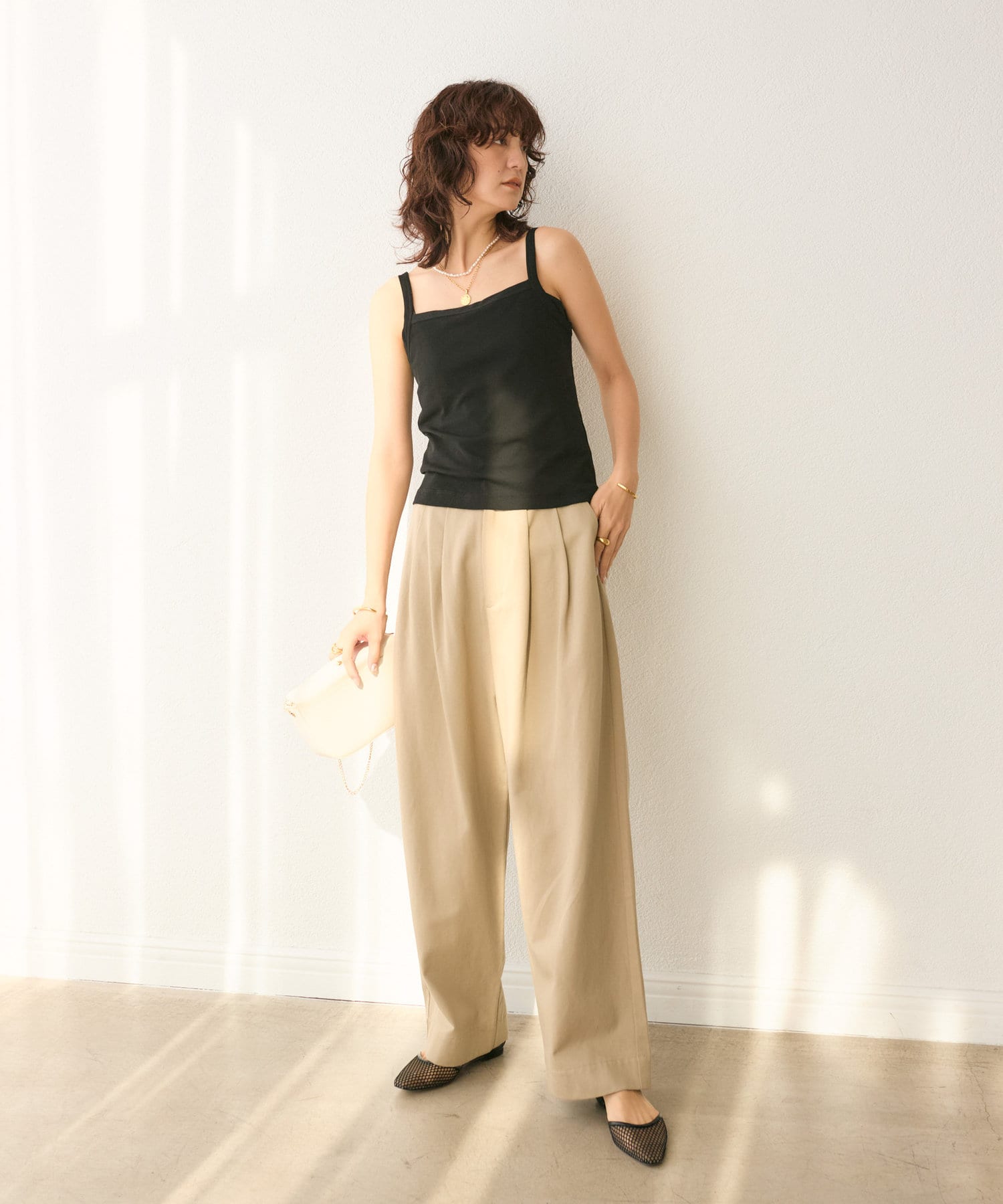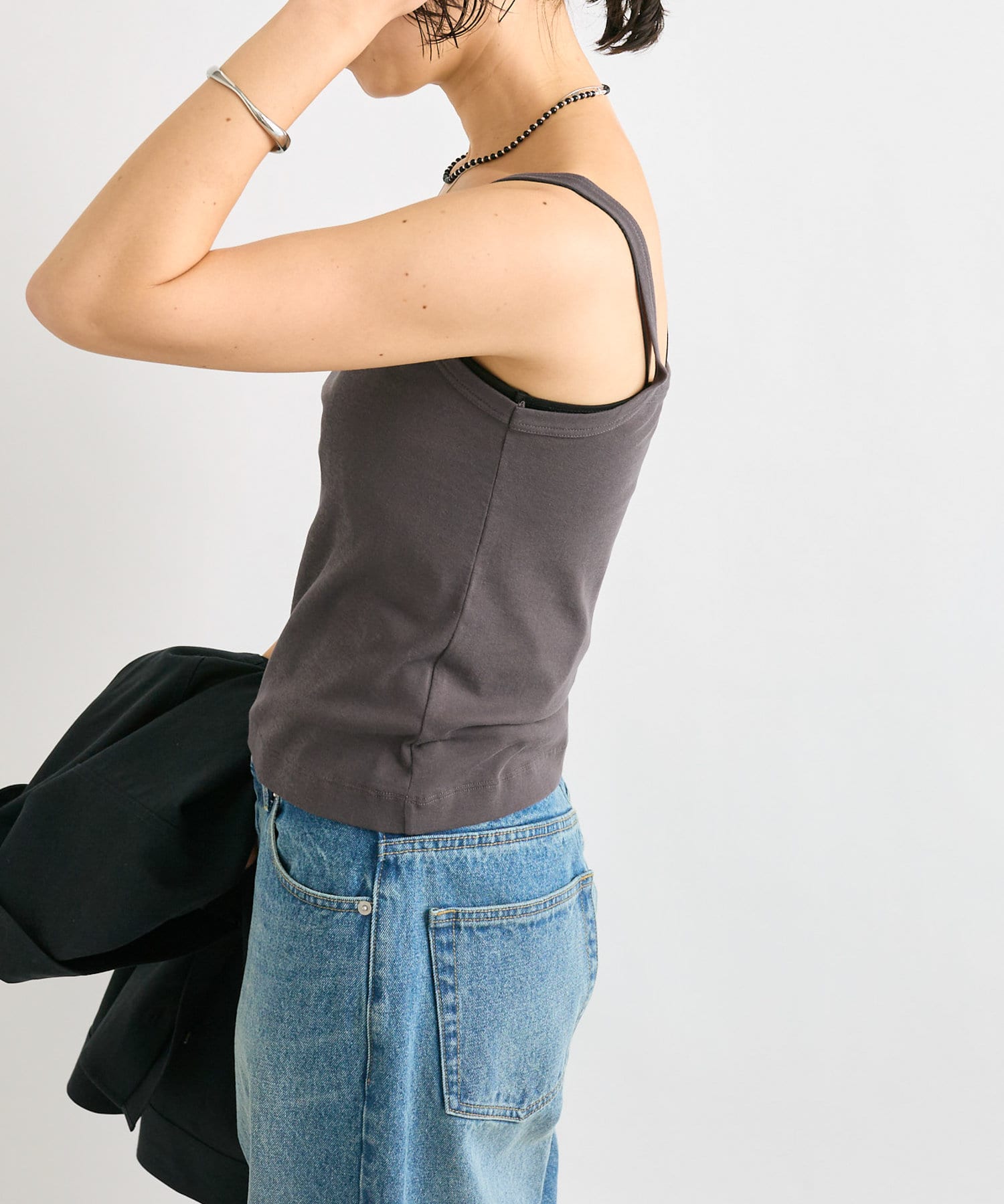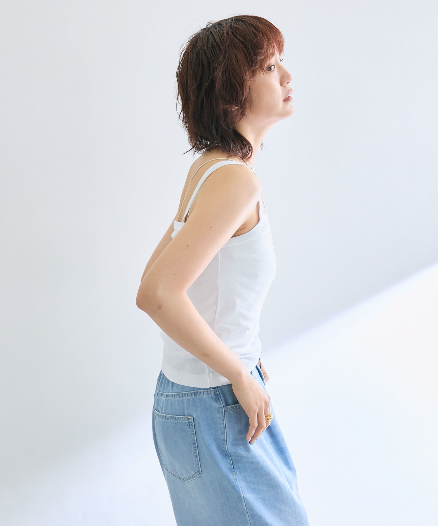 まっすぐとした首元のラインで、すっきりとしたデコルテラインがポイントのキャミソール。