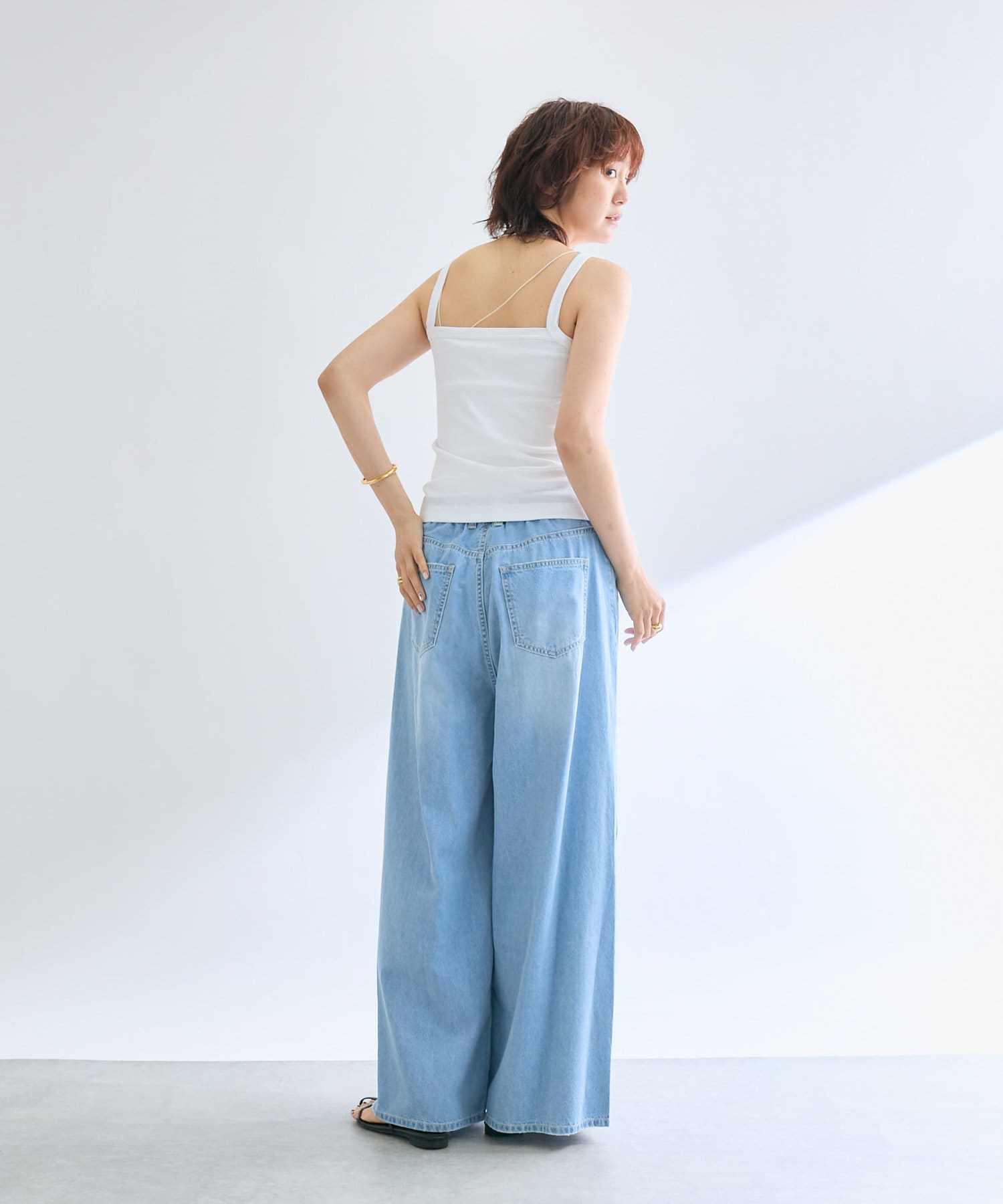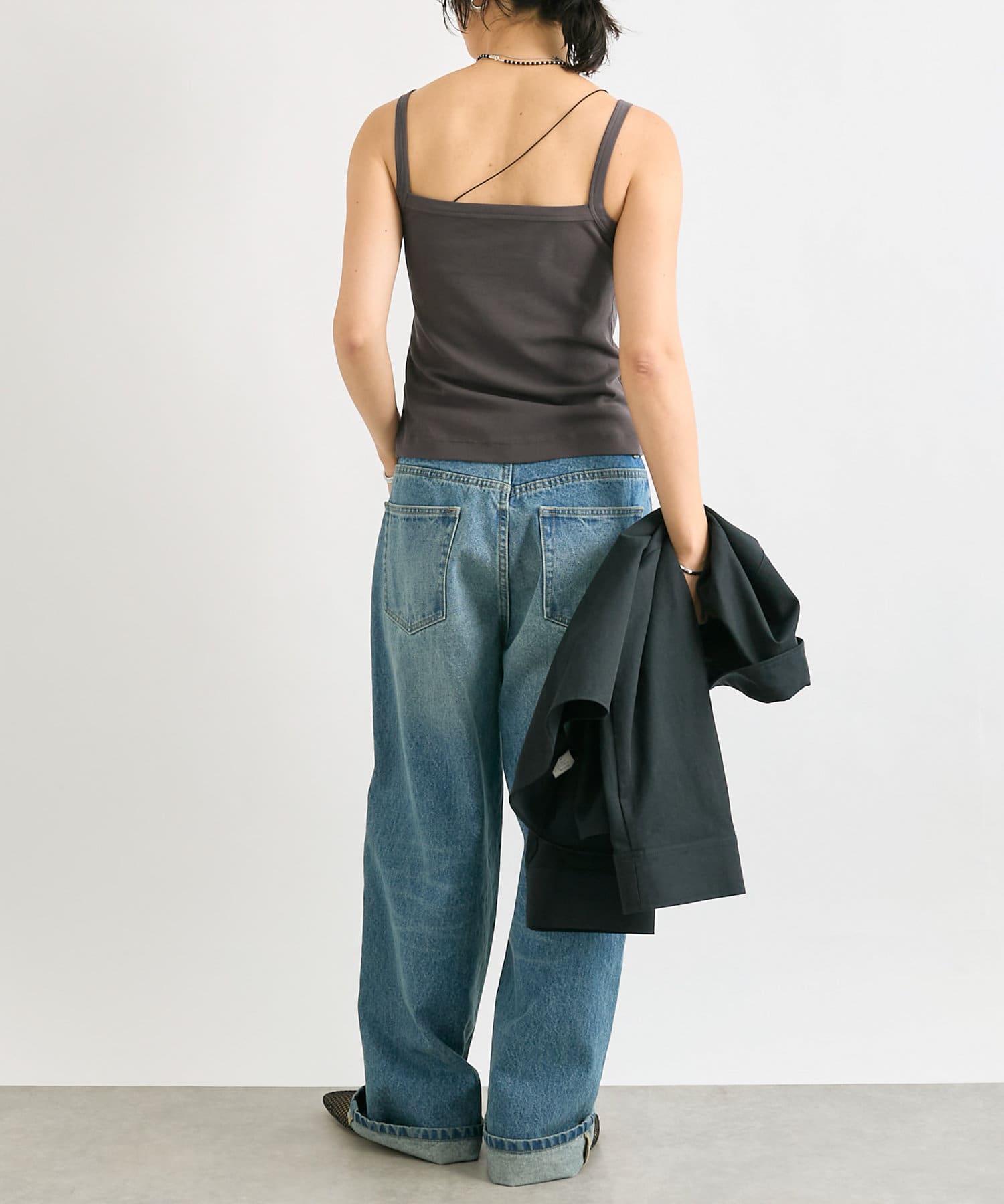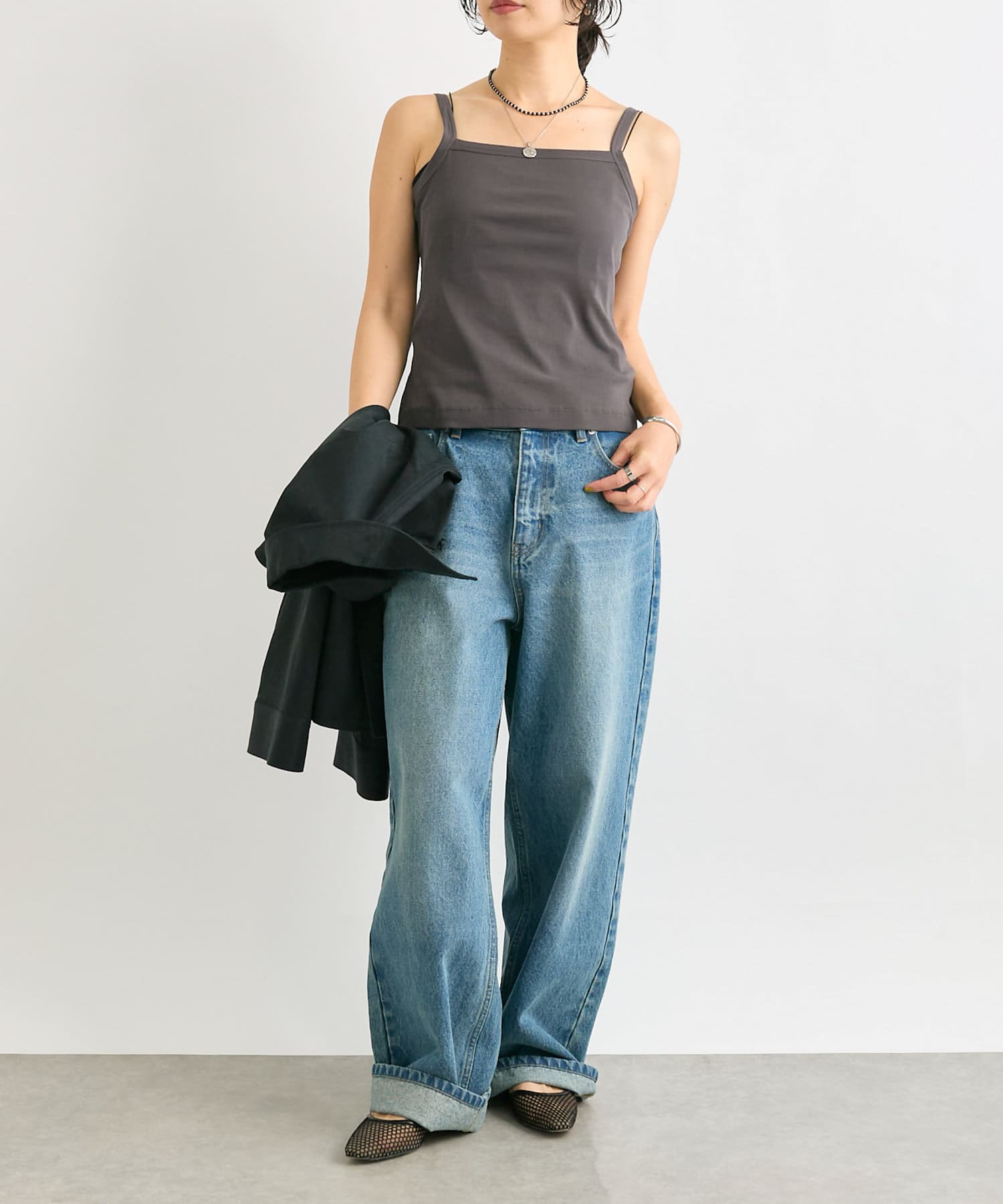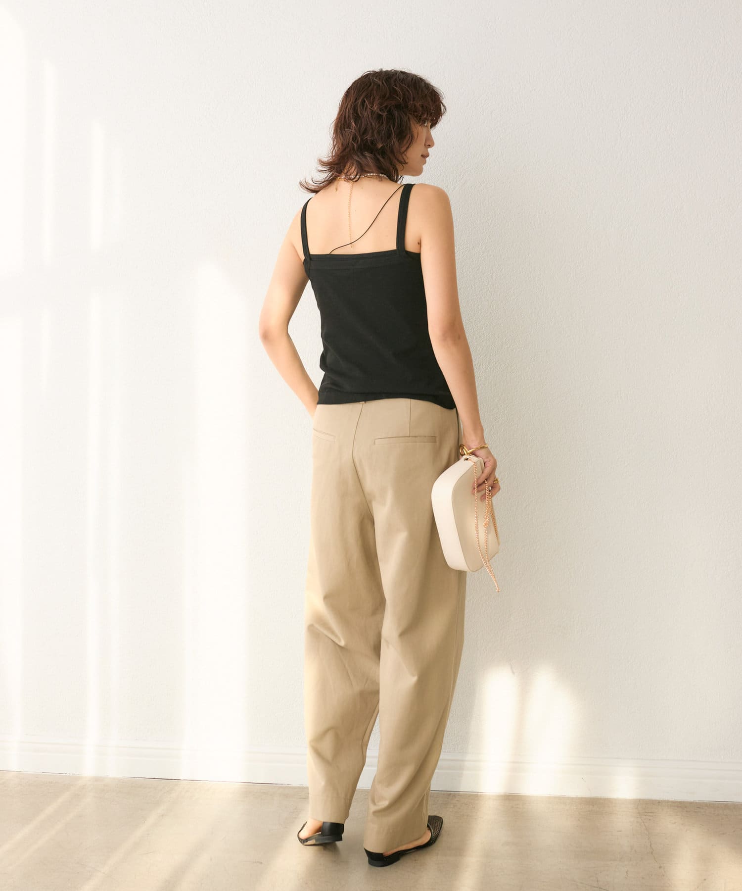 まっすぐとした首元のラインで、すっきりとしたデコルテラインがポイントのキャミソール。