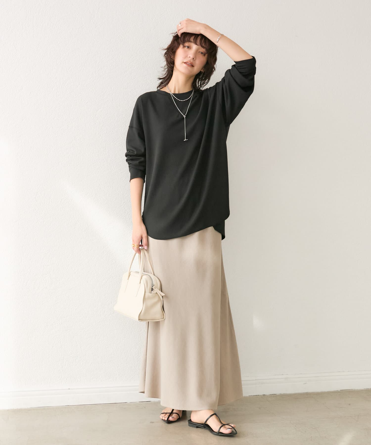 シンプルなデザインなのでコーディネートに取り入れやすく、様々な印象が楽しめる一品。