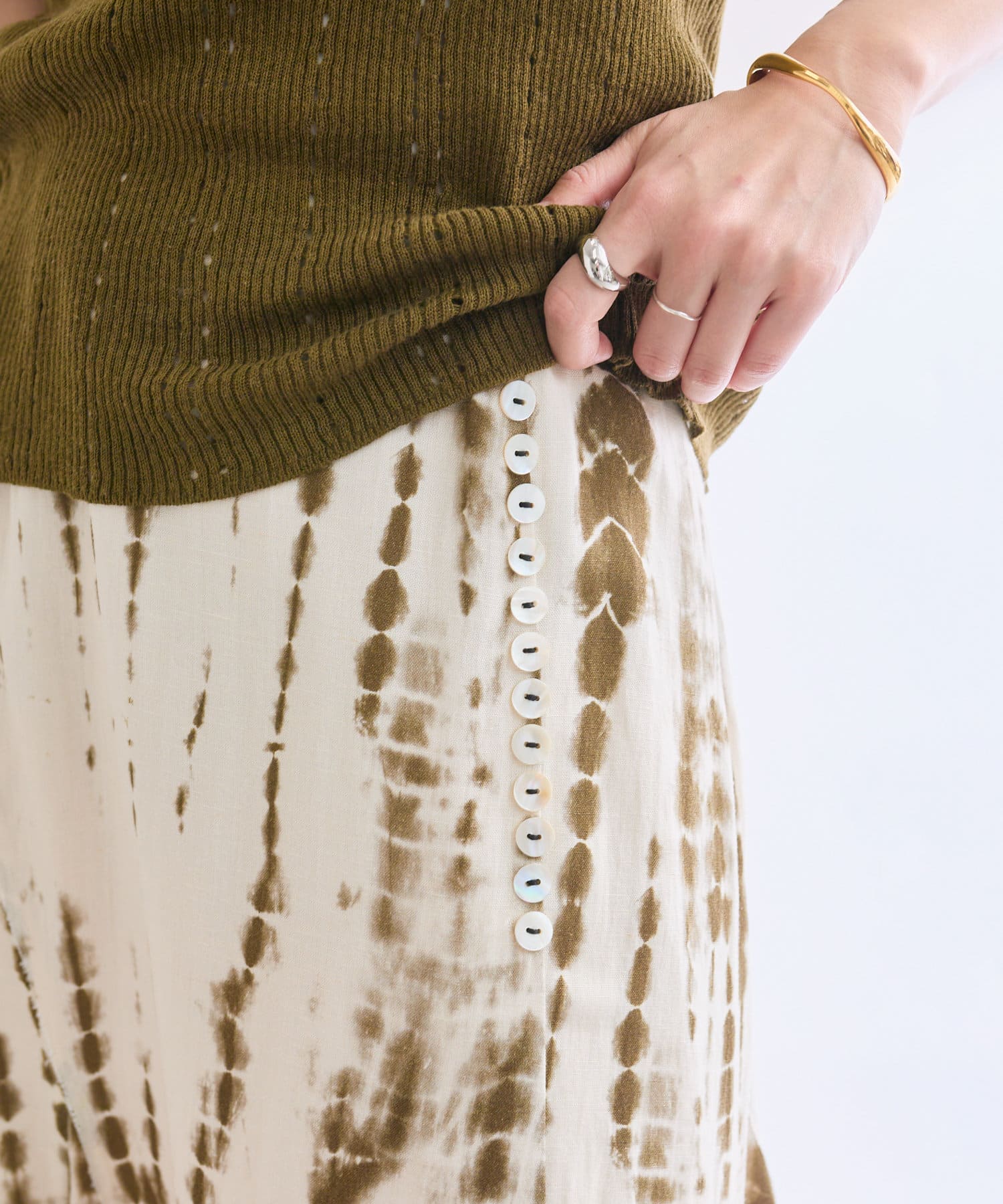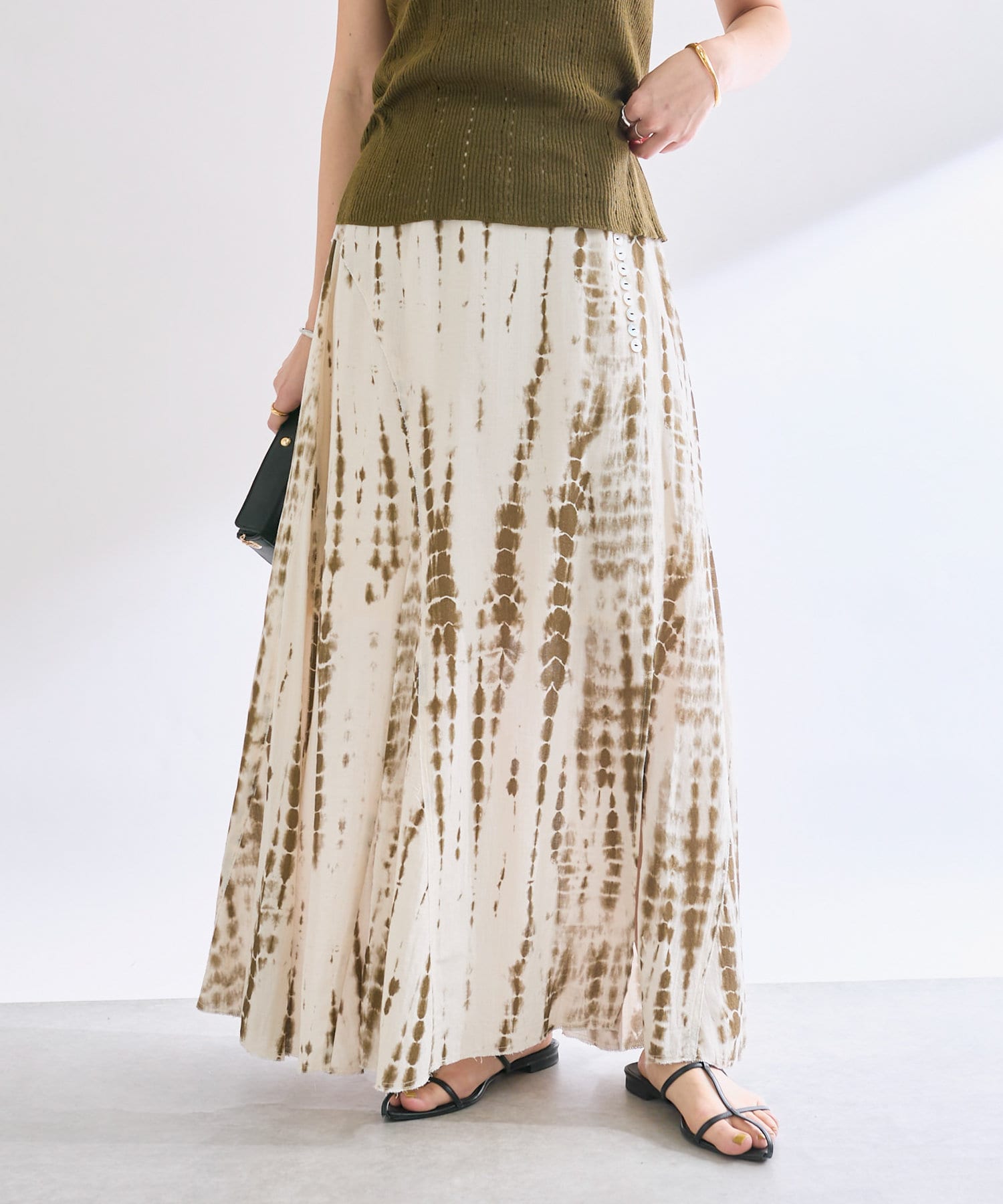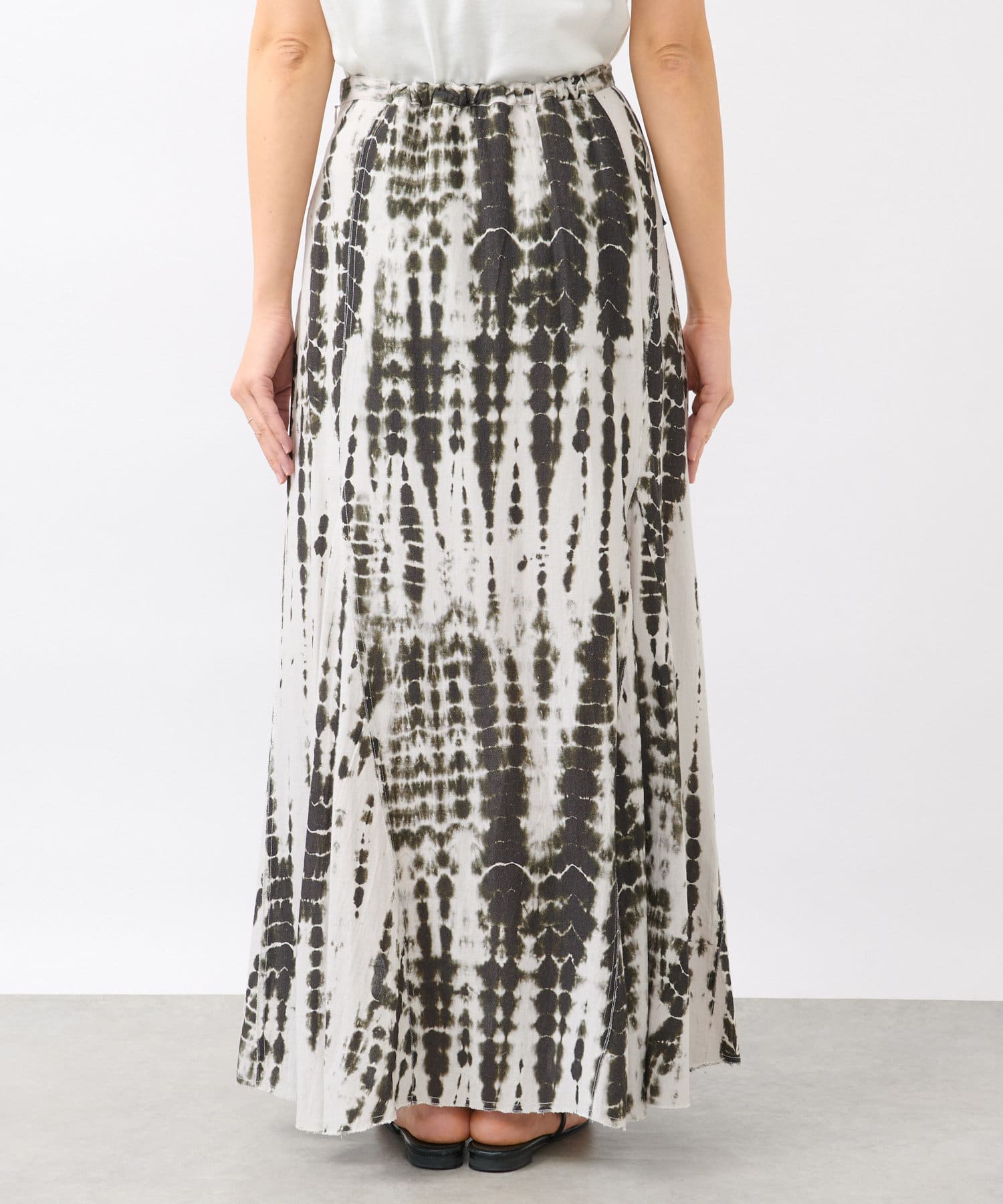 オリジナルのタイダイプリントを乗せたレーヨンリネン素材のスカート。