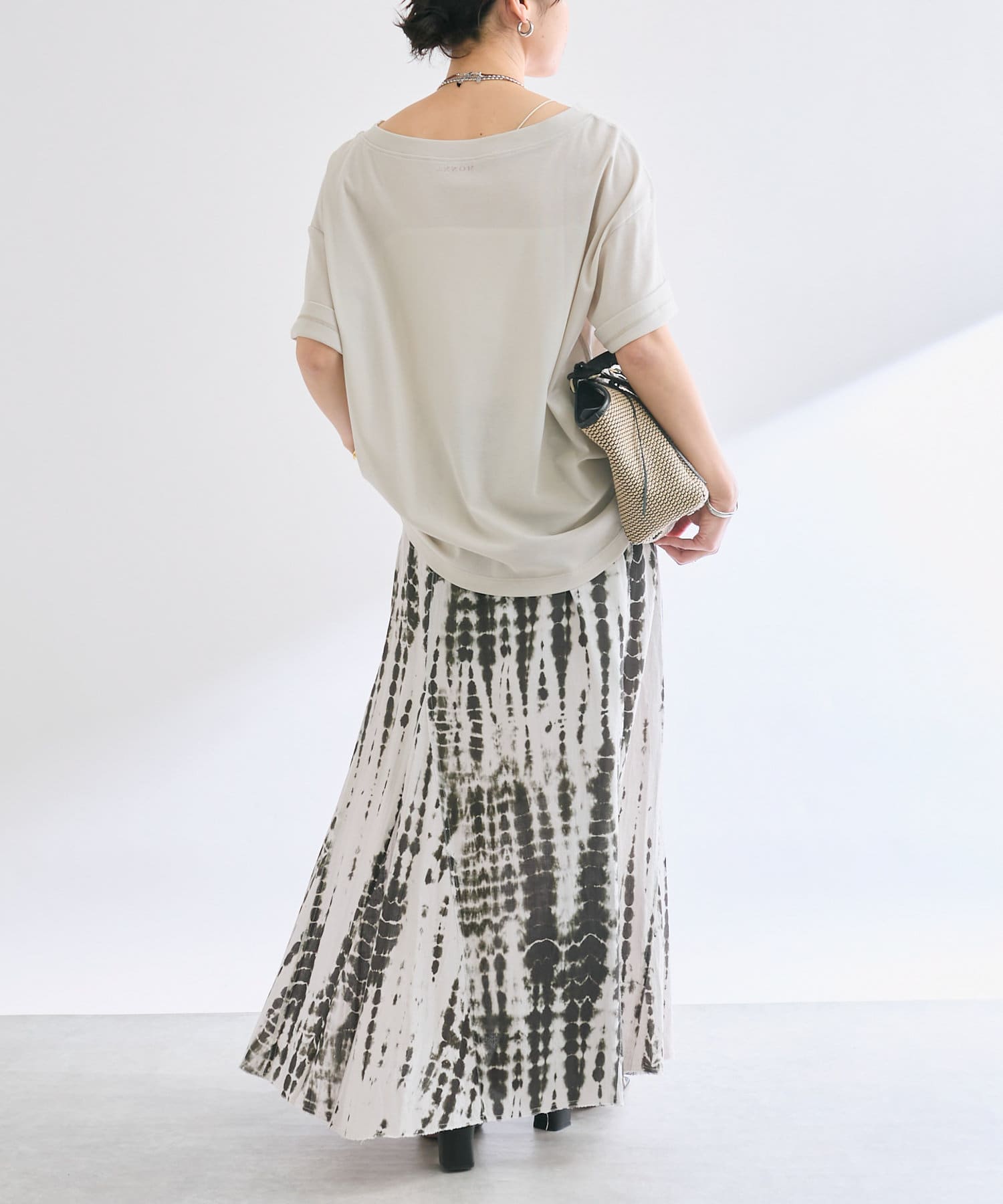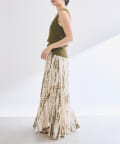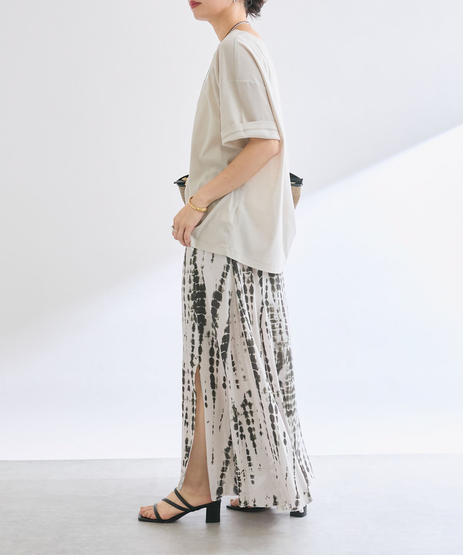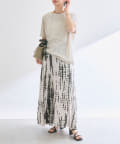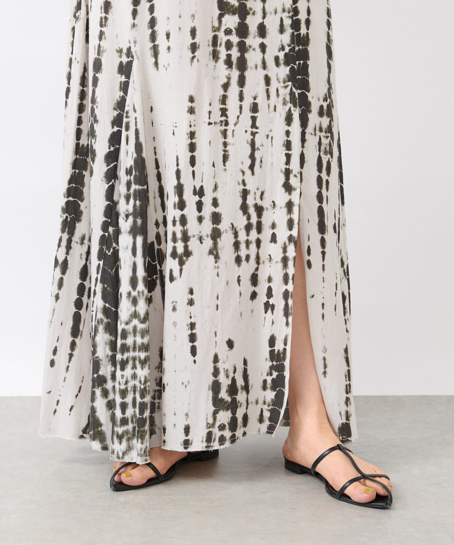 オリジナルのタイダイプリントを乗せたレーヨンリネン素材のスカート。