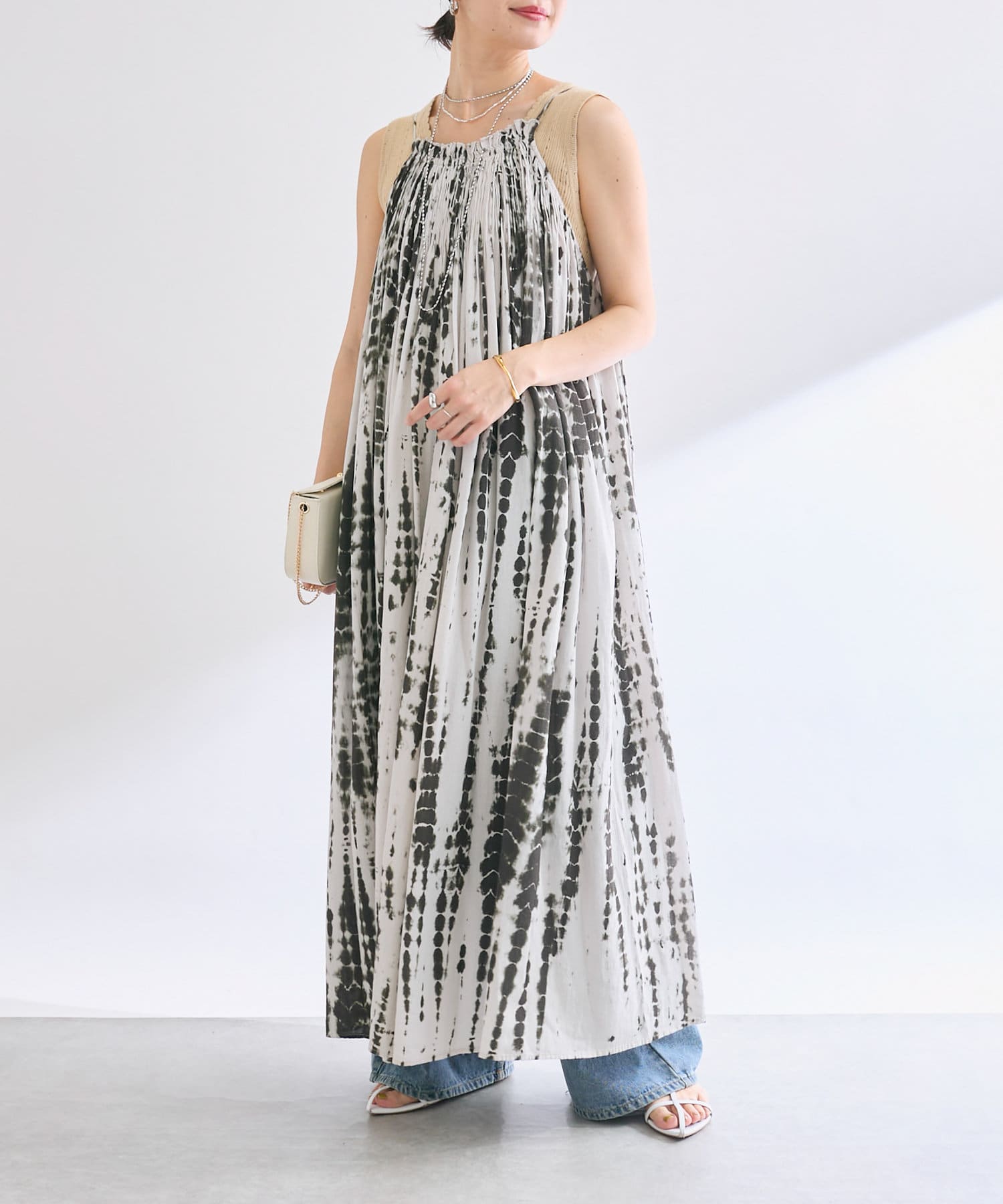 オリジナルのタイダイプリントが目を引くキャミドレス。