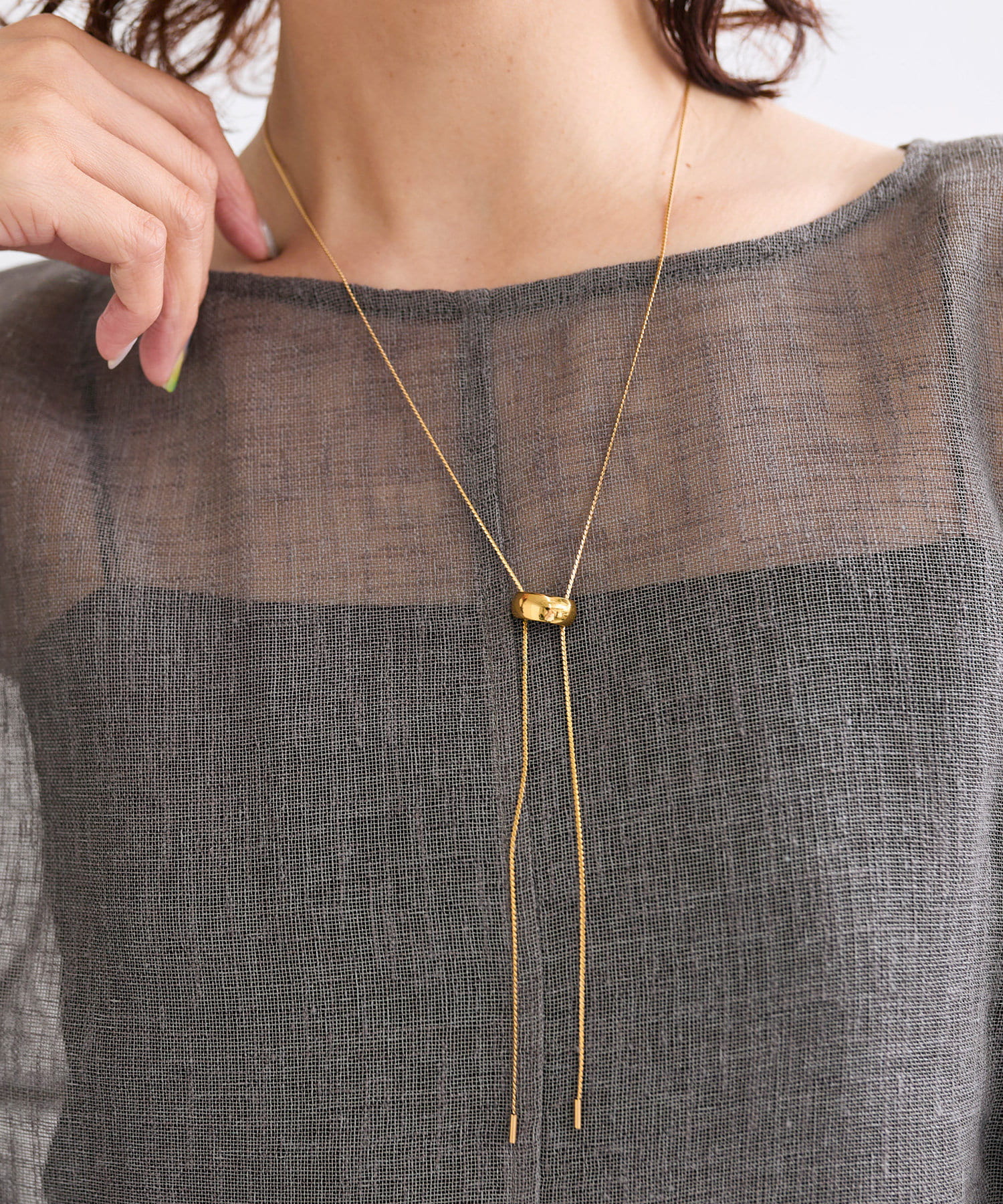スライド式のチャームをお好きな位置に調整できるネックレス。