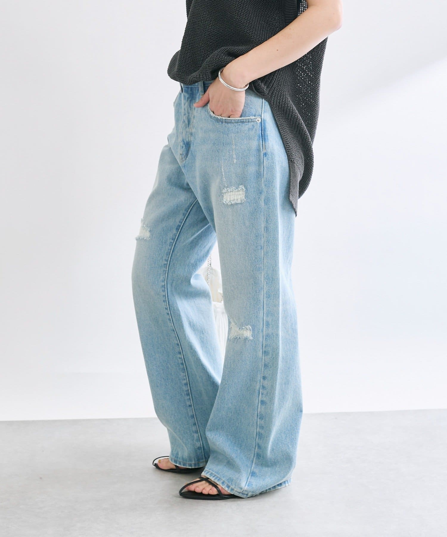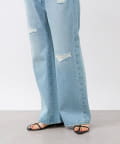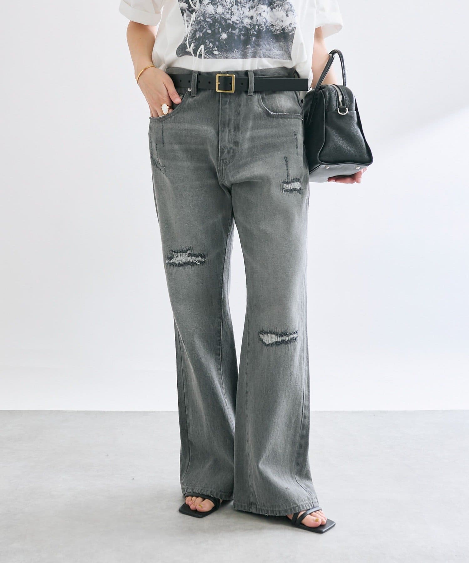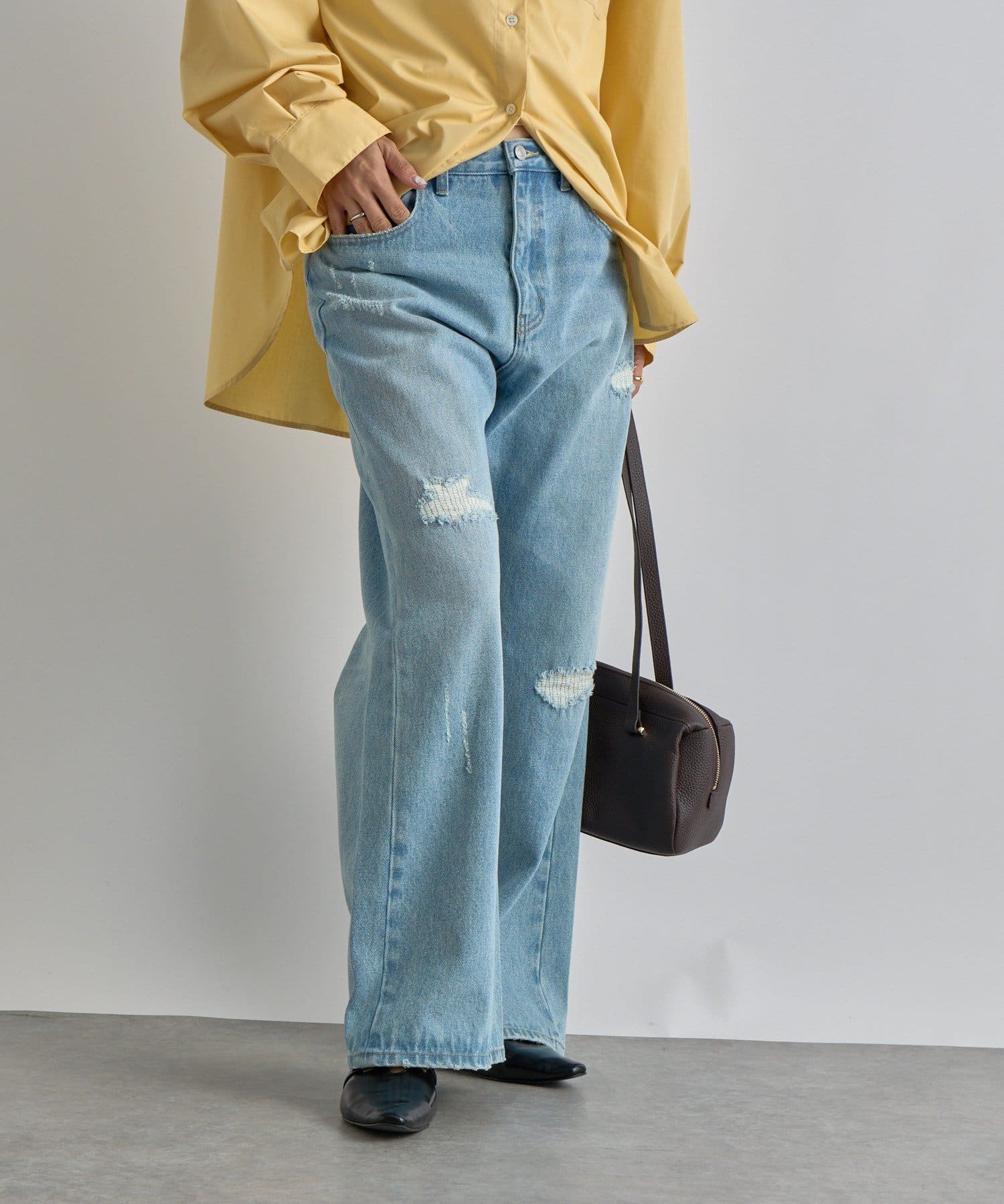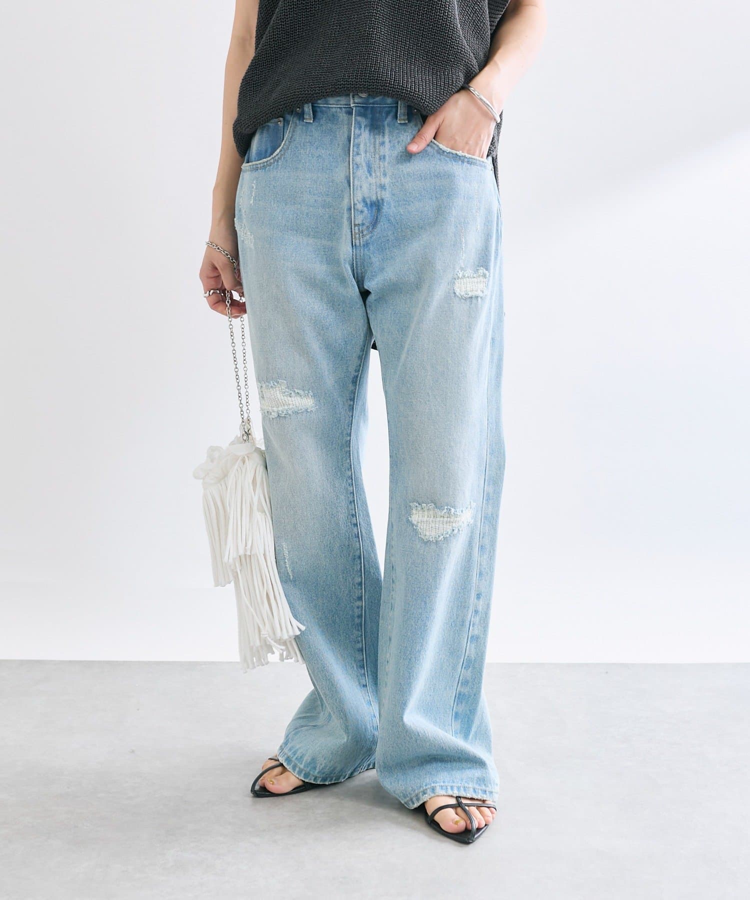 さりげないフレアシルエットとリペアデザインがアクセントに