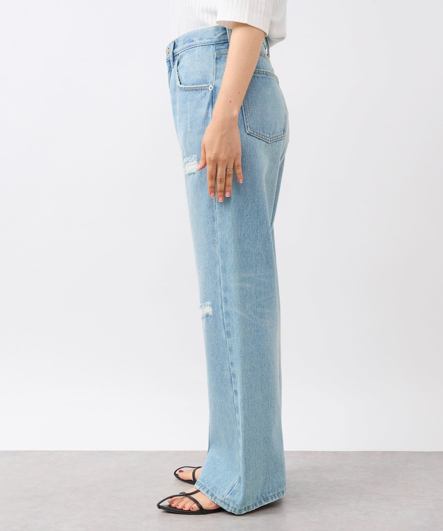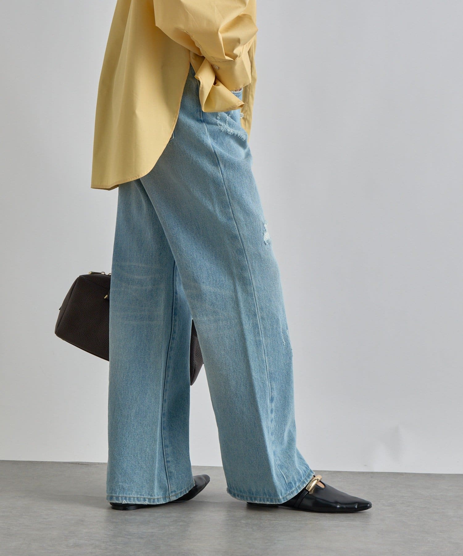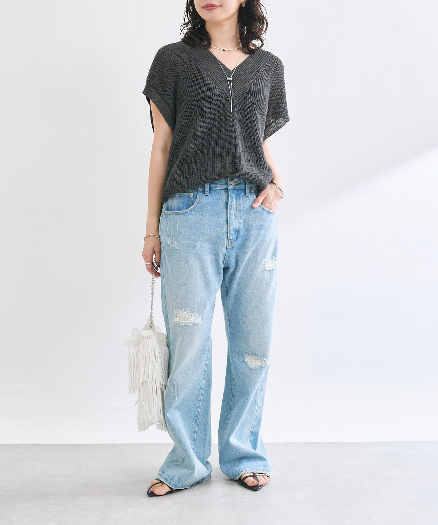 さりげないフレアシルエットとリペアデザインがアクセントに